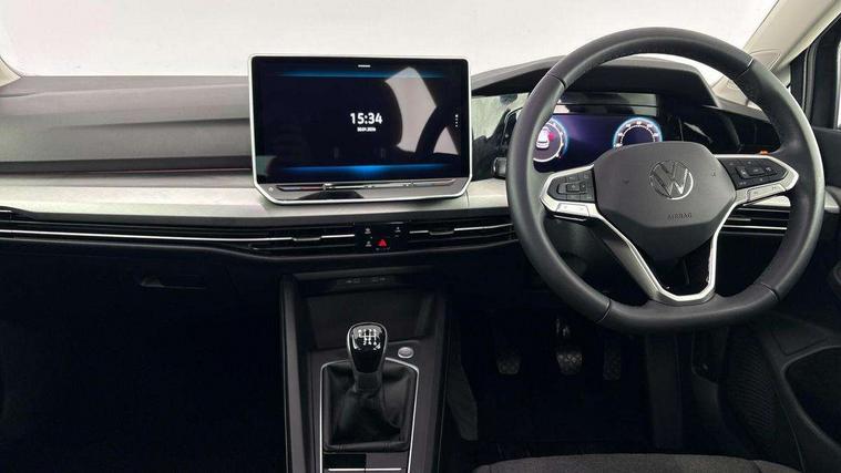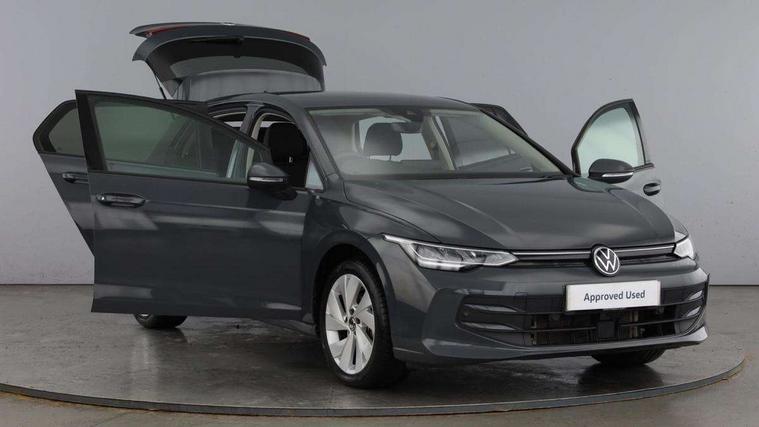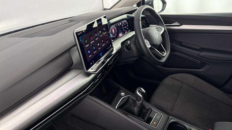 Activated carbon canister, Adaptive cruise control (ACC), Advanced driver attention and drowsiness monitor, Dynamic road sign display, E-Sim card for online connectivity, eCall emergency call system, Multi-color Digital cockpit pro, selection of different info profile possible, Multifunction front facing camera for distance control, Navigation system, Oncoming vehicle braking when turning including swerve support, Preparation for light assist system, Speed limiter, Speedo, rev counter, electronic odometer, trip, service interval display, exterior temperature and fuel gauge, Voice enhancer and voice control, Warning signal and warning light for front and rear seatbelts not fastened, We connect plus preparation, We connect preparation, Wireless app connect, Petrol Particulate Filter, Start-stop system with battery regeneration (recuperation - energy recovery during braking), XDS electronic differential lock for improved traction and handling, 2 USB C ports in front, 2 USB charging sockets on the centre console in the rear charging capacity upto 45W, Comfort telephony + wireless charging, without wireless aerial connection, Digital radio reception (DAB), Diversity antenna for FM reception, Gaming platform via car app, Infotainment system with 12.9" display, Mobile phone interface with inductive charging feature, 3rd brake light, Auto dimming rear view mirror, Auto headlights, Automatic headlamp activation with Coming home and Leaving home feature, Body colour door handles, Body colour door mirrors, Exterior ambient lighting with illuminated door handles, Exterior mirrors convex on the left and aspherical on the right, Front and rear electric windows, Heat insulating windshield made of laminated glass, LED daytime running lights, Rain sensor, Rear exhaust tailpipe, Rear fog light on one side and reversing lights on both sides, Rear side wing doors, Rear tinted glass 65% light absorbing from B pillar backwards, Rear windscreen washer and wiper with interval delay, Remote electrically foldable door mirrors, puddle lights and reverse activated passenger's door mirror, Standard bumpers, Welcome light with surround lighting, 12V socket in front centre console, 12V socket in luggage compartment, 3 rear head restraints, 3 seat bench in 2nd row, Chrome plated radiator grille inserts, air vent surrounds and light switch surrounds, Front centre armrest, Front head restraints, ISOFIX anchors for child seats on outer rear bench seats and on front passanger seat compatible for i-Size, Leather gearshift handle, Luggage compartment lighting, Rear cupholder and loadthough, Single front passenger seat, Soul black instrument panel, Split folding backrest with centre armrest and unsplit rear seat bench, Standard pedal cluster, Storm grey roof lining, Sun visors with illuminated vanity mirrors, Parking and comfort pack - Golf Estate/Hatchback, 3 point height adj front seatbelts + pretensioners, 3 rear three point seatbelts, ABS, Autonomous emergency braking front assist with pedestrian and cyclist monitoring, Child locks on rear doors, Driver and front passenger airbag with front passenger airbag deactivation, Electronic parking brake with auto hold, ESC (Electronic Stability Control), Extended pedestrian protection measures, Rear disc brakes, Two tone horn, Tyre pressure loss indicator, Volkswagen roadside assistance, Alarm with interior protection, Anti theft wheel bolts, Keyless start with SAFE lock, Preparation for alcohol interlock, Nature cross brushed decorative inserts for dashboard and front door panels,
