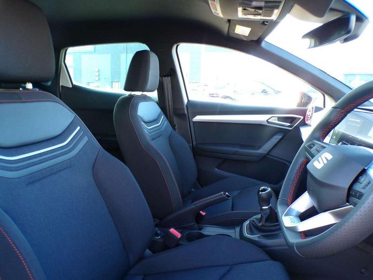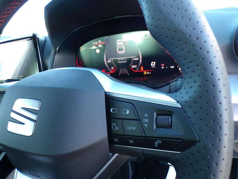 'Lights On' Reminder warning buzzer, 8" Digital cockpit, 9.2" touchscreen navigation system with type C USB socket, Voice control and DAB/AM/FM radio, Auto start and stop system, Bluetooth audio streaming with handsfree system, Digital clock, E-call, Full link smartphone integration with mirror link, wireless apple carplay, Google android auto + USB Type C cable for apple and android devices, Lane assist, Low fuel warning light, Outside temperature gauge, Power Steering, Rear parking sensor, Seat connect plus with safety, service, remote and online, SEAT drive profiles and ECO function, SEAT logo boot release, Speed limiter, Traffic sign recognition, Trip computer, Sports suspension, Auxiliary input socket, Radio/MP3 player, SD card slot, Steering wheel mounted controls, Anti theft roof antenna, Auto dimming rear view mirror, Automatic rain sensing wipers, Black door mirror caps, Body colour bumpers, Body colour door handles, Brilliant black window surrounds, Dark tinted rear windows, Electric adjustable/heated/folding door mirrors, Electric front windows, Electric headlight adjustment, Electric rear windows, Front/rear fog lights, FULL LED automatic headlights with dynamic headlight range control, coming and leaving home, LED daytime running lights, LED 3rd brake light, LED tail lights, Rear roof spoiler with FR twin exhausts, Rear side wing doors, Rear wiper, 3 seat bench in 2nd row, 60/40 split folding rear seat, Ambient interior lighting, Chrome detailing and black headlining, Cloth upholstery, Dual zone climate control with combination filter, Front courtesy lights, Front cupholders x 2, Front reading lights, Gear shift indicator, Glovebox, Height adjustable front and rear headrests (five), Height adjustable front seats, Height/reach adjust steering wheel, Illuminated air vent surrounds, Illuminated boot, Instrument lighting with brightness control, Isofix, Leather multifunction flat bottomed sports steering wheel, Passenger sunvisor, Single front passenger seat, Sports seats, Sunvisors with mirror and driver side card holder, Safety and driving pack (S) - Ibiza, 3 point seatbelts on all 3 rear seats, ABS, Active front headrests, Child locks on rear doors, Electronic stability control, Energy recovery system, Front driver and passenger side airbags with curtain airbag and front passenger airbag deactivation, Hill hold control, Multi-Collision braking, Seat belt reminder for front and rear seats, Tiredness recognition system, Tyre pressure monitoring system, Locking wheel bolts, Perimeter alarm and interior monitoring with backup horn and tow away protection, Remote central locking + deadlocks, 17" Alloy wheels in Brilliant silver,