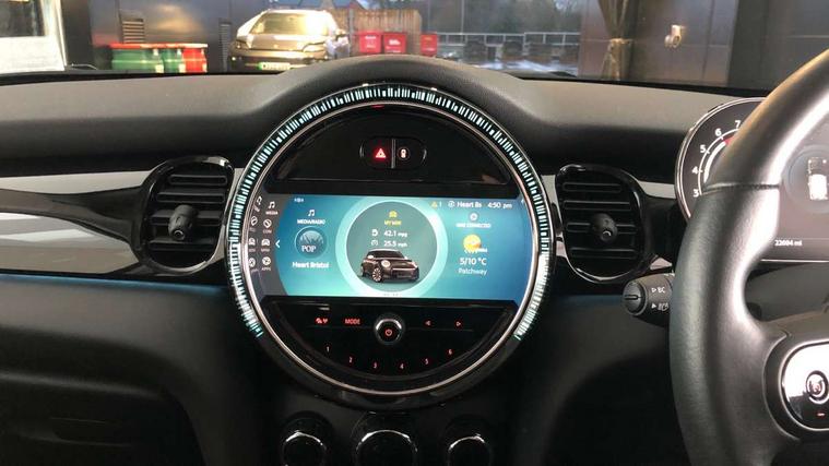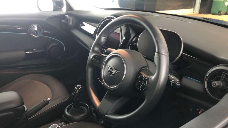 Apple CarPlay, Automatic start/stop function with brake energy recuperation, Compatible mobile phone bluetooth with audio streaming, Cruise control with brake assist, Electro-mechanical speed dependant steering assistance, Flexible car sharing preparation, Instrument cluster, Mini E-call, MINI TeleServices, On board computer, Service interval indicator, Double Vanos system, Fully variable valve control, High precision injection, Performance Control, Steptronic transmission with double clutch, 8.8" touchscreen with LED ring, FM tuner and DAB digital radio, 3rd brake light, Automatic headlight activation switch, Body colour fuel filler cap, Chrome border high gloss black slats radiator grille, Dynamic brake lights, Electric front windows, Exhaust tailpipe on left with chrome finisher, Heated rear window, Heated windscreen washer jets, LED headlight with closed ring and daytime driving lights, Metal door sill strips with MINI imprint, Model logo Cooper on right of tailgate, Rain sensor window wipers, Rear fog lights, Rear LED lights with union jack design, Rear window wiper, Side scuttle panel with integrated indicator, Sun/heat protection glass, White indicator lenses, 12V Accessory socket in centre console, 2 seat bench in 2nd row, 4 lashing eyes in luggage compartment, 60/40 split folding rear seat, Ambient lighting, Carbon black colour line - Knee roll and door armrest, Chrome interior highlights, Cupholders, Front and rear head restraints, Front and rear isofix with front passenger airbag deactivation, Front floor mats in velour, Glove compartment, Height and length steering column adjustment, Interior lighting with 12 different colours across the dashboard, underneath door bezel with illuminated laser-engraved design on central display, Leatherette gearshift lever and handbrake gaiters, LED reading lights, vanity mirror lights, front foot well light and spotlight on front seats, Manual air conditioning, Mechanical seat adjustment - forward/back & backrest for front seats and driver seat height adjust, Multifunction steering wheel, Passenger seat height adjuster, Satellite grey headlining including grab handles and clothes hooks, Single front passenger seat, Sport leather steering wheel with speed limiter and audio/communication controls, Storage compartments in doors, Sunvisors with vanity mirrors, 3 point seatbelts on all four seats, 6 Airbags - front, side, head and seat belt tensioners, Anti-lock braking system (ABS), DSC - Dynamic Stability Control, Front and rear disc brakes, Single tone fanfare horn, Tyre pressure monitoring system, Alarm system with tilt sensor, monitoring doors, bonnet interior and tailgate, Electronic vehicle immobiliser, Start/stop toggle with keyless go, Piano black interior trim, Tool kit, Tyre repair kit,
