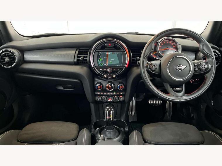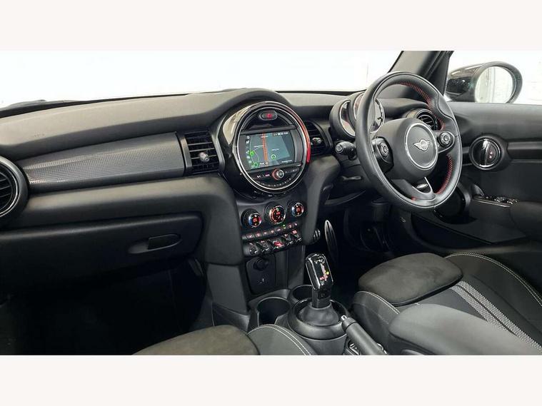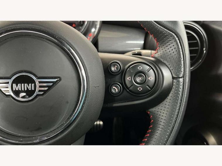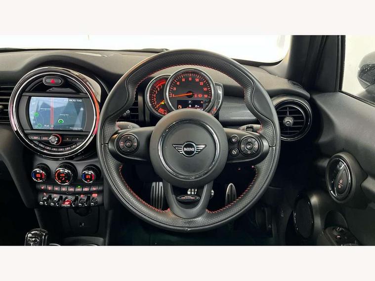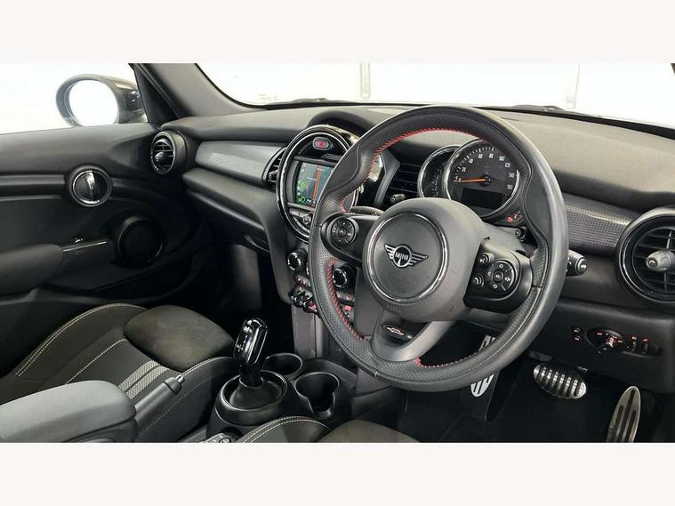 Automatic start/stop function with brake energy recuperation, Compatible mobile phone bluetooth with audio streaming, Electro-mechanical speed dependant steering assistance, Instrument cluster, MINI Driving Modes - centre toggle switch to control driving setting (sport, mid and green), Mini E-call, MINI TeleServices, On board computer, Service interval indicator, Double Vanos system, Fully variable valve control, Gear change indicator display, High precision injection, Performance Control, Steptronic transmission with double clutch, 6.5" touchscreen with LED ring, FM tuner and DAB digital radio, Automatic headlight activation switch, Body colour fuel filler cap, Chrome border high gloss black slats radiator grille, Dynamic brake lights, Electric front+rear windows, Heated rear window, Heated windscreen washer jets, John Cooper Works - aerodynamic kit (front and rear apron, spoiler), front and rear sport bumpers and part-painted side sills with door sill finishers, John Cooper Works rear spoiler, LED headlight with closed ring and daytime driving lights, Left exhaust tailpipe with chrome finisher, Metal door sill strips with MINI imprint, Model logo Cooper on right of tailgate, Rain sensor window wipers, Rear fog lights, Rear LED lights with union jack design, Rear window wiper, Side scuttle panel with integrated indicator, Sun/heat protection glass, White indicator lenses, 12V Accessory socket in centre console, 4 lashing eyes in luggage compartment, 60/40 split folding rear seat, Anthracite headlining with grab handles and clothes hooks, Chrome interior highlights, Cupholders, Front and rear head restraints, Front and rear isofix with front passenger airbag deactivation, Glove compartment, Height and length steering column adjustment, Interior lighting with 12 basic colours selectable via toggle switch in roof, John Cooper Works leather steering wheel with contrasting stitching in Chilli Red with John Cooper Works logo, John Cooper Works Logo in seat, Knee roll and door armrests, Leather gearshift lever and handbrake gaiters, LED reading lights, vanity mirror lights, front foot well light and spotlight on front seats, Manual air conditioning, Mechanical seat adjustment, driver seat height adjust, forward/back and front seats backrest, Mini logo projection on floor from drivers exterior mirror, Multifunction steering wheel, Storage compartments in doors, Sunvisors with vanity mirrors, 3 point seatbelts on all five seats, 6 Airbags - front, side, head and seat belt tensioners, Anti-lock braking system (ABS), DSC - Dynamic Stability Control, Front and rear disc brakes, Hill start assist, Single tone fanfare horn, Tyre pressure monitoring system, Alarm system with tilt sensor, monitoring doors, bonnet interior and tailgate, Electronic vehicle immobiliser, Start/stop toggle with keyless go, Tool kit,