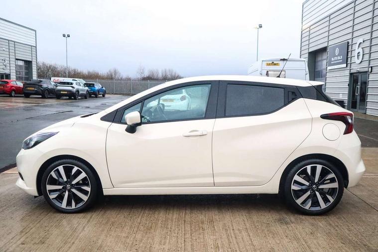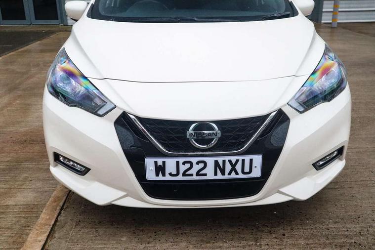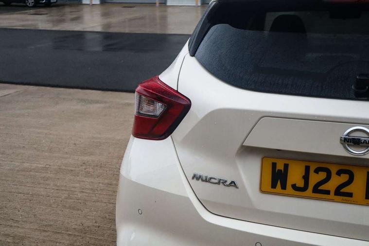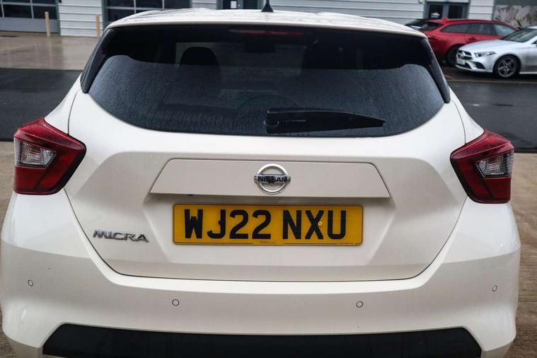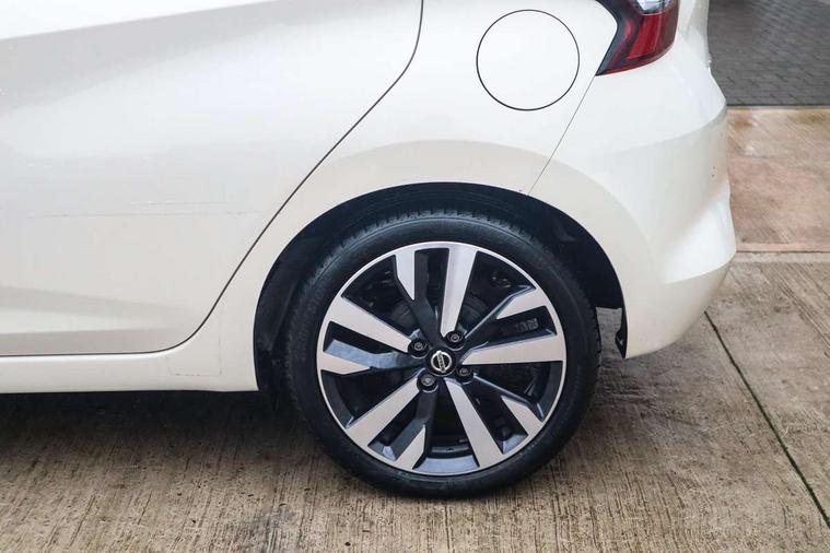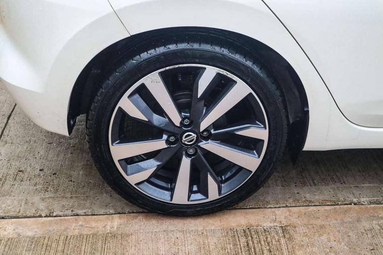 360 degree around view monitor, Adjustable speed limiter, Advanced drive assist display 5'' TFT coloured screen, Bluetooth system, Cruise control, eCall emergency call system, Engine start button, Lane departure prevention, Lane departure warning system, Nissan Connect touchscreen navigation and Entertainment system, Outside temperature gauge, Power assist steering, Rear parking sensors, Rear view camera, Smartphone integration with Apple CarPlay and Android auto, Stop/start system, TomTom services, Traffic sign recognition, Trip computer, Audio system with MP3, DAB Digital radio, Steering wheel mounted audio controls, USB/iPod connection, Antenna, Auto dimming rear view mirror, Automatic activation of hazard warning lights, Automatic headlights, Body colour front door handles, Body coloured bumpers, Body coloured door mirrors, Concealed rear door handles, Electric folding door mirrors, Front and rear electric windows, Front fog lights, Heated door mirrors, High beam assist, High mounted stop lamp, Jacknife key type x1, LED Headlights, LED signature daytime running lights, LED turn indicators on door mirrors, Rain sensor windscreen wipers, Rear privacy glass, Rear roof spoiler, Rear side wing doors, Rear wiper with reverse link, Variable front intermittent wipers, 12V power point front, 2 height adjustable rear headrests, 2 x front and 1 x rear cup holders, 3 seat bench in 2nd row, 60/40 split folding rear seat, Automatic air conditioning, Boot compartment cover, Boot light, Chrome interior door handles, Driver's seat manual height adjust, Driver/passenger sunvisors and vanity mirrors, Front and rear door pockets with bottle holders, Front console storage box, Gear shift indicator, Height adjustable front headrests with satin sliver decoration, Illuminated electric window switch, Isofix front passenger and rear seat preparation, Leather wrapped gear shift knob, Leather wrapped parking break, Leather wrapped steering wheel, LED ambient lighting in front console storage, Map reading lamp, Parcel shelf, Passenger seat back pocket, Reclining front seats, Single front passenger seat, Synthetic leather front door pads, Synthetic leather instrumental panel inserts, Tilt/telescopic adjustable steering wheel, BOSE Personal audio pack - Micra, ABS+EBD+Brake assist, Crash sensor, Driver/Front Passenger airbags, Front and rear curtain airbags, Front side airbags, Height adjustable front seatbelts with pre-tensioners and load limiters, Hill start assist, Intelligent emergency braking with pedestrian recognition, Passenger airbag deactivation system, Rear door child safety locks, Rear seatbelts with pre-tensioners and load limiters, Seatbelt warning, Three 3 point rear seatbelts, Tyre pressure monitoring system, Warning triangle and first aid kit, Anti-theft immobiliser, Intelligent key with push button ignition, Remote central locking, 17" Diamond cut alloy wheels, Tyre repair kit,