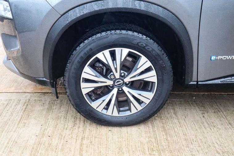 Android auto/Apple CarPlay (Wired), Blind spot warning, Drive modes (sport, normal, eco), e-Pedal step, Electric speed sensitive power steering, Emergency and breakdown call, Front and rear parking sensors, Full Digital 12.3" TFT Digital Combimeter, Google maps services - search, weather, 3D maps and Google street view, Idle stop/start system, Intelligent around view monitor, Intelligent Cruise control (ICC), Intelligent driver alert system, Intelligent forward collision warning, Intelligent lane departure warning, Intelligent lane intervention, Intelligent lane keep assist, Maximum speed limiter, Moving object detection, Nissan connect 12.3 inch touchscreen infotainment system, Nissan connect nav with TomTom traffic, Push button starter, Rear cross traffic alert, Rear view camera, Remote control services - door locks, lights, horn and car locator, Telematics - notifications and connectivity services, TomTom live traffic services, Traffic sign recognition with legal speed adjustment, Trip computer, Virtual personal assistant and firmware over the air capability, Wireless apple carplay, 6 speakers, AM/FM audio system with DAB, Bluetooth audio streaming, Front USB connections (Type-A and Type-C), Rear USB charging only ports (Type-A and Type-C), 3rd brake light, Auto dimming rear view mirror, Auto rear wiper when reversing, Body colour mirror caps, Body coloured door handles, Bodyside mouldings, Chrome side window finisher, e-POWER badging, Electric auto folding door mirrors, Electrically adjustable and heated door mirrors, Follow me home headlights, Headlights auto levelling system, High beam assist, Intelligent auto headlights, LED daytime running lights, LED Headlights, LED rear lights, One touch front and rear electric windows with remote opening and closing, Partially body coloured bumpers, Rain sensing wipers, Rear privacy glass, Rear reversing light (bulb lighting), Rear roof spoiler, Rear side wing doors, Rear styling plate, Shark fin antenna, Splash free wipers, Super UV and infrared cut glass, Three blink turn signal, 12v power socket in dashboard and luggage, 3 bench rear seats in 2nd row, 3 rear headrests, 60/40 split folding rear seat bench, Butteryfly console, Chrome interior door handles, Cloth monoform upholstery, Driver and front passenger sunvisors with illuminated vanity mirrors, Driver seat back pocket, Dual zone automatic climate control with pollen filter, Front centre console and armrest, Front cupholders, Front door with bottle holders, Height adjustable driver's seat, Height adjustable front headrests, Height adjustable passenger seat, Leather shift knob, Leather steering wheel, Luggage board system, Luggage space lighting, Multifunction steering wheel, Passenger seat back pocket, Rear armrest with 2 cupholders, Rear door bottle holders, Single front passenger seat, Tilt/telescopic adjustable steering wheel, Two rear isofix child seat anchorage points with top tether, 3x3 point rear seatbelt pretensioners + load limiters, ABS with EBD and brake assist, Active brake limited slip, Auto hold function, Child locks on rear doors, Curtain and front side, far side airbags, Driver and passenger airbags, Driver, passenger and 2nd row rear seat belt reminder, Electronic parking brake, Front seatbelt pretensioners + load limiters, Height adjustable front seatbelts, Hill start assist, Intelligent blind spot intervention, Intelligent front emergency braking with pedestrian, cyclist recognition and junction assist, Intelligent rear automatic braking, Tyre pressure monitoring system, Vehicle dynamic control, Engine immobiliser, Intelligent Key, Remote central door locking with deadlocking, Thatcham Cat.1 alarm, 18" Diamond cut alloy wheels, Tyre puncture repair kit,