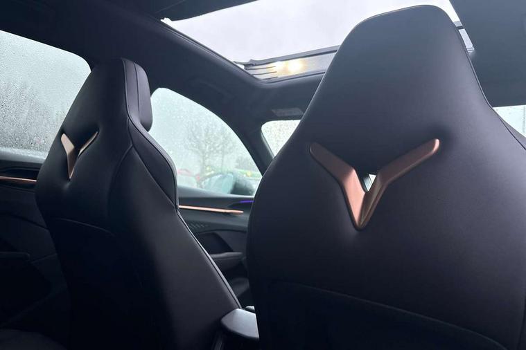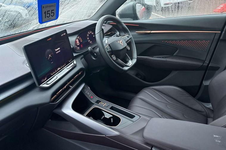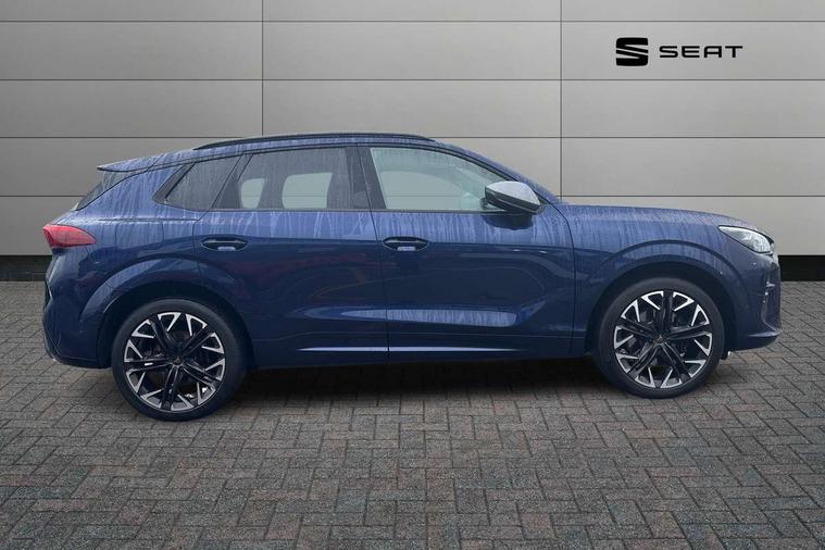 10.25" digital cockpit and configurable dashboard, Adaptive cruise control with follow-to-stop and speed limiter, Advanced driver alert system, Advanced lane assist with semi-automatic vehicle control in a medical emergency and traffic jam assist, Driving profile selection (DCC- Comfort, performance, CUPRA, Individual, Dynamic road sign display, E-call, Electric tailgate with virtual pedal, Emergency steering support with turn assist, Front and rear parking sensors, Front assist (Forward collision warning with automatic braking) with multifunction camera and front cross traffic assist, Head up Display, Intelligent park assist, Media system with Nav - 12.9" touch display, voice control, full link phone (wired/wireless), DAB and Steering wheel mounted controls, Rear traffic assist, Side and exit assist, Speed sensitive power steering, Start/stop system with regenerative braking, Top view camera (front camera, rear camera, 2 side cameras), Wireless phone charger, Adaptive chassis control with a 2-valve shock absorber, Auto dimming rear view mirror, Black roof rails, CUPRA 3D rear lights with ceremony & swiping indicator and illuminated logo, Dark tinted rear windows, Daytime running lights with automatic headlight control and Coming and Leaving home function, Door mirrors with memory function and lowing function on passenger mirror, Electric front/rear windows, Electrically adjustable, heated and folding door mirrors, Front fog lamps with cornering function, Heat reflecting windscreen, High beam assist, Rain sensing wipers, Rear fog light on one side, back up light on both sides, Rear side wing doors, Rear wash/wipe, Third brake light, Welcome lights (within exterior mirror housing), 3 seat bench in 2nd row, Black roof lining, Cupra sports pedals, Driver seat memory function, Electrically adjustable front seats including lumbar support, Four x USB Type C ports (2 in front and 2 in rear), Front and rear head restraints, Front and rear reading lights X 4, Front centre armrest, Heated front seats, Heated leather wrapped multi function sports steering wheel with tiptronic, Illuminated interior front door sills, Isofix, Leather upholstery, Operating voltage 12V, Single front passenger seat, Smart wraparound interior lighting, Sunvisors with illuminated mirror, Three zone climate control with control panel in rear, Unsplit rear seat bench, split folding backrest, with centre armrest, Variable luggage/load compartment floor, Pure performance pack - Terramar, 3 point seatbelts in front with pretensioner and electric height adjustment, 3 point seatbelts on all rear seats, Brake control system - ESC and brake booster, Child proof door locks, Driver and front passenger airbags, Electronic parking brake, Front and rear disc brakes, Front interaction airbag, Front passenger airbag deactivation switch, Front side airbags with curtain airbags, Pre-crash front and rear seat belt tensioner, window closure and hazard lights, Tyre pressure monitoring system, Visual and acoustic seat belt reminder, electric contact in front and rear, Anti theft alarm, Keyless locking and starting system with keyless access, Locking wheel bolts, Black decorative trims, Chrome interior detailing, 20" Hadron exclusive machine alloy wheels, Performance tyres in polmer coating, Tool kit,
