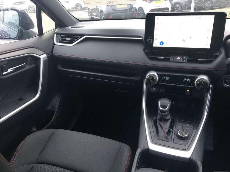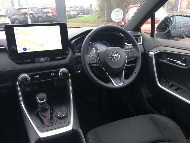 12.3" Digital Combimeter, Analog tachometer, Android Auto, Bluetooth system, Cyclist Detection, Digital speedometer, Drive mode selector, Driver attention alert system, eCall emergency call system, ECO-driving indicator, Electric power steering, EV audible alert, Front parking sensors, Full range intelligent adaptive cruise control, Hybrid system indicator, Lane departure alert with steering control, Lane trace assist, Lights on warning, Memory on adjustable speed limiter, MirrorLink, My T Connected services, Night Time Pedestrian Detection, Power boot opening and closing, Rear parking camera, Rear parking sensors, Remote boot door release in cabin, Remote boot door release in key, Road sign assist - RSA, Smart entry and push button start, Smartphone hazard lights notification, Tailgate, Toyota smart connect navigation, Traffic sign recognition, Trip computer, Voice control system, 6.6 kw fast charger, 7.5m cable with home charging plug, Vehicle Stability Control (VSC), 10.5" Toyota smart connect multimedia with wireless smartphone integration incl apple car play, 6 speakers, Auxiliary socket for external MP3 player, Digital audio broadcast (DAB)+, Gloss black surround on multimedia display, Multimedia Road Events, Rear USB connection, Toyota touch media system, USB in front armrest, Adaptive automatic high beam, Anti-jam protection on power windows, Auto dimming interior rear view mirror, Auto up and down function on power windows, Automatic headlights, Automatic wipers, Automatically retractable door mirrors, Black door moulding, Black front bumper, Black painted upper front grille, Black rear bumper, Black rear under-run, Black roof rails, Body colour door handles, Body colour rear roof spoiler, Body coloured door mirrors, Body coloured Shark-fin antenna, Chrome window surround, Dual exhaust pipes, Electric adjustable door mirrors, Electric heated door mirrors, Emergency brake-light signal (EBS), Follow me home headlights, Front wipers with variable intermittent facility, Honeycomb upper front grille, LED daytime running lights, LED dual beam projector headlights, LED front fog lights, LED front light guide, LED High mounted stop lamp, LED Indicators, LED rear brake lights, LED rear combination lights, PHEV badge in rear, Power front windows, Power rear windows, Privacy glass, Rear side wing doors, Rear windscreen defogger, Rear wiper, Silver front under-run, Smartphone remote power window operation, Trailer sway control, Turning signal integrated indicators in door mirrors, 1.5L front and rear bottle holder, 12 volt front socket, 12V power outlet - Boot, 220v power socket in boot, 2x Rear coat hooks, 3 rear headrests, 3 seat bench in 2nd row, 60/40 split fold rear seat back, Adjustable speed limiter switch on steering wheel, Array microphone, Black roof lining, Clean air filter, Cloth upholstery, Driver and front passenger personal light, Driver and front passenger Whiplash Injury Lessening seats, Driver and passenger seatback pockets, Driver and passenger sunvisors with illuminated vanity mirrors, Dual sided deck board in boot, Dynamic sports seats, Energy saving heat pump, Folding rear centre armrest, Front and rear cup holders, Front centre armrest, Front headrests, Front leather armrest, Front/rear roof mounted assist grips, Gloss black surround on centre console, Heated driver and front passenger seats, Heated rear seats, Illuminated entry system, Isofix child seat preparation, Leather gear shift with chrome surround, LED boot light, LED centre room light, Lockable glovebox, Manual telescopic and tilt 3-spoke nappa leather steering wheel, Manually reclining and sliding front passenger seat, Multimedia switches on steering wheel, Pollen filter, Power height-adjustable sliding reclining and lumbar support for driver seat, Rear console box, Rear door armrests, Rear passenger air vents, Rear view display in display audio screen with dynamic guide lines, Reclining rear seats, Remote dual zone automatic air conditioning, Retractable tonneau cover, Satin chrome interior door handles, Single front passenger seat, Sunglasses holder, Telephone and voice recognition switches on steering wheel, White ambient lighting in footwell, White ambient lighting on front cup holders, White ambient lighting on open tray, 3x3 point rear seatbelts, ABS/EBD, Acoustic vehicle alerting system, Adjustable front driver and passenger seat belt extender, Brake assist function, Brake hold function, Child proof door locks, Collision mitigation braking system, Driver/Front Passenger airbags, Driver/front passenger side airbags, Drivers knee airbag, Electronic parking brake, Electronic Stability Programme (ESP), Front and rear curtain airbags, Front and rear seatbelt reminder, Front passenger airbag detector, Hill start assist, Passenger airbag cut-off device, Pedestrian detection, Pre collision system, Seatbelt pretensioners with load limiters, Supplemental restraint system (SRS) airbags, Toyota safety sense 2, Traction control, Tyre pressure warning, Glass-breaking alarm sensors, Immobiliser, Intrusion alarm, Light - on and Key in reminder, Motion sensor alarm, Power door locks, Remote central locking, Smartphone remote door lock, Speed sensitive auto door locking, Tilt detection sensors, Black centre air vent surround, Gloss black centre console, Open tray on passenger dashboard, Soft-touch black upper dashboard with silver insert, Soft-touch texture on lower dashboard, 18" 5 spoke grey machined face alloy wheels, Full size spare wheel,