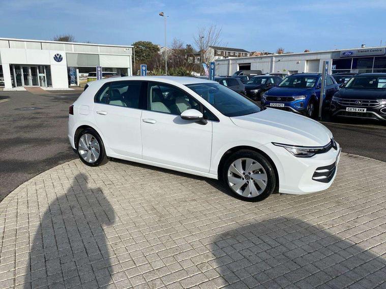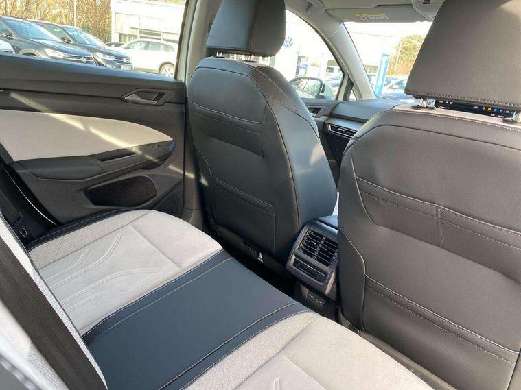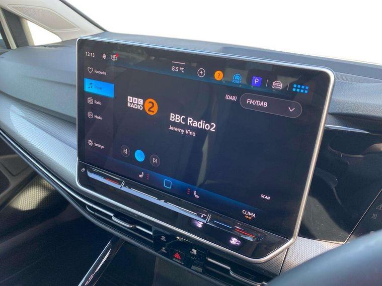Activated carbon canister, Adaptive cruise control (ACC), Advanced driver attention and drowsiness monitor, Dynamic road sign display, E-Sim card for online connectivity, eCall emergency call system, Multi-color Digital cockpit pro, selection of different info profile possible, Multifunction front facing camera for distance control, Navigation system, Oncoming vehicle braking when turning including swerve support, Side assist blind spot lane change system, rear traffic alert and exit warning system, Speed limiter, Speedo, rev counter, electronic odometer, trip, service interval display, exterior temperature and fuel gauge, Traffic jam assist, Voice enhancer and voice control, Warning signal and warning light for front and rear seatbelts not fastened, We connect plus preparation, We connect preparation, Wireless app connect, Hybrid propulsion system, Petrol Particulate Filter, Start-stop system with battery regeneration (recuperation - energy recovery during braking), XDS electronic differential lock for improved traction and handling, 2 USB C ports in front, 2 USB charging sockets on the centre console in the rear charging capacity upto 45W, Digital radio reception (DAB), Diversity antenna for FM reception, Gaming platform via car app, Infotainment system with 12.9" display, Mobile phone interface with inductive charging feature, 3rd brake light, Automatic headlamp activation with Coming home and Leaving home feature, Body colour bumpers, Body colour door handles, Body colour door mirrors, Chrome trimmed front air intake surrounds, Chrome trims on the side window bottom, Exterior mirrors convex on the left and aspherical on the right, Front and rear electric windows, Heat insulating windshield made of laminated glass, LED separate daytime running light, Rear exhaust tailpipe, Rear fog light on one side and reversing lights on both sides, Rear side wing doors, Rear windscreen washer and wiper with interval delay, Remote electrically foldable door mirrors, puddle lights and reverse activated passenger's door mirror, Welcome light with surround lighting, 12V socket in front centre console, 12V socket in luggage compartment, 3 rear head restraints, 3 seat bench in 2nd row, Air care climatronic 3 Zone automatic climate control with rear air conditioning control panel, Ambient lighting with 30 colour including LED light unit in front footwell with selectable light colour, Art velours cloth upholstery, Chrome plated radiator grille inserts, air vent surrounds and light switch surrounds, Door insert, side trim panel and arm support in leatherette, Front + rear black carpet mats, Front centre armrest, Front head restraints, Front seat lumbar support adjuster, ISOFIX anchors for child seats on outer rear bench seats and on front passanger seat compatible for i-Size, Luggage compartment lighting, Manual height adjustable front passenger seat, Manually height adjustable driver seat, Plastic gear knob, Rear cupholder and loadthough, Single front passenger seat, Soul black instrument panel, Split folding backrest with centre armrest and unsplit rear seat bench, Sports comfort seats in front, Standard pedal cluster, Storm grey roof lining, Sun visors with illuminated vanity mirrors, Driver assistance pack - Golf Estate/Hatchback Auto, 3 point height adj front seatbelts + pretensioners, 3 rear three point seatbelts, ABS, Autonomous emergency braking front assist with pedestrian and cyclist monitoring, Child locks on rear doors, Driver and front passenger airbag with front passenger airbag deactivation, Electronic parking brake with auto hold, ESC (Electronic Stability Control), Extended pedestrian protection measures, Hill start assist, Rear disc brakes, Two tone horn, Tyre pressure loss indicator, Volkswagen roadside assistance, Anti theft wheel bolts, Preparation for alcohol interlock, New brushed dark metal decorative inserts for dashboard and front door panels,