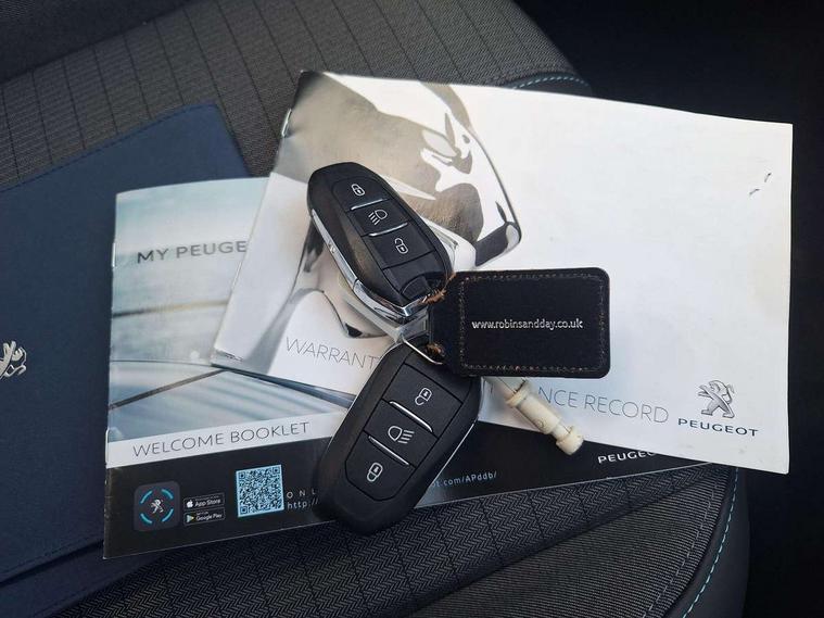 Bluetooth telephone facility, Driver attention warning, Exterior temperature indicator with ice warning, Lane keep assist, Mirror screen with mirror link, apple carplay and android auto, Multi function trip computer, PEUGEOT i-Cockpit with 3.5" instrument panel display, PEUGEOT i-Cockpit with compact steering wheel, PEUGEOT SOS and assistance, Programmable cruise control and speed limiter, Smart phone docking station, Speed limit recognition and recommendation, Visio Park 1 with 180 degree Colour reversing camera, 2 front USB socket with USB-C, 2 USB sockets in rear, 6 speakers radio with mp3 compatible, DAB Radio (Digital Audio Broadcasting), Voice recognition for radio, navigation and telephony features, 2 X Rear number plate lights, Automatic front windscreen wipers, Automatic hazard light activation upon heavy brake application, Black front wing trim with gloss black detail, Body coloured exterior door handles, Colour coded door mirror shells, Colour coded rear spoiler, Colour coded roof, Dark tinted rear side and tailgate windows, Eco LED headlights, Electric, heated, and power folding door mirrors, Electrochrome rear view mirror, Front bumper - Silver lower trim, Gloss black finish on B pillar, Gloss black longitudinal roof rails, Gloss black rear cluster connecting strip, Gloss black roof bars, Headlights left on audible warning, LED daytime running lights with distinctive tooth design, Model designation badges front and rear, One touch electric front/rear windows with pinch protection, Radiator grille - gloss black top edge trim, Radiator grille chrome chequered, Rear full LED 3D peugeot signature claw effect lights with daylight function, Rear reversing lights, Rear windscreen wiper triggered automatically in reverse gear, Tailgate with heated rear windscreen and wiper blade, Wheel arch extensions, 1/3 to 2/3 split folding rear seats, 12V socket, Automatic air conditioning with pollen and active carbon filter, Central front armrest with storage compartment, Driver and front passenger comfort seats, Driver seat manual adjustment - height, longitudinal and back rest angle, Electric power steering with reach and rake adjustable steering column, Front LED interior light with 2 reading spotlights and rear interior light with timer, Front passenger seat manual adjustment - height, longitudinal and back rest angle, High centre console, Leather steering wheel, Mint green contrast stitching to front centre console, door panels and dashboard facia, Modular boot floor, Piano keys: Gloss black and chrome toggle switches to access main functions of the vehicle, Roof lining - light grey, Seatbelt unfastened on the move audible and visual alert for front and rear seats, Tri material cloth/leather upholstery, Visibility pack - 2008, 2x 2nd row ISOFIX child seat mountings, ABS (Anti-lock Braking System) with EBD (Electronic Brakeforce Distribution) and EBA (Emergency Braking Assistance), Acoustic vehicle alerting system, Active safety brake with night function/cyclists/pedestrians, Adaptive driver and front passenger airbags with passenger airbag deactivation function, Child locking functionality on rear doors, Driver/front passenger side airbags, Electric parking brake, ESP (Electronic Stability Program) + Hill Start Assist, Front and rear curtain airbags, Front and rear disc brakes, Front and rear three-point retractable seatbelts, with force limiters, Front optimised safety headrests and rear retractable headrests (x3), height adjustable, Tyre pressure sensor, Alarm system with anti-lift sensor, Automatic door locking when moving off, Deadlocks, Electronic code immobiliser, Carbon effect Dashboard, front and rear door panel finish, 17" Salamanca diamond cut alloy wheels,
