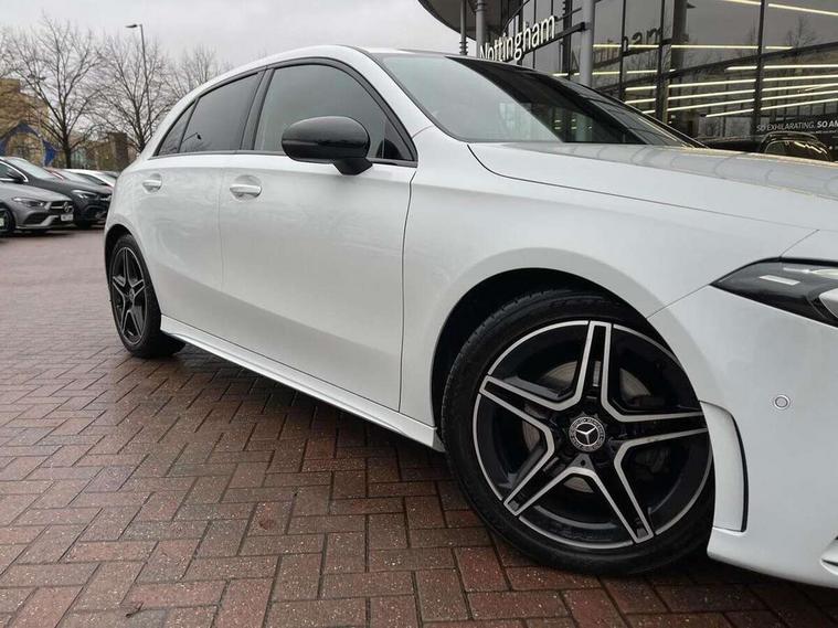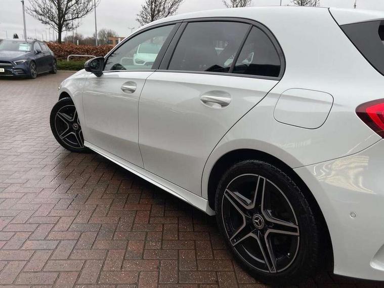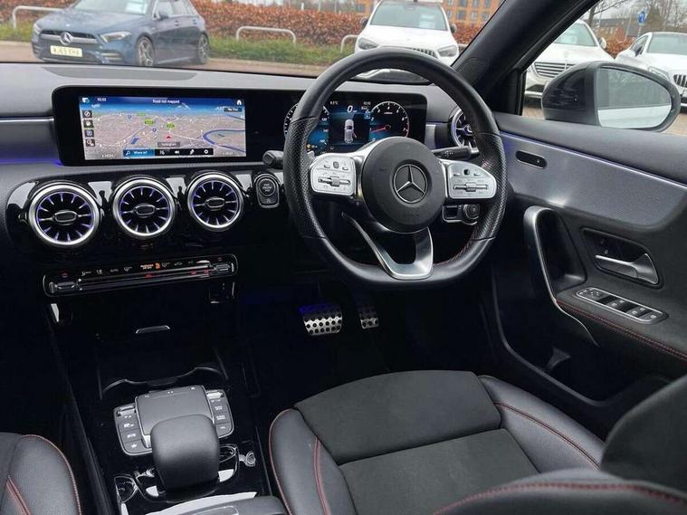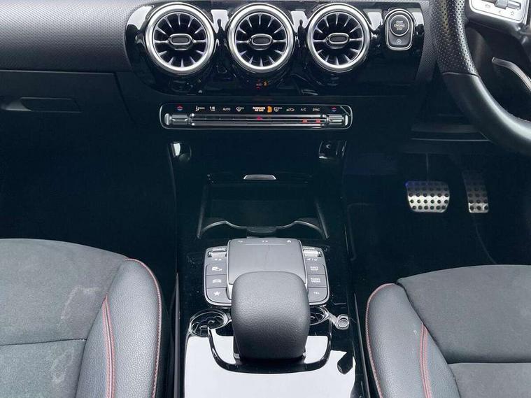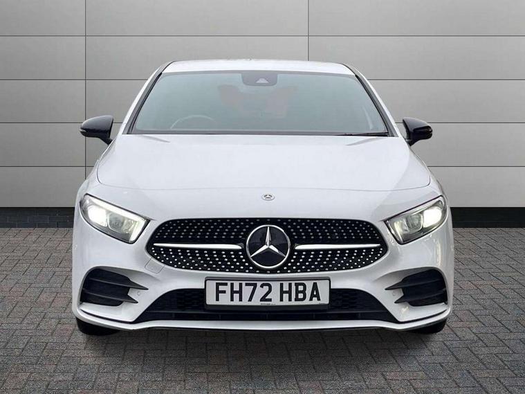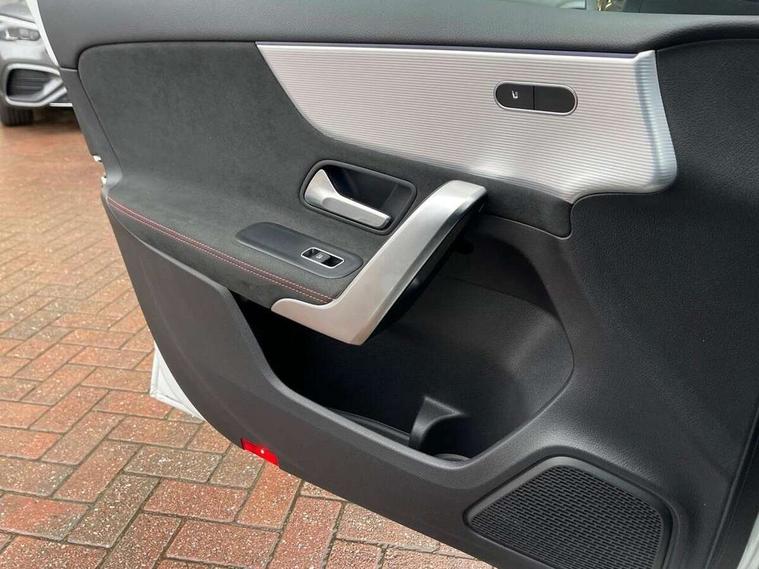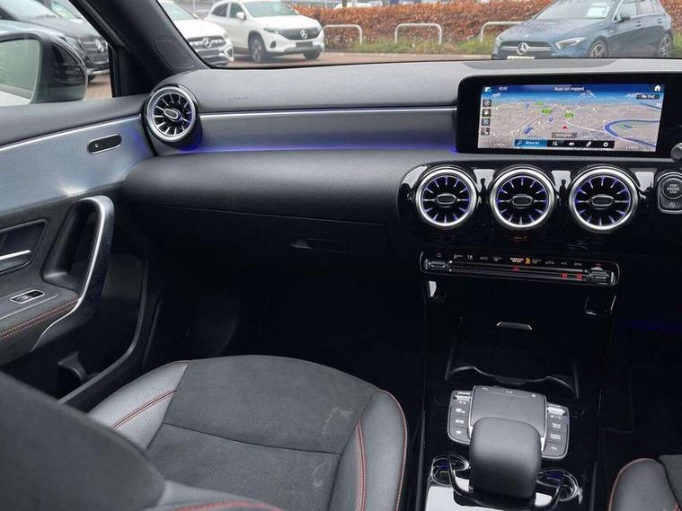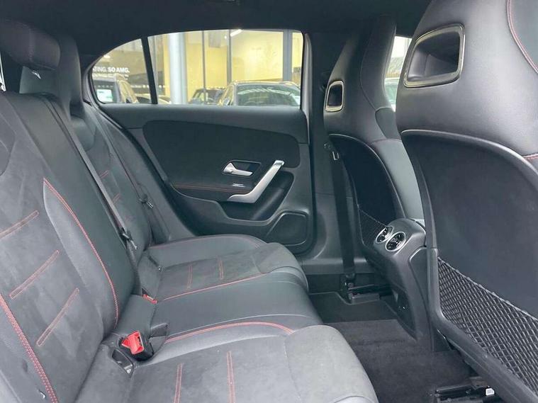 10.25" Digital instrument cluster display screen, 10.25" media display, 180 degree rear view camera with parking guidelines, Active parking assist with visual and audible warning of detected obstacles, Attention assist, Brake pad wear indicator warning light, Car wash mode, Cruise control + speed limiter, Direct steering, Dual bluetooth interfaces, DYNAMIC SELECT with a choice of driving modes (ECO, Comfort, Sport and Individual), ECO start/stop function, Fluid level warning indicator for fuel, oil, coolant and washer fluid, Hard-disk navigation, Hey Mercedes Voice activation, Lamp failure indicator, Lane keeping system, Mercedes me connect including emergency call system, accident recovery, breakdown and maintenance management, Mercedes me remote services, Outside temperature gauge, Owners manual in English, Pre-installation for private car sharing, Preinstallation for Mercedes Benz link, Service indicator (ASSYST), Smartphone integration with Apple CarPlay and Android auto, Speed limit assist, Speed sensitive power steering, Trip computer, Ultrasonic sensors positioned in the front and rear bumpers, Lowered comfort suspension, Rear axle torsion beam, 2 USB ports (type C) in rear stowage compartment and one in front of center console, 6 speakers, DAB Digital radio, MBUX multimedia system with DAB digital radio and touchpad including satellite navigation, Mercedes-Benz sound system - 100W, 4 Electric Front and Rear windows, Adaptive brake lights, AMG bodystyling - Front apron with splitter in chrome, rear apron with chrome trim and chrome visible trim elements in tailpipe, Automatic headlights, Black weather strip, Body colour bumpers, Body colour door handles with chrome inserts, Body colour side skirt, Electric adjustable and heated door mirrors with integrated LED side indicators, Exclusive diamond radiator grille, Exhaust system - Twin visible tailpipes in polished stainless steel, Headlamp assist automatic headlamp activation, Heated glass rear windscreen + timer control, LED High level third brake light, LED high performance headlamps with integrated LED daytime running lights, LED tail lamp, Privacy glass, Radio aerial, Rain sensing windscreen wipers with two sensitivity settings, Rear fog lights, Rear side wing doors, Rear wiper, 3 seat bench in 2nd row, 3 Spoke flat bottom leather multi function steering wheel with perforated leather in grip area, 40:20:40 split folding rear seats, Artico man-made leather/Microfibre Dinamica upholstery with red contrast stitching, Auto Mercedes-Benz child seat recognition sensor, Black air vents with surround in silver chrome, Black roof lining, Brushed stainless steel sports pedals with rubber studs, Controller on centre console with chrome surround, Floor mats with AMG lettering, Front centre armrest with storage compartment, Front seat backs luggage nets, Galvanished gear shift paddles on steering wheel, Heated front seats, Height/reach adjustable steering column, Illuminated Mercedes Benz lettering front door sills with changeable cover, Interior lighting - 64 colour Ambient lighting, Interior mirror with reading lamps in black and frameless, Manual height adjustable front seats, Rear head restraints, Seat occupancy sensor for front passenger seat, Single front passenger seat, Sports seats with integrated headrests, Stowage compartment in centre console with retractable cover, Sunvisors with illuminated vanity mirrors, Touchpad on center console, Twin front cupholders, Two zone thermotronic luxury automatic climate control, Light and sight pack - A Class, Mirror package - A Class, Night pack - A Class Saloon/Hatchback, Seat comfort pack - A Class, 3 rear 3 point seatbelts, ABS with Brake Assist, Active bonnet, Active brake assist includes forward collision warning system with autonomous braking, Adaptive brake assist with hold function and hill start assist, Black seatbelts, Childproof locks manually operated for rear doors and electrically operated for rear power windows, Crash responsive emergency lighting, Driver and passenger head and side airbags, Drivers knee airbag, Dual stage driver/passenger airbags, Electronic parking brake, ESP curve dynamic assist, ESP with ASR, Front and rear seatbelt reminder, Front brake callipers with Mercedes Benz lettering, ISOFIX and top tether child seat fixing points in two outer rear seats, Tyre pressure monitoring system, Warning triangle and first aid kit, Window airbags, Alarm system/interior protection/immobiliser, Keyless Go, Remote central locking and crash sensor with emergency opening function, Urban guard vehicle protection system with immobiliser and interior protection, Matrix look light longitudinal grain aluminium trim element, 18" AMG 5 twin spoke light alloy wheels aerodynamically optimised painted in black with highsheen finish, Summer tyres, Tirefit sealant kit,