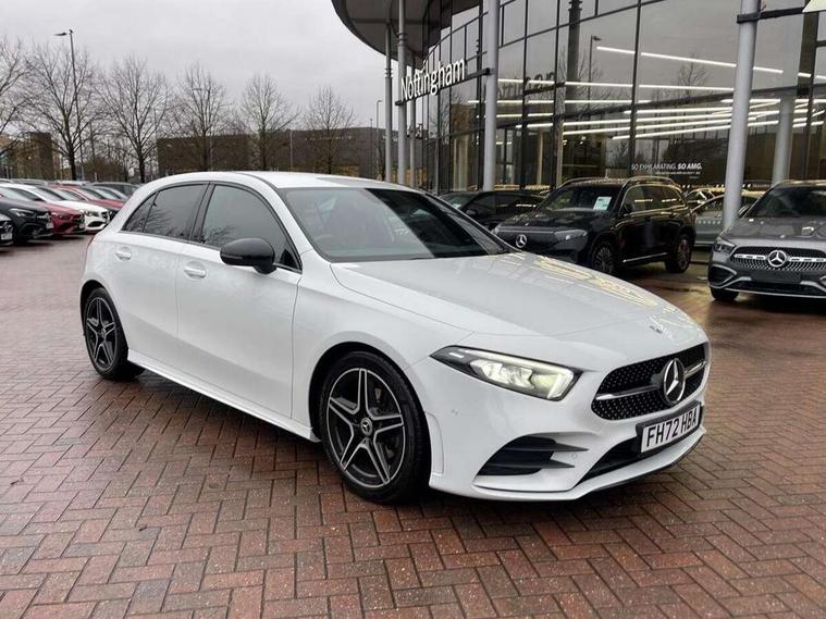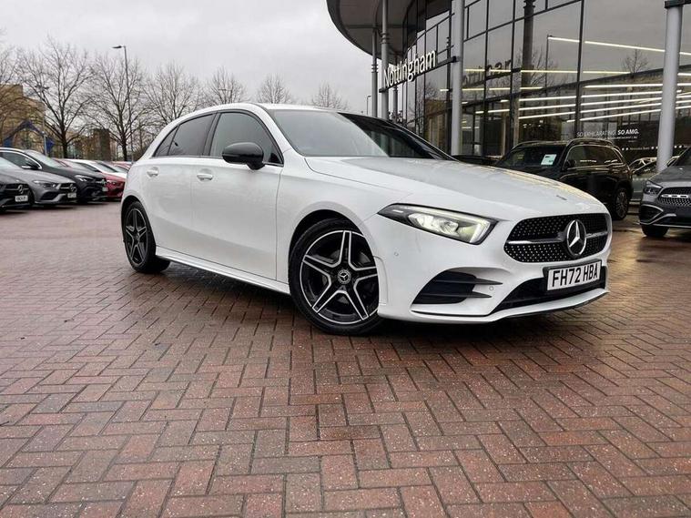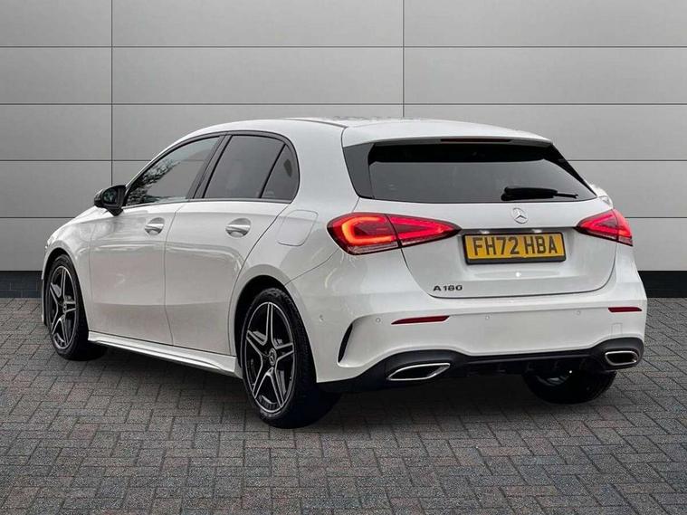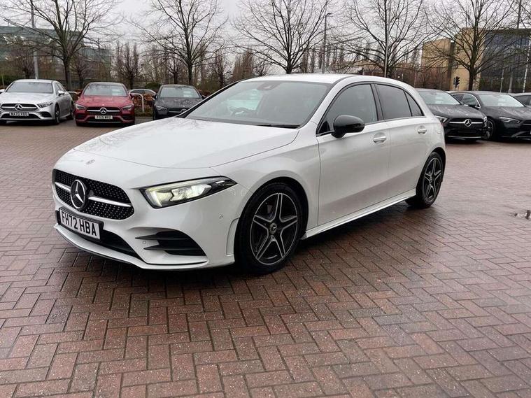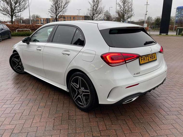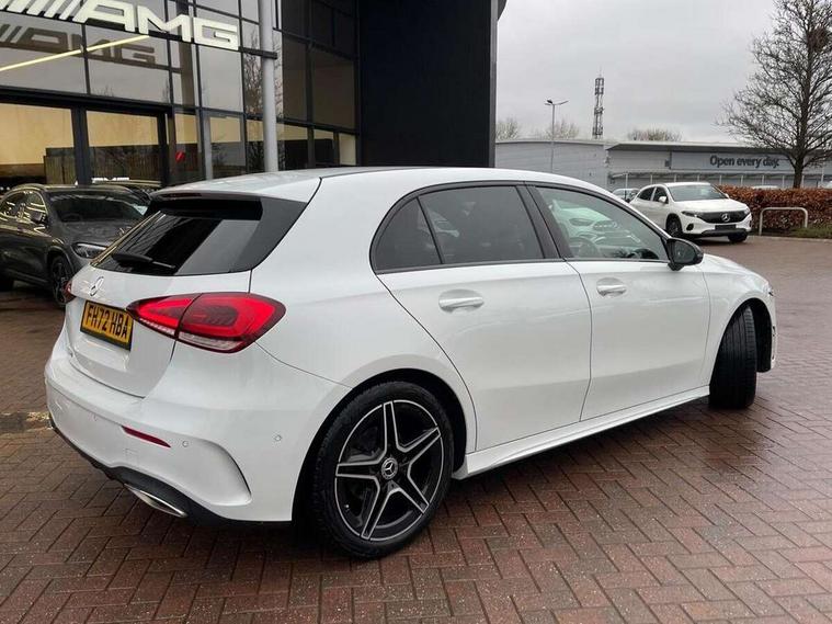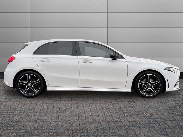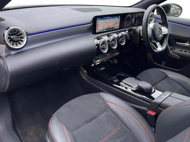 10.25" Digital instrument cluster display screen, 10.25" media display, 180 degree rear view camera with parking guidelines, Active parking assist with visual and audible warning of detected obstacles, Attention assist, Brake pad wear indicator warning light, Car wash mode, Cruise control + speed limiter, Direct steering, Dual bluetooth interfaces, DYNAMIC SELECT with a choice of driving modes (ECO, Comfort, Sport and Individual), ECO start/stop function, Fluid level warning indicator for fuel, oil, coolant and washer fluid, Hard-disk navigation, Hey Mercedes Voice activation, Lamp failure indicator, Lane keeping system, Mercedes me connect including emergency call system, accident recovery, breakdown and maintenance management, Mercedes me remote services, Outside temperature gauge, Owners manual in English, Pre-installation for private car sharing, Preinstallation for Mercedes Benz link, Service indicator (ASSYST), Smartphone integration with Apple CarPlay and Android auto, Speed limit assist, Speed sensitive power steering, Trip computer, Ultrasonic sensors positioned in the front and rear bumpers, Lowered comfort suspension, Rear axle torsion beam, 2 USB ports (type C) in rear stowage compartment and one in front of center console, 6 speakers, DAB Digital radio, MBUX multimedia system with DAB digital radio and touchpad including satellite navigation, Mercedes-Benz sound system - 100W, 4 Electric Front and Rear windows, Adaptive brake lights, AMG bodystyling - Front apron with splitter in chrome, rear apron with chrome trim and chrome visible trim elements in tailpipe, Automatic headlights, Black weather strip, Body colour bumpers, Body colour door handles with chrome inserts, Body colour side skirt, Electric adjustable and heated door mirrors with integrated LED side indicators, Exclusive diamond radiator grille, Exhaust system - Twin visible tailpipes in polished stainless steel, Headlamp assist automatic headlamp activation, Heated glass rear windscreen + timer control, LED High level third brake light, LED high performance headlamps with integrated LED daytime running lights, LED tail lamp, Privacy glass, Radio aerial, Rain sensing windscreen wipers with two sensitivity settings, Rear fog lights, Rear side wing doors, Rear wiper, 3 seat bench in 2nd row, 3 Spoke flat bottom leather multi function steering wheel with perforated leather in grip area, 40:20:40 split folding rear seats, Artico man-made leather/Microfibre Dinamica upholstery with red contrast stitching, Auto Mercedes-Benz child seat recognition sensor, Black air vents with surround in silver chrome, Black roof lining, Brushed stainless steel sports pedals with rubber studs, Controller on centre console with chrome surround, Floor mats with AMG lettering, Front centre armrest with storage compartment, Front seat backs luggage nets, Galvanished gear shift paddles on steering wheel, Heated front seats, Height/reach adjustable steering column, Illuminated Mercedes Benz lettering front door sills with changeable cover, Interior lighting - 64 colour Ambient lighting, Interior mirror with reading lamps in black and frameless, Manual height adjustable front seats, Rear head restraints, Seat occupancy sensor for front passenger seat, Single front passenger seat, Sports seats with integrated headrests, Stowage compartment in centre console with retractable cover, Sunvisors with illuminated vanity mirrors, Touchpad on center console, Twin front cupholders, Two zone thermotronic luxury automatic climate control, Light and sight pack - A Class, Mirror package - A Class, Night pack - A Class Saloon/Hatchback, Seat comfort pack - A Class, 3 rear 3 point seatbelts, ABS with Brake Assist, Active bonnet, Active brake assist includes forward collision warning system with autonomous braking, Adaptive brake assist with hold function and hill start assist, Black seatbelts, Childproof locks manually operated for rear doors and electrically operated for rear power windows, Crash responsive emergency lighting, Driver and passenger head and side airbags, Drivers knee airbag, Dual stage driver/passenger airbags, Electronic parking brake, ESP curve dynamic assist, ESP with ASR, Front and rear seatbelt reminder, Front brake callipers with Mercedes Benz lettering, ISOFIX and top tether child seat fixing points in two outer rear seats, Tyre pressure monitoring system, Warning triangle and first aid kit, Window airbags, Alarm system/interior protection/immobiliser, Keyless Go, Remote central locking and crash sensor with emergency opening function, Urban guard vehicle protection system with immobiliser and interior protection, Matrix look light longitudinal grain aluminium trim element, 18" AMG 5 twin spoke light alloy wheels aerodynamically optimised painted in black with highsheen finish, Summer tyres, Tirefit sealant kit,