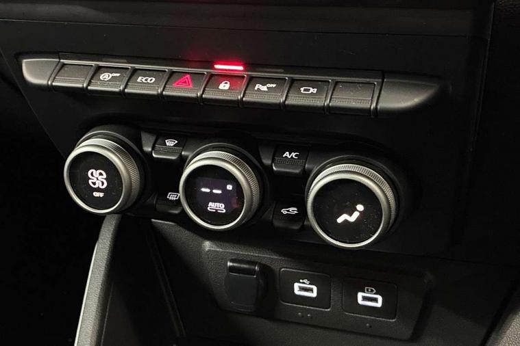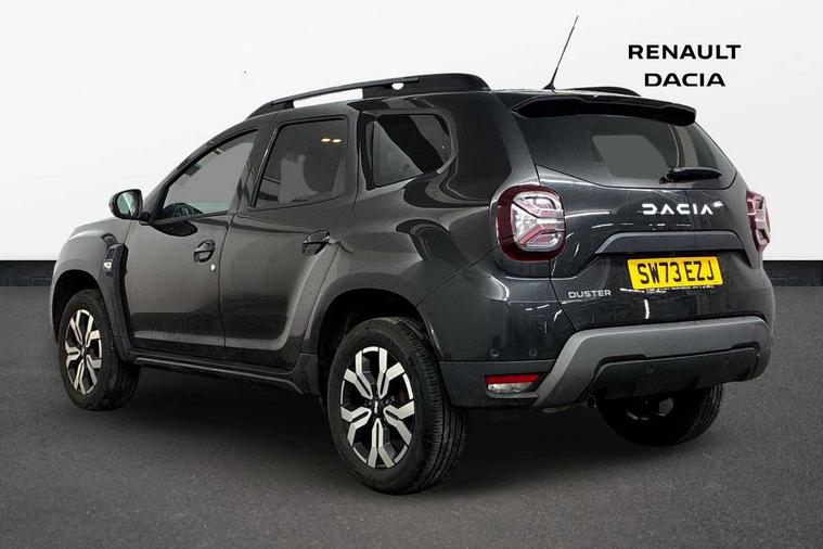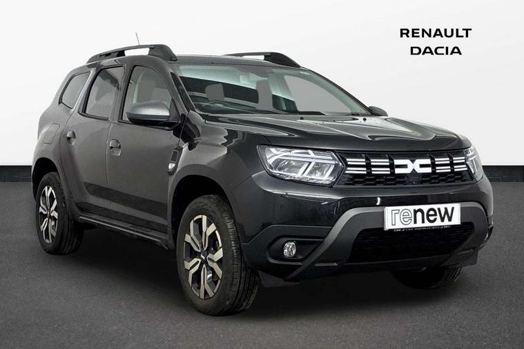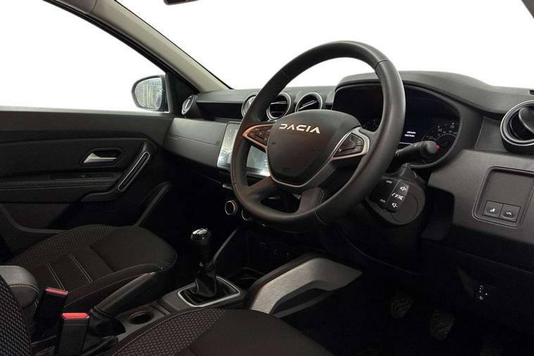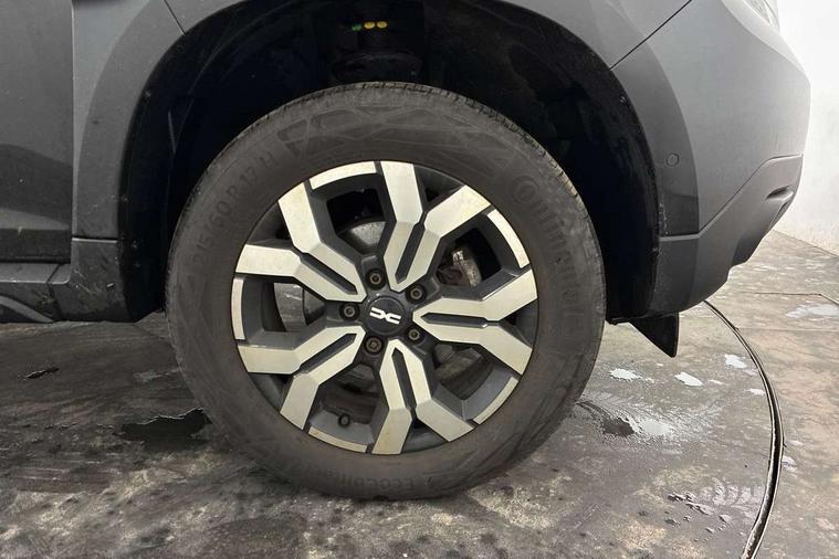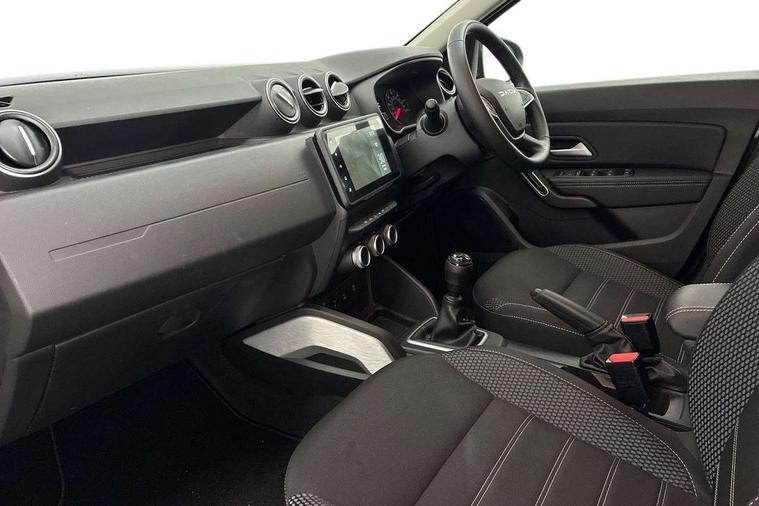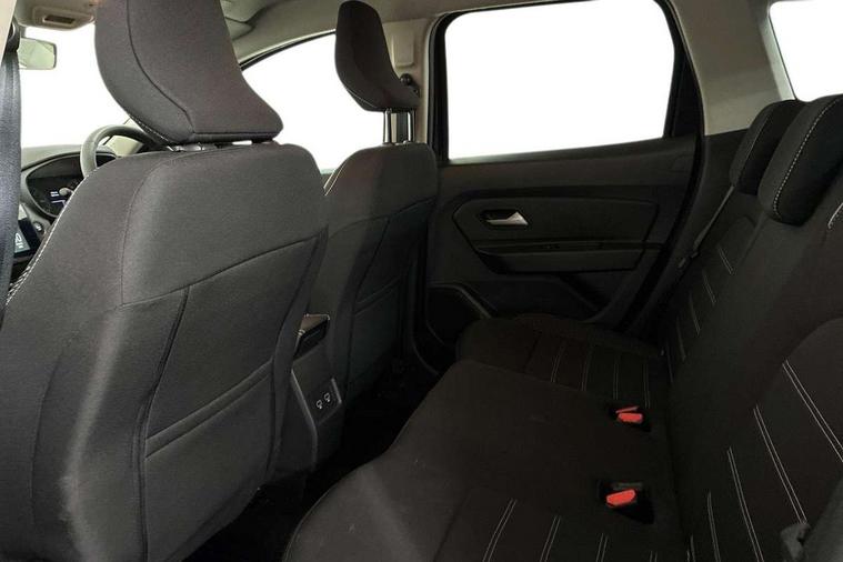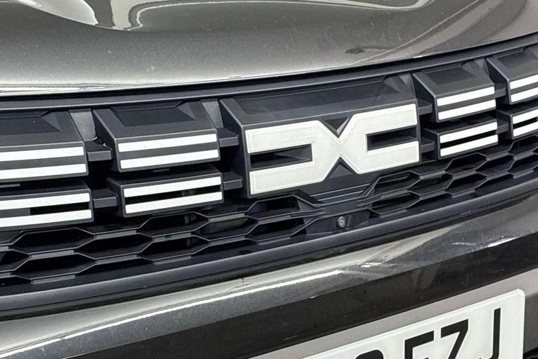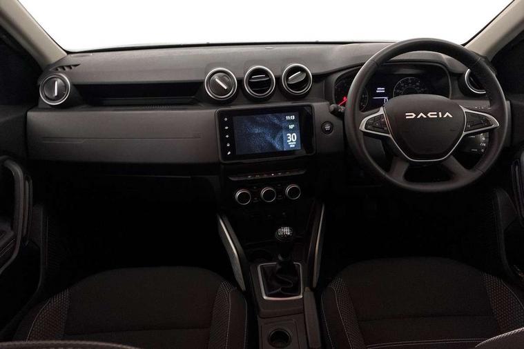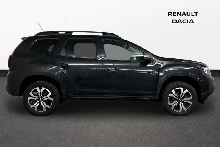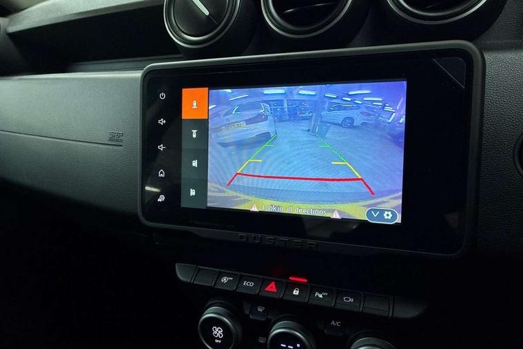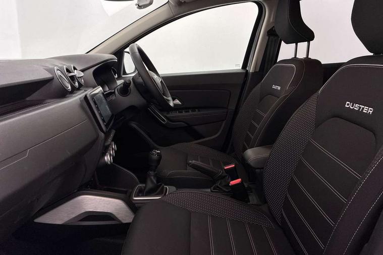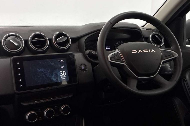 Blind spot warning, Cruise control and speed limiter, eCall emergency system, Eco mode, Electric power assisted steering, Multi view camera, On board computer, odometer, trip computer, average fuel consumption, average speed, service indicator, outside temperature gauge, Rear parking sensors, Rev counter, Reversing camera, Stop/start system, 8" Media Navigation with wireless smartphone replication, Dacia plug and radio/MP3/USB/bluetooth/DAB/steering wheel control, 3 speed windscreen wipers, Acoustic windshield, Automatic front wipers, Black side sills, Black/satin chrome tailgate trim with Duster inscription in black background and lettering, Body coloured door handles, Chrome front grille with hot stamping, Chrome logo surround on steering wheel, Dark glass on lateral rear windows, Daytime running lights, Drivers window one touch up/down, Dusk sensor, Electric adjustable/heated door mirrors, Electric folding door mirrors, Electric front windows, Electric rear windows, Front and rear body coloured bumpers, Front door sill protection strip, Front fog lights, Grey quartz longitudinal roof bars with Duster inscription, Heated rear window, High level third rear brake light, Modular roof bars, Rain sensor, Rear side wing doors, Rear spoiler, Rear wash/wipe, Satin chrome door mirrors, Underbody protection skid plates, Y shaped LED headlights with rear LED lights, 3 rear height adjustable headrests, 3 seat bench in 2nd row, 60/40 split folding rear seat, Automatic air conditioning, Backlighted steering wheel buttons, Boot light, Driver seat lumbar adjustment, Fabric decorative insert on door panels, Fabric upholstery, Front head restraints, Front passenger reading light, Gear shift indicator, Glovebox light, Heated seats, Height adjustable driver seat, Height adjustable front and rear headrests, Height and depth adjustable steering wheel, High centre console with driver armrest, Isofix points for child seats in both outer rear seats, Map pocket on front seat backs, Passenger sunvisor with vanity mirror, Rear passenger reading light, Satin chrome gear lever cap insert, Satin chrome interior door handles, Satin chrome lower steering wheel insert, Single front passenger seat, Soft feel leather steering wheel, 3x3 point rear seatbelts, ABS and Emergency brake assist, ASR traction control with Electronic stability control, Child locks on rear doors, Door open visual and audible warning, Driver airbag, Driver and passenger seatbelt not fastened - visual and audible warning, EBD - Electronic brakeforce distribution, Front passenger airbag, Front passenger airbag deactivation, Front seatbelt pretensioners, Front side airbags, Height adjustable front seatbelts, Hill start assist, Tyre pressure monitor, Keyless entry, Remote central locking, Thatcham approved engine immobiliser, Charcoal grey central console surround, Matt black central console fascia, Matt black decorative insert on rear door panels, Piano black decorative insert on front door panels, Satin chrome air vent surround, Satin chrome instrument dial surrounds, 17" Alloy wheels,
