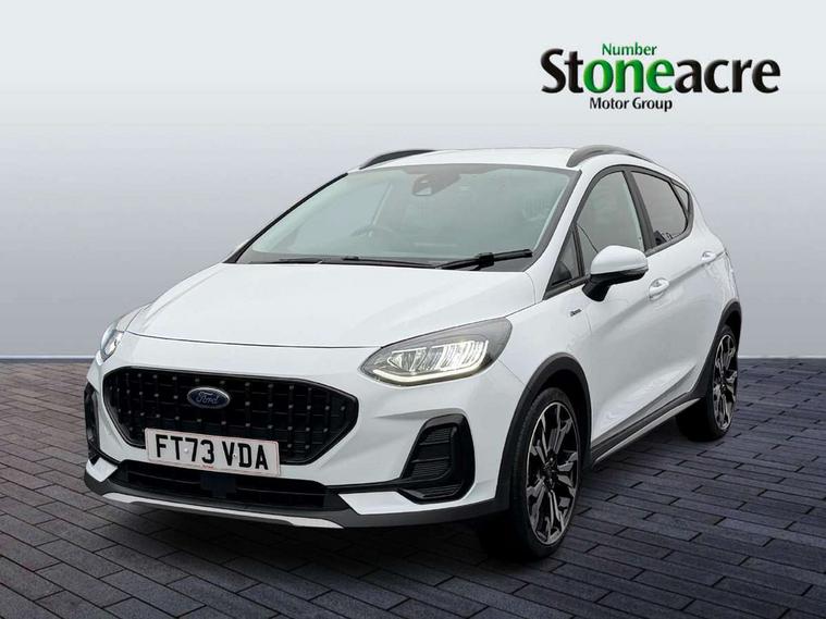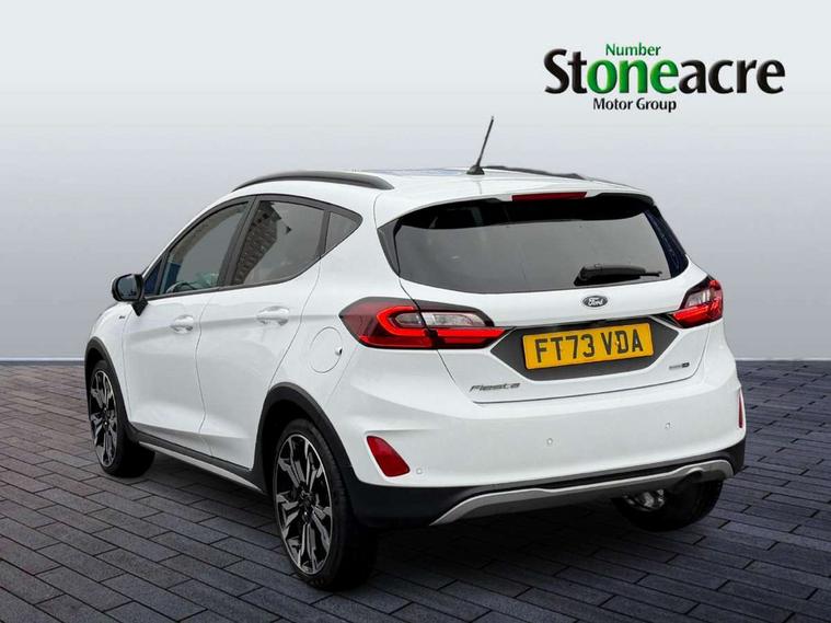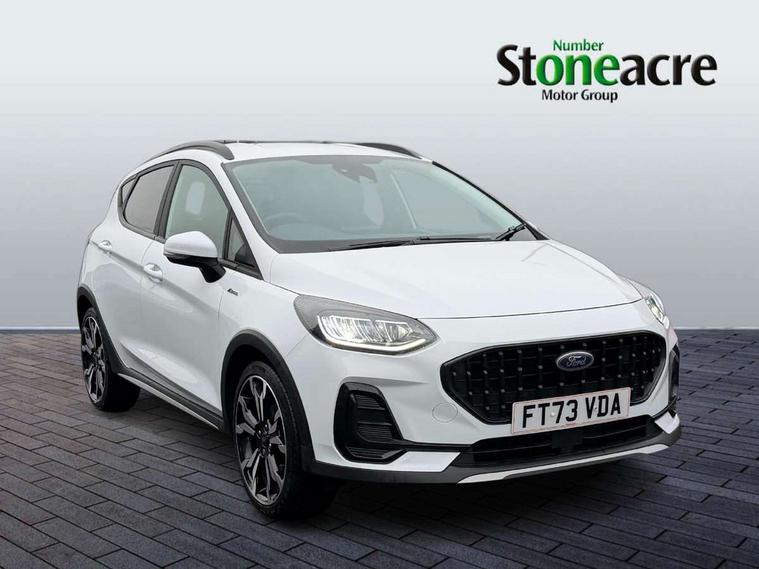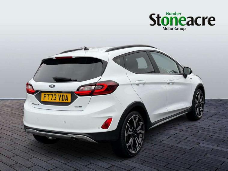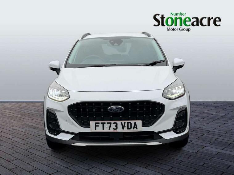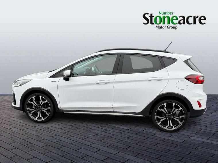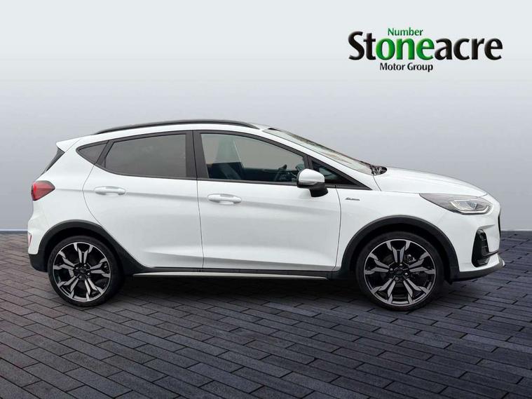 4.2" TFT instrument cluster screen, Bluetooth system, Electric power steering, Extra selectable drive modes ( Trail, Slippery), Ford easy fuel, Rear parking distance sensors, Selectable drive modes (Normal, Sport, Track), Traffic sign recognition, Trip computer, Rough road suspension with increased ride height adjust, 2 USB ports, Auxiliary input socket, B&O Premium audio system with 8" touchscreen, 10 speakers, 360 degree sound system, Ford SYNC 3 navigation system and Ford pass connect, DAB Digital radio, Steering wheel mounted controls, Auto high beam, Body colour bumpers, Body colour door handles, Body colour rear spoiler, Chrome beltline trim, Cornering front fog lights, Electric front windows/one touch facility, Electric rear windows, LED Night signature to rear lights, Mesh design front grille with chrome surround, Power foldable door mirrors with puddle lights, Quickclear heated windscreen, Rain sensing wipers and auto dimming rear view mirror, Rear privacy glass, Rear wiper, Rugged body styling kit with active front wing badges, 3 spoke leather trimmed steering wheel with audio control, 60/40 split folding rear seat, Adjustable head restraints, Boot carpet, Centre console with opening armrest, 2x cupholders, 12v and USB, Chrome inner door handles, Drivers and Passenger lumbar support, EATC - Electronic Auto Temperature control, Footwell illumination, Front floor mats in velour, Front map reading lights, Front seat and rear pockets, Height adjustable passenger seat, Illuminated glovebox, Leather gaiter, LED ambient lighting, Load area light, Manual 4-way driver seat adjust, Overhead console with sunglasses holder, Pollen filter, Rake/reach adjustable steering wheel, Sensico partial premium upholstery, Sensico wrapped steering wheel, NCAP Pack - Fiesta, 3 point seatbelts on all rear seats, ABS+EBA, Curtain airbags, Driver and passenger airbags, Drivers knee airbag, Electronic stability control with hill start assist, Front passenger airbag deactivation, Front side airbags, Seatbelt warning, Two tone horn, Tyre pressure monitoring system, Ford keyfree system with Keyless entry and keyless start, MyKey system, Remote central locking & engine immobiliser, Thatcham Cat.1 alarm, 18" 5 spoke alloy wheels with shadow black machined finish,