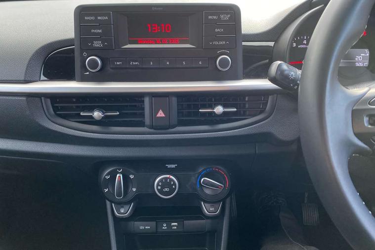 3.8" monochrome audio display with RDS, Colour information display, Digital clock, Emergency stop signalling system, External temperature gauge, Motor driven power steering, Tachometer, Trip computer, 4 speaker audio system, Bluetooth with music streaming, Steering wheel mounted controls, USB and auxiliary socket, Automatic headlights, Black radiator grille with chrome surround, Body colour bumpers, Body colour mirrors and door handles, Day/night rear view mirror, Daytime running lights, Electric adjustable heated door mirrors, Front and rear electric windows with drivers's auto up/down function, Headlamp levelling, Heated rear window, High mount brake light, MFR Multi - Focus Reflector headlights with black bezel, Rear fog lights, Rear wash/wipe, Tinted glass, Variable front intermittent wipers, Visible VIN plate, Welcome and follow-me home light functionality, 12V power point front, 3 x passenger assist grips, 60/40 split/folding 2nd row of seats, All round height adjustable headrests, Coat hooks, Cupholders in centre console, Driver and front passenger sunvisor with vanity mirror, Driver seat height adjust, Front cabin lights, Glovebox, High gloss lower centre fascia trim, door armrest and air vents, ISOFIX Child seat top tethers and anchor fixings, Leather trimmed steering wheel and gearshift, Luggage area light, Luggage area parcel shelf, Manual air conditioning, Passenger front seatback pockets, Premium cloth upholstery, Silver paint finished interior door handles, Slide/reclining front seats, Tilt adjustable steering wheel, 2 x 3-point rear seatbelts, ABS/EBD, Automatic unlocking of doors in case of impact, Dual front airbags, ESC + BAS + VSM + HAC, Front seatbelt height adjusters, Front seatbelt pretensioners + load limiters, Passenger airbag deactivate switch, Rear child proof door locks, Seatbelt warning, Side impact protection, Traction control, Twin curtain airbags, Twin front side airbags, Tyre pressure monitoring system, Anti theft alarm, Engine immobiliser, Folding key, Locking wheel nuts, Remote central door locking, 14" alloy wheels, Tyre mobility kit,