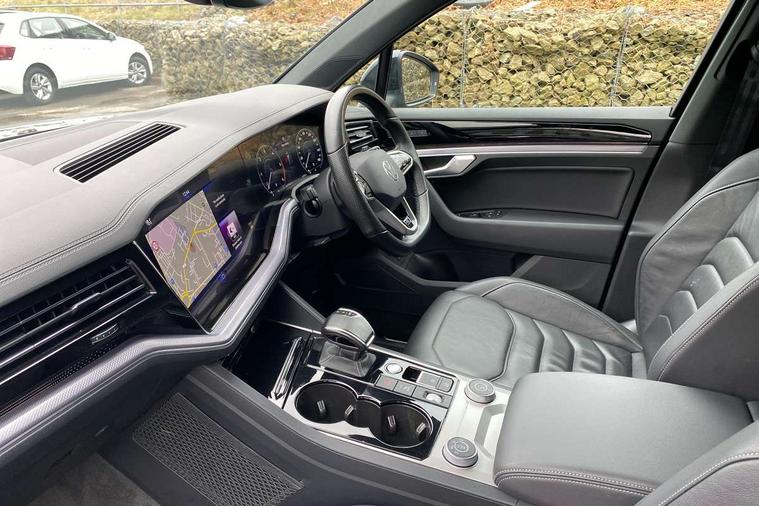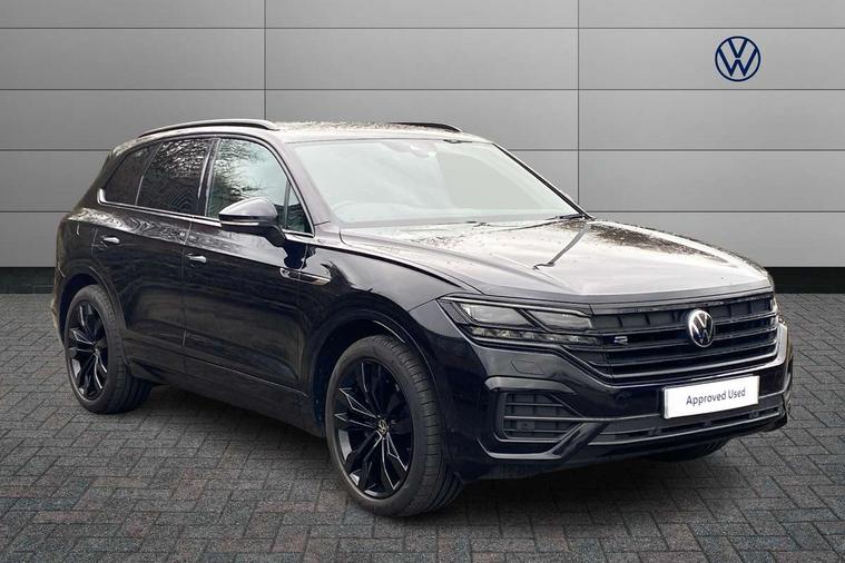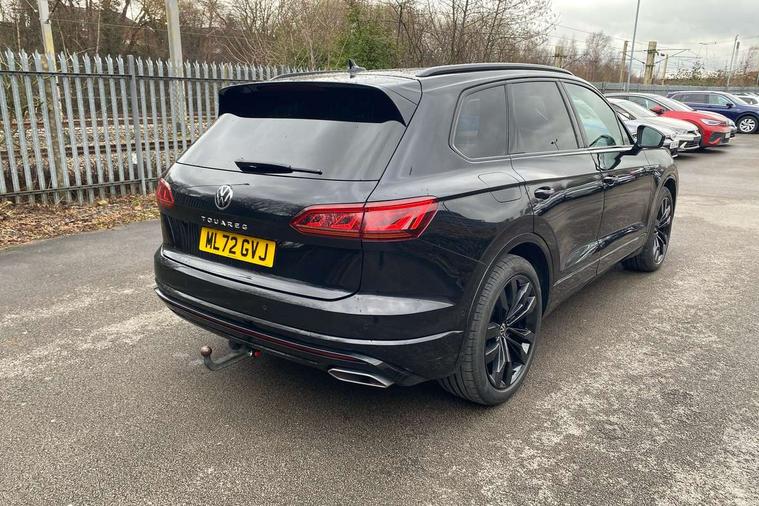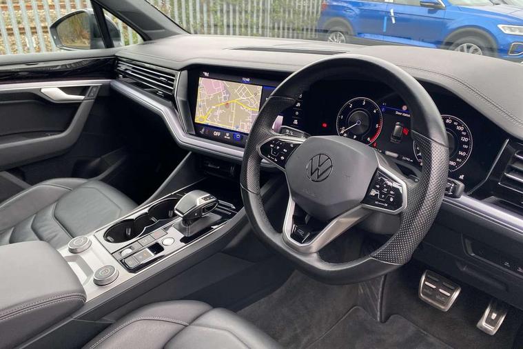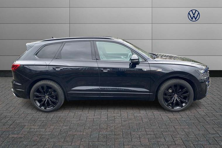 2D/3D map view, ACC - Adaptive cruise control with front assist, forward collision warning, distance monitoring, city emergency brake and speed limiter, Apple car play/Android Auto, Audible and visual fatigue detection system, Bluetooth hands free telephone connection, Car information display, Drive select with Damper control, Driver alert system, Driver profile selection, Dynamic road sign display camera controlled system with visual warning for traffic and road signs, eCall emergency system, Fully electric tailgate + keyless entry and start, Instrument cluster, MirrorLink, Multifunction camera, Multifunction computer premium with 7" colour display, One touch indicators with repeat function, Service interval indicator, Speed sensitive power steering, Start/stop system with regenerative braking, Tailgate power latch, Think blue trainer driver tips and journey analysis, Traffic sign recognition, Voice control system, Wireless Smartphone charger, 24 litre AdBlue tank, Torsen limited slip differential, DAB Digital radio, Dynamic navigation based on TMC+, Gesture control for infotainment system, Multi device interface (MDI) with illuminated USB-C connection, Music playback - MP3, WMA and AAC files, SD card slot, Simultaneous pairing of 2 compatible mobile devices, SMS functionality - read, compose and send SMS messages using touch-screen display, Title and cover art display, Volkswagen media control, Adaptive low beam for urban and motorway use, Auto dimming rear view mirror, Automatic coming/leaving home lighting function, Automatic headlights, Black anodised roof rails, Black door mirrors, Black rear diffuser, Black side window surrounds, Black upper and lower grille louvres extending into headlights and radiator grille, Body colour door handles, Body coloured wheel arches, C signature gloss black front air intake, Chromed tailpipe on the left and right integrated in the bumper with trapezoid design, Dusk sensor, Dynamic headlight range control, Electric front tilt/slide panoramic sunroof and fixed rear sunroof, Electrically power adjustable, heated, folding, auto dimming, front passenger exterior door mirror lowering function, Front and rear electric windows, Galvanised body, Gloss black finish B pillar, Gloss black rear diffuser, Headlight washers, Heat insulating darkened glass in side and rear windows, Heated windscreen washer jets, IQ.Light-LED matrix headlight, daytime running light with dynamic cornering light and indicator, LED 3rd brake light, LED rear fog light, LED rear number plate lights, Plastic scuff plates in door apertures, Poor weather light, Puddle lights, Rain sensor, Rear side wing doors, Rear wiper, 12V socket in front and rear centre console and boot, 2 Coat hooks on B pillar, 3 rear head restraints, 3 seat bench in 2nd row, 3 spoke sport heated leather multi-function sports steering wheel with gear shift paddles - generation 2, 4 way adjustable front head restraints, 4 way electric lumbar support for driver and front passenger, 4 zone climate control, 40:20:40 split folding slide/recline rear seat, B pillar vents, Black lower edge of door extending sills, Branded points of interest, Double sun visor for drivier and passenger with LED illuminated vanity mirrors, Electric luggage compartment cover, Folding rear centre armrest with 2 cupholders, Front + rear carpet mats, Front centre armrest with storage box, Gear shift indicator, Height/reach adjust steering wheel, Illuminated air conditioned glovebox, Isofix preparation for 2 rear child seats, Jack and tool kit, Leather trimmed gear knob with gloss black inlay/aluminum trim, Leatherette door trim, LED luggage compartment lighting, Load through provision, Luggage compartment with load lashing rings, Plastic loading edge protection, Rear seat remote release levers, Single front passenger seat, Soul black headlining, Stainless steel pedals, Innovision cockpit pack - Touareg, 3 point front seatbelts with pre-tensioners, ABS, Active bonnet, Automatic post collision braking system, Curtain airbags, Driver/Front Passenger airbags, EBD + Brake Assist, EDL, Electronic parking brake with auto hold, ESC with ASR, Front seat side impact airbags, Hill descent control, Hill start assist, Passenger airbag deactivate switch, Seatbelt warning lamp and buzzer, Three 3 point rear seatbelts, Two tone horn, Volkswagen roadside assistance, Warning triangle and first aid kit, Alarm with interior monitoring in cab, backup horn and towing protection, Child security locks for front and rear doors, Electronic engine immobiliser, Remote central locking, Black decorative trims on the side windows, High gloss black centre console,