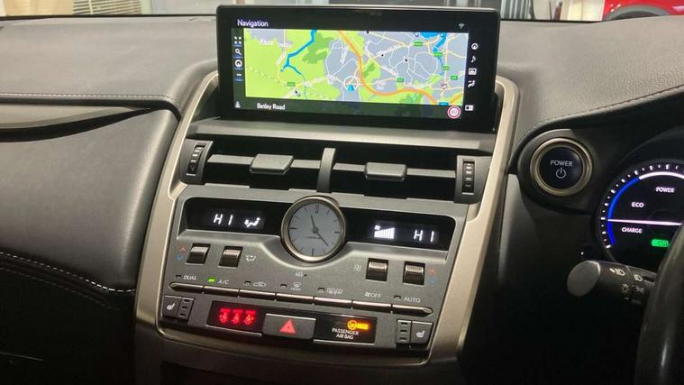 4 driving modes EV/Eco/Normal/Sport, 8" display screen with remote touch interface, Analogue clock, Apple car play/Android Auto, Bluetooth telephone connectivity, Electric speed sensitive power steering, Intelligent parking sensors - 4 front and 4 rear, Lane change flasher function, Lexus link connected services with available optional wifi, Lexus navigation system, Push button starter, Reversing camera, All wheel drive system, Vehicle Dynamics Integrated Management (VDIM), Vehicle Stability Control (VSC), 2 USB ports, 8 speakers, AUX socket with VTR compatibility, CD player, DAB Digital radio, Auto dimming interior rear view mirror, Bi LED headlight with Auto high beam, Body adhesive, laser screw welding and laser brazed roof structure, Front and rear one touch power windows, with anti-jam protection, Heated and auto folding door mirrors with turn indicators, Hidden exhaust pipe, LED brake lights and rear lights with emergency brake signal, LED daytime running lights, LED front and rear sequential indicators, Rain sensor windscreen wipers, Roof rails, 12V accessory port centre console and luggage compartment, 2 cupholders in front centre console, 2 map pockets in the rear, 2 x fixed shopping bag hooks in boot, 2 x sun visors with vanity mirror and lamp, 6 tie down hooks in boot, 60/40 split folding rear seat, 8 way driver/passenger electrically adjustable front seats, Adjustable rear seat backrest, Card holder installed in driver and passengers sun visors, Centre armrest with storage box, Dual climate control air conditioning system, Front and rear head restraints, Front and rear textile carpet mats, Heated front seats, Leather gear lever, Leather steering wheel with paddle shifts, LED interior illumination, Rear air vents, Rear centre armrest with 2 cupholders, Self charging hybrid, Tahara leather upholstery, Whiplash Injury Lessening (WIL) feature (active headrest) for seats, 2 x Isofix child rear seat restraints, 3 point ELR front seatbelts with pretensioners, 3x3 point rear seat belts, ABS, Adjustable seat belt anchor points, Driver and front passenger 2 stage airbag, Driver/front passenger side airbags, Drivers knee airbag, EBD + Brake Assist, ECB (Electronically Controlled Brake System), Electronic parking brake, Front and rear curtain shield airbags, Front passenger seat cushion airbag, Hill start assist, Hybrid automatic with 6 stage sequential shift and kick down switch, Lexus safety system - dynamic radar cruise control, pre collision system day and night, lane tracing assist, road sign, automatic high beam, OTA, Passenger airbag cut-off device, Traction control, Tyre pressure warning, 2 x remote key fobs, Anti-theft system with siren, alarm, intrusion sensor, glass breakage sensor, tilt sensor and engine immobiliser, Locking wheel nuts, Speed sensitive auto door locking, Two motion door lock with double lock, VIN Window etching, Silver inlays, Space saver spare wheel,