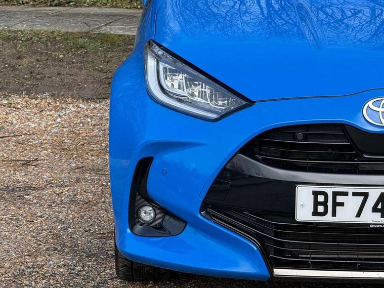12.3" Digital Combimeter, Adaptive cruise control, Adjustable speed limit with speed warning, Bluetooth connectivity, Colour binocular inspired displays with digital speedometer, E-call, Electric power steering, Head up Display, Hybrid energy display, Multi information display switches on steering wheel, Reversing camera, Tailgate, Voice recognition, Wireless charger, Vehicle Stability Control (VSC), 10.5" Toyota smart connect multimedia with wireless smartphone integration incl apple car play and cloud Navigation, 6 speakers, 8 Speakers, JBL speaker system, Toyota Touch 3 system with DAB radio, USB connection, Acoustic windscreen glass, Auto windscreen wipers, Automatic headlights, Body coloured door mirrors, Dark chrome lower meshed front grille, Electric adjustable heated door mirrors, Follow me home headlights, Front auto power windows with anti jam protection, Full LED rear lights, LED daytime running lights, LED front fog lights, LED front light guide, LED Headlights, LED High mounted stop lamp, LED Indicators, LED rear light guide, Manual headlight levelling, Painted chequered front grille with hot stamp in mesh design, Rain sensor, Rear auto power windows with anti jam protection, Rear privacy glass, Rear side wing doors, Rear spoiler, Rear wiper, Shark fin antenna, Turning signal integrated indicators in door mirrors, Variable front intermittent wipers, 3 adjustable rear headrests, 3 seat bench in 2nd row, 3 spoke leather steering wheel, 60/40 split folding rear seat, Active headrests, Adjustable boot height, Black roof lining, Coat hooks in rear grab handles, Cup holders (2 front & door), Data Communication Module (DCM) connected services, Dual zone automatic air conditioning, Front armrest, Front sport seats, Glovebox, Height adjustable driver's seat, Height adjustable passenger seat, Isofix seat fixing, Leather gearshift, Map pockets on the backs of the front seats, Nanoe-X air purifier, Partial leather upholstery, Pollen filter, Shopping bag hooks, Single front passenger seat, Tilt/telescopic steering column, Safety pack - Yaris, 3 point seatbelts on all rear seats, ABS+EBD+Brake assist, Electronic parking brake, Emergency brake light system (EBS), Front passenger airbag on/off switch, Front seatbelt reminder, Hill start assist control (HAC), Rear child proof door locks, Rear seat belt reminder, Supplemental Restraint System (SRS) 8 airbags: Driver & passenger's airbags, dual side curtain airbags, side impact airbags, front centre airbag, Toyota Safety Sense 3 with over the air updates, Tyre pressure warning system, 2x Master key, Alarm/immobiliser, Keyless smart entry with push button start, Remote AC via MyT, Remote locking via MyT, Remote powered central double locking doors, Smart digital key, Piano black interior trim, Soft touch instrument panel, 17" Black Machined-face, 5 double spoke alloys wheels, Space saver spare wheel,