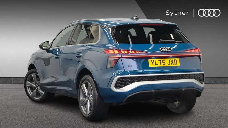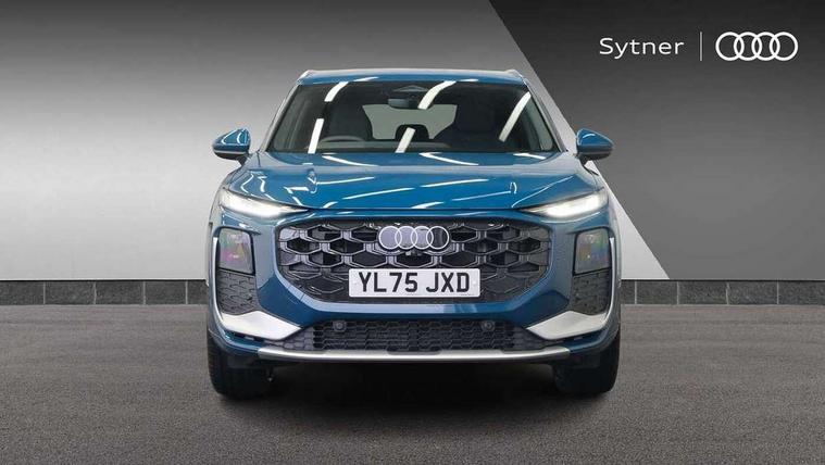 Adaptive cruise control, Audi connect emergency call and service, Audi connect remote and controls, Audi drive select (Balanced/Individual, effeciency, comfort and dynamic), Audi virtual cockpit plus - 11.9" display, Bluetooth interface, Camera based traffic sign recognition, Driver attention and fatigue monitor with driver monitoring, Front cross traffic assist, Lane departure warning with emergency assist, Panoramic curved display with 12.8" MMI navigation plus and MMI touch, Park assist plus with parking system and 360 display, Phonebox light with wireless charging, Reversing camera, Smartphone interface includes wireless Apple carplay/Android Auto, Start/stop system, Swerve assist and turn assist, Traffic sign based speed limiter, Voice control system with natural language interaction, Comfort suspension, Petrol Particulate Filter, 2 USB-C ports with charge and data functions, Audi sound system with 10 loudspeakers, subwoofer, 8 channel amplifier with 260 watts, DAB digital radio module, Acoustic glass for front door windows, Acoustic windscreen, Aluminium roof rails, Aluminium window trim, Audi Q3 lettering on the B-pillars, Auto dimming door mirrors, Auto dimming rear view mirror, Body colour door mirrors, Contrasting finish in volcano grey, Electrically folding, adjustable and heated door mirrors with integrated LED side indicators and kerb view function for passenger side, Full paint finish, Illuminated door sills with aluminium inserts at the front with S logo, LED daytime running lights, LED headlights plus with LED rear lights pro with continous light strip, illuminated Audi rings, rear, LED third brake light, Loading sill protector in stainless steel, Main beam assist, Privacy glass - dark tinted rear window, rear door and side windows, Projection light in the exterior mirrors - Projects a graphic element onto the ground, Q3 badging on the rear, Rain and light sensors, Rear side wing doors, Rear window, rear door windows and rear side windows in clear glass, Rear wiper, Sports bumpers, 3 seat bench in 2nd row, 3 spoke flat top and bottomed leather multi function sport steering wheel with gear shift paddles and "S" badging, 3-zone deluxe automatic air conditioning, 4 way lumbar support for the front seats - electric with horizontal and vertical adjustment in four directions, Black cloth headlining, Front and rear floor mats, Front and rear headrests, Front centre armrest, Heated front seats, Height and reach adjustable steering wheel, Interior storage compartment, Leather/artificial leather upholstery combination with S emblem + front sports seats, Luggage compartment lid, electrically opening and closing, Manual front seats with height adjustment, Rear seat bench plus with split folded 40:20:40, Single front passenger seat, Stainless steel pedals, Steering wheel operating unit, gloss black, Storage compartment in front centre console, Ambient lighting package pro - Q3, S line exterior styling pack - Q3, 3x3 point rear seatbelts, Convenience key with safelock, Driver and front passenger airbag with passenger airbag deactivation, Electromechanical parking brake, Electronic stabilisation control including ABS, ASR and EDL, First aid kit with warning triangle and high visibility vests, Front emergency brake assist, Hill hold assist, i - Size child seat mounting on the front passenger side and i - Size and top tether on the outer rear seats, Power operated child locks, Seatbelt monitoring, Three point automatic belts with belt tensioner and height adjustment, Tyre pressure loss indicator, Anti theft wheel bolts, Remote central locking, Thatcham approved category 1 anti theft alarm, Dark aluminium divergence inlay, Interior elements in dinamica microfibre, Interior trims in aluminium look, Tool kit and Jack,
