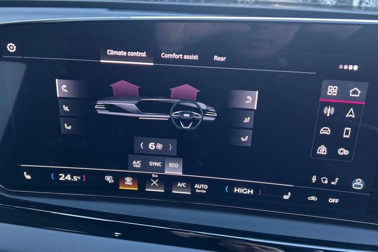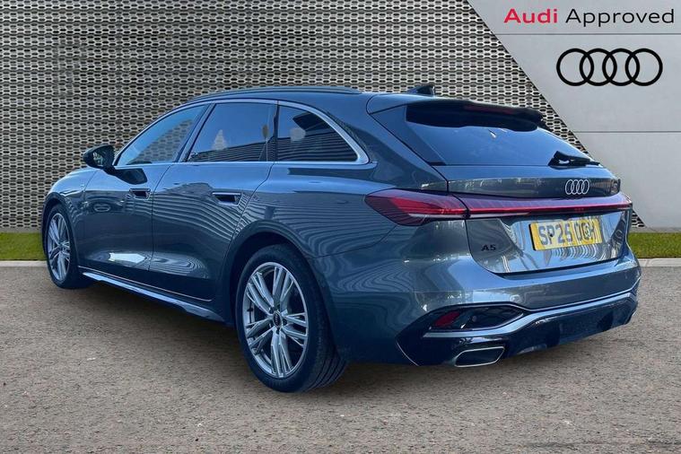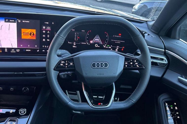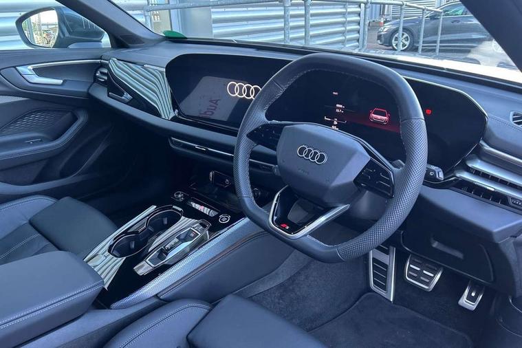 Adaptive cruise control, Advanced driver attention and fatigue montior, Audi application store, Audi assistant, Audi connect emergency call and service, Audi drive select, Audi smartphone interface, Audi virtual cockpit plus with 11.9" OLED colour display, Automatic start/stop system with coasting functionality, Camera based traffic sign recognition, Intersection assist, Lane departure warning, MMI navigation plus with high resolution 14.5" OLED touchscreen colour display, Park assist plus, Parking system plus with 360 display, Progressive steering with servotronic, Rear view camera, Swerve assist and turn assist, Traffic sign based speed limiter, Sports suspension lowered by 20mm, 2 USB-C ports in both the front and rear, Audi sound system impressive sound with 10 loudspeakers including centre speaker and subwoofer, 6-channel amplifier with a total output of 180 watts, DAB digital radio reception, Smartphone compartment with wireless charging, Aluminium roof rails, Aluminium window trims, Auto dimming rear view mirror, Body colour door mirrors, Door mirrors - electrically adjustable, heated, folding and auto dimming on both sides, Front and rear electric windows, Front door sill trims with aluminium inlays, illuminated with 'S' logo, High beam assist, LED headlights Plus incl. digital daytime running lights, turning light, all-weather light, motorway light, manouevring light and intersection light, LED rear lights pro incl. dynamic rear indicators and illuminated light strip with animated coming and leaving home function, LED third brake light, Privacy glass, Rear and side windows with heat insulating glass, Rear side wing doors, Rear wash/wipe, S Line badges on the front wings, S line bumpers, radiator grille and diffuser in phantom black and diffuser insert in matt anthracite, White rhombus logo projection light in exterior mirrors, Windscreen with acoustic glazing, 3 rear headrests, 3 seat rear bench, 3 spoke leather steering wheel with multi-function buttons with touch control, flattened on top and bottom, with S badging and contrast stitching, 3-zone automatic climate control, 40:20:40 split folding rear seat bench with centre armrest and cup holders, Comfort front centre armrest, Front and rear floor mats, Front seats with manual adjustment for position and 4-way electric lumbar support, Front sport seats with integrated headrest and S embossed logo, Headlining in black cloth, Heated front seats, i-Size child seat mounting on the front passenger side and outer rear seats, i-Size and top tether on the outer rear seats, Luggage compartment lid, electrically opening and closing, Manual steering column height and depth adjustment, Single front passenger seat, Stainless steel pedals and footrest, Steering wheel grips in perforated leather and shift paddles, Ambient lighting package plus - A5, 3x3 point rear seat belts, Driver airbag, Electric child safety locks, First aid kit with warning triangle and vests, Front emergency brake assist, Front passenger airbag, Front passenger airbag deactivation, Front side airbags with head airbag system and front interaction airbag, Hill hold assist, Seat belt monitoring with rear seat occupant reminder, Tyre pressure loss indicator, Anti theft alarm, Anti-theft wheel bolts, Keyless Go, Accent surfaces and control buttons in gloss black, Black dashboard with contrast stitching, Inlays in matt brushed aluminium with linear embossing, anthracite, Softwrap in leatherette with contrast stitching, Upper and lower interior elements in leatherette, Tyre repair kit,