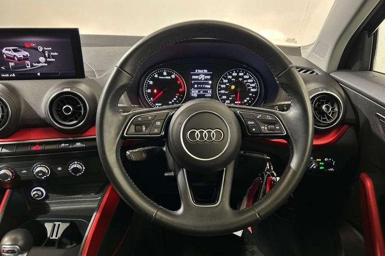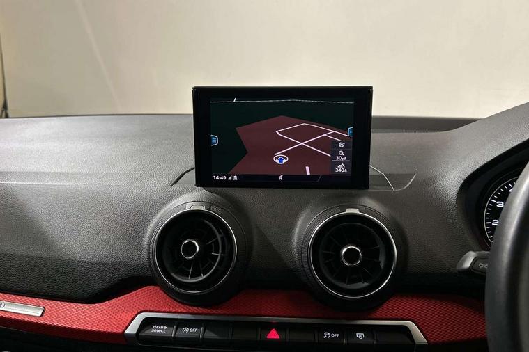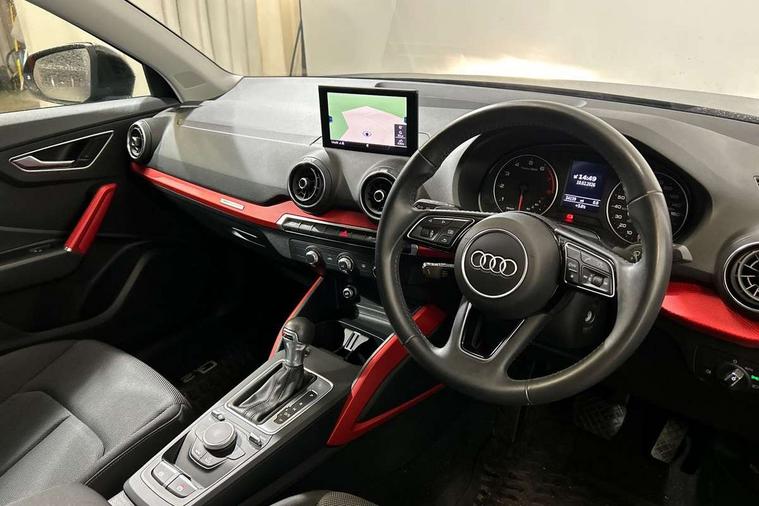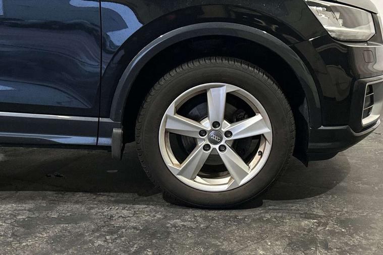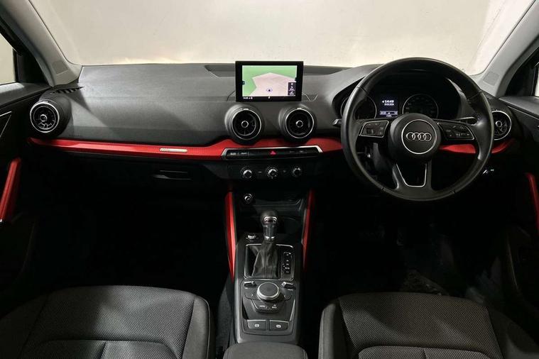 Audi drive select, Audi smartphone interface, Automatic start/stop system with recuperation, Bluetooth interface includes bluetooth audio streaming, Cruise control, MMI - Multi Media Interface control system, MMI SD card integrated nav with 3D map display, dynamic route guidance with TMC, MMI search, natural voice recognition and myAudi special destinations, Power operated tailgate, Progressive steering, Service interval indicator, Dynamic suspension, 2 x SDXC card reader, Audi music interface - apple iPod, apple iPhone, USB storage media, compatible MP3 players, 2 x USB charging points and 1 x Aux-in, CD Drive, DAB digital radio and AM/FM radio, MMI radio plus with 7" colour MMI screen and MMI controller, Air inlet in manhattan grey metallic, Black window trims, Body colour door mirrors, Chrome exhaust tailpipe, Electrically adjustable and heated door mirrors with integrated LED side indicators, Front and rear electric windows, Front underbody guard and rear diffuser trim in selenite silver, Front windscreen with grey tinted sunband, Halogen headlights including headlight range adjustment, High gloss black radiator grille, Interior mirror, LED indicator lights, Manual folding door mirrors, Rain and light sensors, Rear wiper, Side skirts in manhattan grey, Wheel arch trims in manhattan grey, 60/40 split folding rear seat bench, Door sill trims with aluminium inlay, Electronically operated child locks, Front centre armrest, Front headrests, Front sports seats, Front/rear floor mats, Height/reach adjust steering wheel, ISOFIX child seat mounting for front passenger with airbag deactivation and outer rear seat including top tether attachment point for outer rear seats, Manual seat adjustment including seat height adjustment for front seats, Storage compartments - Glovebox, cupholder compartment in centre console, storage compartment in rear centre console, front and rear door pockets, Three rear headrests, Titanium grey cloth headlining, Non smoking pack - Q2, 3x3 point rear seatbelts, 6 airbags - Front, curtain and front side airbags, Electromechanical parking brake, Electronic stabilisation control including ABS, ASR and EDL, Extended and proactive pedestrian protection, Hill hold assist, Multi collision brake assist, Pre-sense front with pedestrian recognition, Seatbelt monitoring, Tyre pressure warning light, Warning triangle and first aid kit, Anti theft alarm, Anti theft wheel bolts, Central locking system with remote control key, Aluminium interior element,