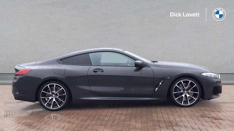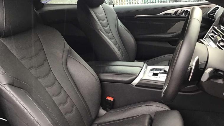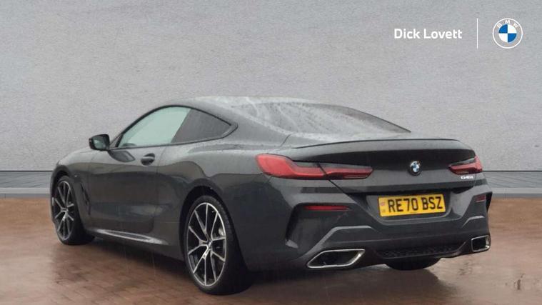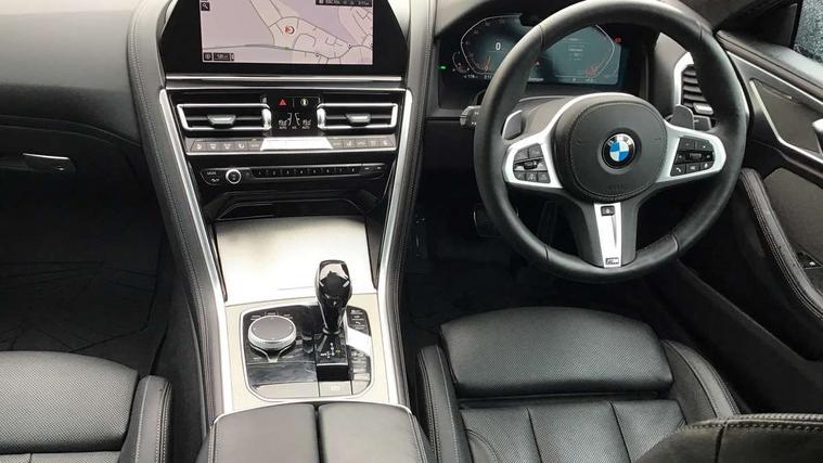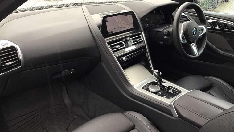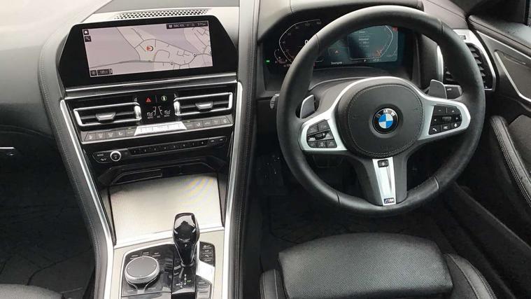 BMW legal emergency call, BMW Live Cockpit Professional sat nav system with intelligent personal assistant, voice control, gesture control, BMW Teleservices, Brake pad wear indicator, Check control system, Condition based service, Drive experience control with Sport, Comfort, Eco Pro and Adaptive modes, Enhanced bluetooth with wireless charging, Head up Display, iDrive touch controller with shortcut buttons, Instrument and upper door panel in walknappa leather, Integrated owners handbook, Oil sensor for level and grade, On board computer, Outside temperature display, Powered tailgate operation, Rear view camera, Run flat indicator, Service interval indicator, Wifi hotspot preparation, Adaptive M suspension, Double wishbone front axle, Dynamic Damper Control, Eight speed sport automatic transmission with gearshift paddle switches, M Sport differential, Petrol Particulate Filter, DAB Digital radio, Favourite buttons, USB/audio interface, Bright chrome kidney grille, Carbon core, Chrome M designation on front side panel, left and right, Climate comfort windscreen, Dynamic brake lights, Electrically adjustable, heated, folding exterior mirrors, Follow me home headlight function, Frameless interior mirror, Front and rear bumper system with replaceable deformation elements, Front electric windows, Heated windscreen washer jets, High beam assistant, Illuminated door handles, LED rear lights, Model logo on right tailgate, Rain sensor with automatic headlight activation, Rear apron trim insert in dark shadow metallic, Satinised aluminium kidney struts, Thermally insulated windscreen, Third LED technology brake light in rear window, Welcome lights in interior and door handle area, 2 cup holders in front, 2 X front 12v power sockets, 50/50 split folding rear seat, Anthracite headlining, Armrests integrated in front door trim, centre console includes storage compartment, Automatic air conditioning with 2-zone control, Dynamic ambient interior lighting, Electric front seat adjustment with driver memory, Front entry lights doors, Front reading lights, Front seat heating, Front sun visors with ticket holder and illuminated mirror, Illuminated M door sill finishers, Lockable glove compartment with light, M Pedals, M sport leather steering wheel including multifunction controls, Microfilter and active carbon filter, Rear head restraints, Steering column with adjustable height and length and activation via control on the steering column, Velour floormats, Connected professional pack - 8 Series, M sport exterior styling aerodynamics pack - 8 Series, ABS/EBD, Active front seat headrests, Active protection, Airbags - Driver and front passenger airbag with seat occupancy detection, knee, side and front passenger seat airbag deactivation, Child seat ISOFIX attachment rear outer seats, Cornering brake control (CBC), Crash sensor activating central locking release, hazard warning lights, fuel cut off, interior lighting, safety battery terminal clamp and airbags, DSC - Dynamic Stability Control, Dynamic brake control, Dynamic Traction Control - DTC, Electromechanical parking brake with automatic drive away release and auto hold function, Front and rear brake discs with interior ventilation, Front and rear head airbags, Front three point with pyrotechnical belt latch tensioner seat belts, belt force limiter and belt stopper, Fuel supply cut off, Hill start assist, Rear three point with pyrotechnical belt latch tensioner seat belts and belt force limiter, Side impact protection, Two tone horn, Tyre pressure monitoring system (TPMS), Warning triangle and first aid kit, Alarm system (Thatcham 1) with electronic engine immobiliser, Centre lock switch, Closing system with central locking, Comfort access system, Keyless engine start, Locking wheel bolts, Vehicle key with exclusive M designation,