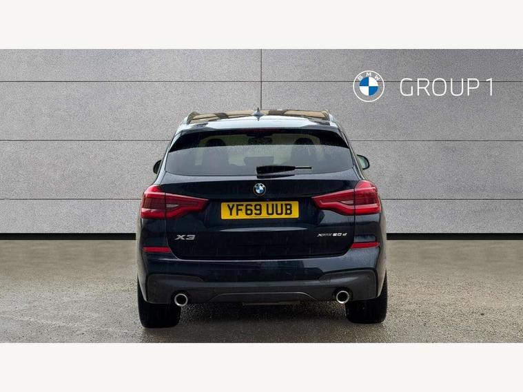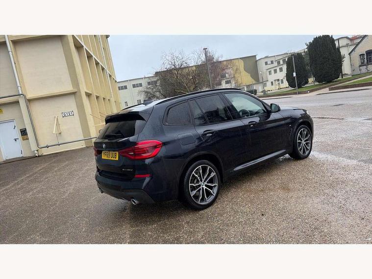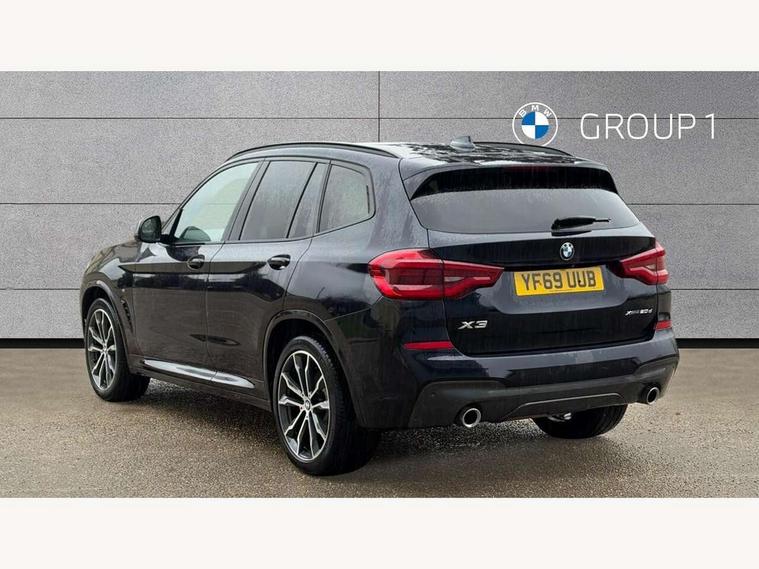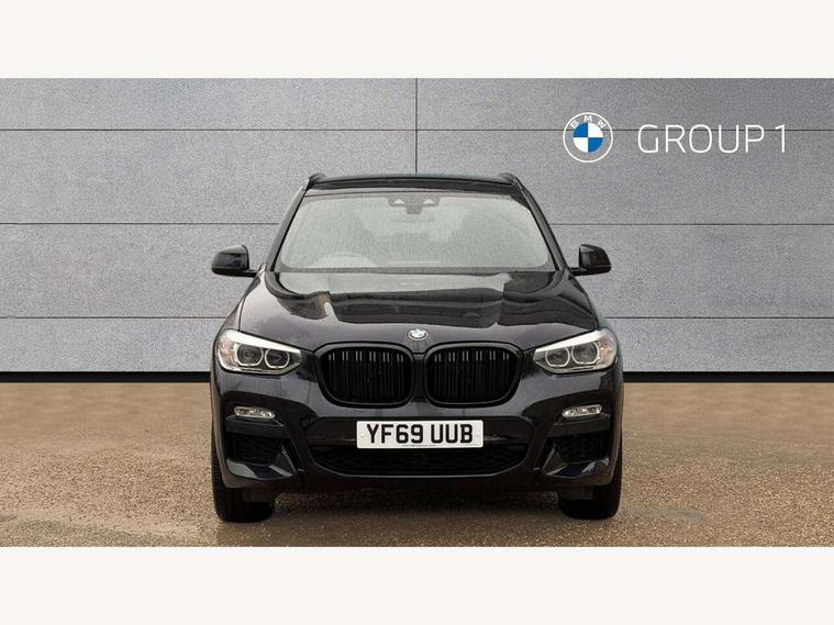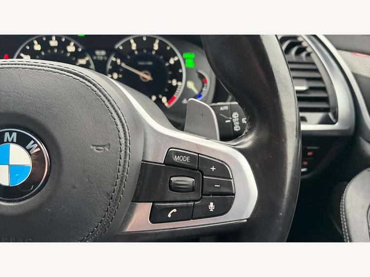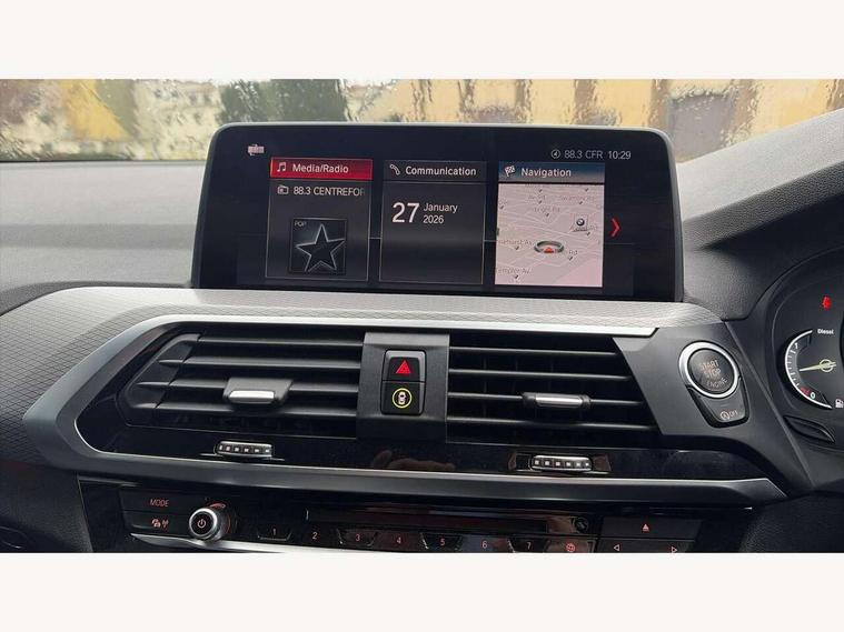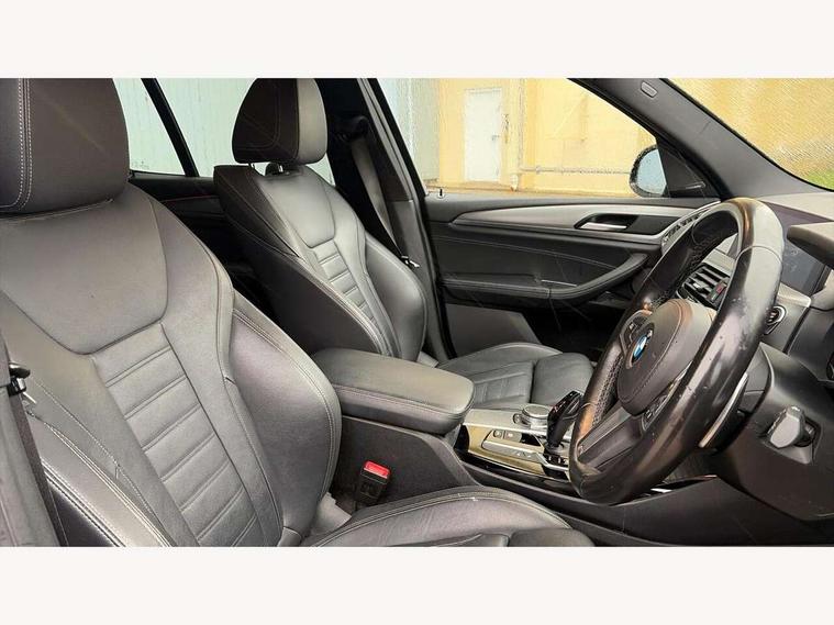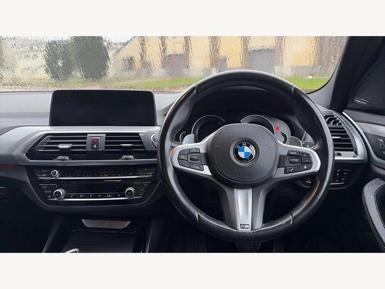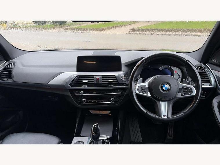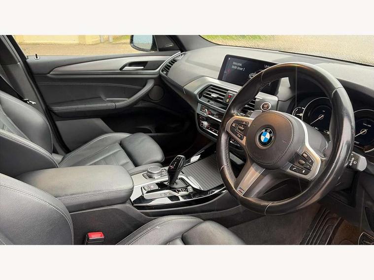 Active Guard incl speed limiting and lane departure functions with auto steering, and front collision warning with brake intervention, Attentiveness assist, Automatic tailgate operation, BMW Live Cockpit Professional sat nav system including 10.25" high resolution display and Intelligent Voice Assistant, BMW Online services, BMW Teleservices, Brake pad wear indicator in front and rear, Check Control warning system for monitoring of lights and door/luggage compartment open warning, Control display - 6.5" colour display screen, Electric Power Steering (EPS) with Servotronic, Front/rear Parking distance control, iDrive Controller with 8 favourite buttons, Lights on warning by audio warning signal when ignition is switched off, Navigation system - BMW Professional multimedia with Hard disc drive (HDD) and 10.25" touch display, Oil sensor for level and grade, warning by check control system, On board computer - average speed+fuel consumption, service interval, clock/date, odometer/trip meter, outside temperature display and ice warning, Optimum shift indicator, Personal Profile - automatic lock when driving away selectable, Real time traffic information, Semi digital instrument cluster, Stop/start system, Automatic transmission with gearshift paddles, Diesel particulate filter, Incorrect fuelling protection, Larger capacity fuel tank, Multi-link rear suspension, Performance Control, Auxiliary socket for external MP3 player, BMW professional radio/CD/MP3, DAB Digital radio, Acoustic glazing, Black finish on B pillars, Body colour door handles, Body colour electric adjust heated aspherical door mirrors, Body colour roof mouldings, Body coloured bumpers, Chrome kidney grille with high gloss black vertical slats, Direction indicator, side repeaters, integrated in exterior mirrors, Dual chrome exhaust, Dynamic brake lights, Exterior mirrors - electrically folding with anti-dazzle, Fingertip control / anti-trap function on electric window, Follow me home headlights, Front and rear bumper system with replaceable deformation elements, Front and rear electric windows, Green tinted heat insulating glass, Heated windscreen washer jets, Height adjustable headlamps, High gloss black door sill finishers, High gloss black shadow line roof rails, High gloss shadowline exterior trim in decorative moulding side frame/recess cover/guide rail/B, C pillars/mirror frame and triangle with mirror base, High level 3rd brake light incorporating LED Technology, Interior rear view electrochromatic mirror with automatic anti dazzle function, LED front fog lights, LED tail lights, Lightweight engineering, M aerodynamic bodystyling, Model designation, Rain sensor including auto headlights activation, Rear wiper, Shark fin antenna, Visible VIN plate, Welcome lighting, Windscreen wipers with adjustable interval, 12V socket in centre console and luggage area, 3 rear headrests, 3 zone automatic air conditioning, 4 lashing points to secure luggage, Ambient lighting, Anthracite headlining, Anthracite Velour floor mats, Driver/passenger sunvisors with ticket holders + illuminated vanity mirrors, Foldable boot floor with storage compartment, Four grab handles integrated in roof lining, Front and rear bottle holders integrated into door trim storage compartments, Front and rear side armrests integrated into door trim, Front centre armrest with storage compartment, Front footwell lights, Front sports seats, Front/rear courtesy lights with soft on/off dimming, Front/rear reading lights, Height adjustable front/rear head restraints, Isofix rear child seat preparation, Leather gear knob, Luggage area underfloor compartment, Luggage compartment lighting, M Sport multifunction leather steering wheel, Parcel shelf removeable and storable under boot floor, Reach and rake adjustable steering column, Rear centre armrest with 2 cupholders, Rear seat centre armrest with two cupholders, Removable / retractable luggage cover, Slope adjustable rear seats, Storage compartment in rear centre console and front/rear door trims, Through loading system with 40/20/40 split folding rear seat, Toolkit located in luggage compartment, Two front cupholders with removable oddments tray/lid, Vernasca leather upholstery, Connected pack professional - X3, ABS/EBD, ADB - Automatic Differential Brake, Automatic Stability Control (ASC), Battery safety cut-off, BMW emergency call, Brake assist, Brake assist function, Brake drying, Brake energy regeneration, Braking pre-tensioning, Child locks on rear doors, Cornering brake control (CBC), Crash Sensor - activation of central locking release, hazard warning light and interior lighting, Deactivation of fuel pump in the event of a crash, Driver and front passenger front and side airbags with passenger deactivation and ITS front and rear head airbags, DSC+, Dynamic brake control, Dynamic Traction Control - DTC, Electromechanical parking brake, Front seat belts warning, Hill descent control, Hill start assist, Seatbelt security check for front seats, Side impact protection, Three point seatbelts to all seats with front and outer rear pyrotechnic belt tensioners and seat belt force limiters, Two tone horn, Tyre pressure monitoring system, Ventilated front and rear disc brakes, Warning triangle and first aid kit, Central locking switch for all doors, fuel filler cap and luggage compartment, Electronic engine immobiliser, Locking wheel nuts, Remote control including two integrated key - one button for open/close all lockable content, windows and separate button for open luggage compartment, Remote control Thatcham category 1 alarm, Start/stop button with Comfort Go keyless engine start and auto Start/stop deactivation button, Low rolling resistance tyres,