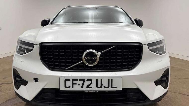 12.3" Progressive Driver Display, 360 degree surround view parking camera with side proximity sensors, 9" centre console portrait touch screen, Adjustable steering wheel force, Bluetooth hands free telephone kit, E-call, Front park assist, Google automatic services - Nav with google maps, apple carplay/android auto, voice recognition with google assistant, Hands free power tailgate, Lane keep assist with driver alert control, Oncoming Lane Mitigation, Rear park assist, Speed limiter, Speed sensitive steering, Wireless/Inductive Mobile Phone Charging, Dynamic chassis, DAB Digital radio, Premium Sound by Harman Kardon, Dolby Pro Logic II Surround Sound, Dirac Unison, 12 speakers/600W and subwoofer, Steering wheel mounted remote controls, Active bending pixel LED headlights with adaptive shadow technology, Active high beam incorporating daytime running lights, Adaptive brake lights with high level LED brake lights, Auto dimming interior mirror, Automatic headlamp levelling, Dark tinted windows for rear door side windows and cargo compartment, Front aluminium tread plates, Front and rear electric windows, Headlight cleaning system, High gloss black front and rear skid plate, High gloss black mesh front grille with high gloss black surround, High gloss black window trim, Home safe and approach lighting, Integrated roof rails in high gloss black, LED front fog lights, Power glass tilt and slide panoramic sunroof with sun curtain, Puddle lights, Rain sensor with automatic windscreen wiper activation, Rear side wing doors, Rear wiper, Roof antenna, Roof spoiler, Visible VIN plate, 12V socket in front tunnel console and luggage compartment, 2-Zone electronic climate control with CleanZone air quality system and pollen filter, 3 seat bench in 2nd row, 3 Spoke tailored steering wheel with chrome trim, 60/40 versatile split folding rear seat, A-pillar parking ticket holder, Ambient front door and instrumental panel lighting, Centre console cupholders and storage, Flexible load floor and grocery bag holder, Floor mats, Front door pocket and front cupholder illumination, Front footwell illumination, Front headrests, Front reading light and theatre lighting, Front seat cushion extensions, Front tunnel pocket, Glovebox bag hook, Heated front seats, Height adjustable passenger seat, Height/reach adjustable steering column, High gloss centre tunnel deco, Illuminated glovebox, Illuminated luggage compartment, Illuminated tailgate, Illuminated vanity mirrors, Integrated waste bin, Isofix attachments on outer rear seats, Load protection net, Multi directional lumbar support, Power driver seat with memory + exterior mirrors memory, Power folding rear headrests, Power passenger seat, Rear armrest / integral cup holders / storage tray, Rear reading and courtesy lights, Single front passenger seat, Underfloor cargo storage, Climate pack without heated front seats - XC40, Driver assist pack - XC40, 3x3 point rear seatbelts, City safety with steering support with Pedestrian + cyclist + front collision warning with full auto brake and rear auto brake, Drivers knee airbag, Dual stage driver/passenger airbags, Electronic parking brake with auto hold, First aid kit, Front and outer rear seatbelt reminder and pretensioners, Front seats SIPS airbags, Hill descent control, Hill start assist, Inflatable curtain, Passenger airbag cut-off device, Power child locks on rear doors, Road sign information display, Run off Road Mitigation, Run off Road Protection, SIPS (Side Impact Protection System), Slippery road and hazard light alert, Stability and Traction Control with Spin control, Engine Drag Control and Corner Traction Control, Tyre pressure monitoring system, Vehicle deceleration control with Anti-lock Brake System, Electronic Brake Distribution and Emergency Brake Assist, Warning triangle, WHIPS whiplash protection system - front, Anti-theft alarm including immobiliser/volume sensor + level sensor, Key integrated remote control central locking + fuel flap with deadlocking system and auto open/close power windows, Keyless drive includes keyless entry and keyless start, Locking wheel nuts,