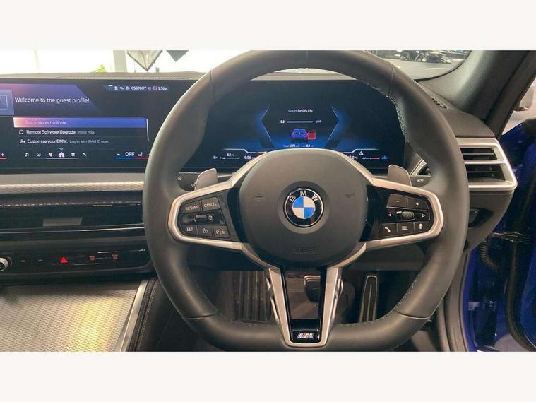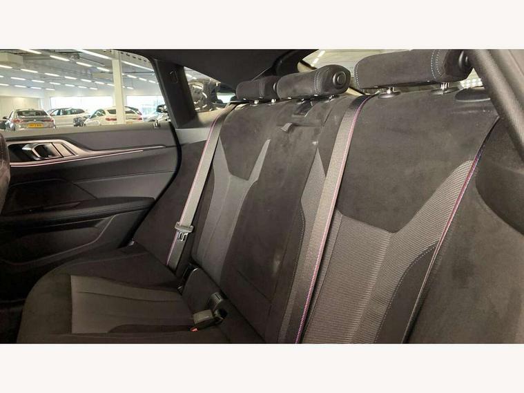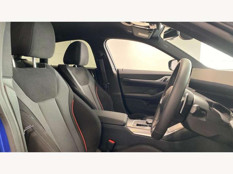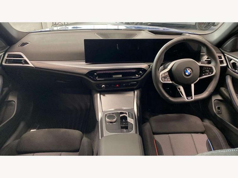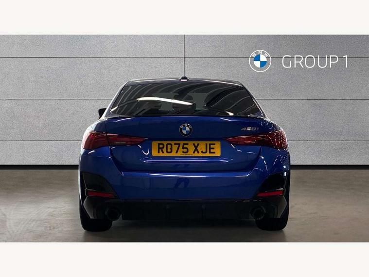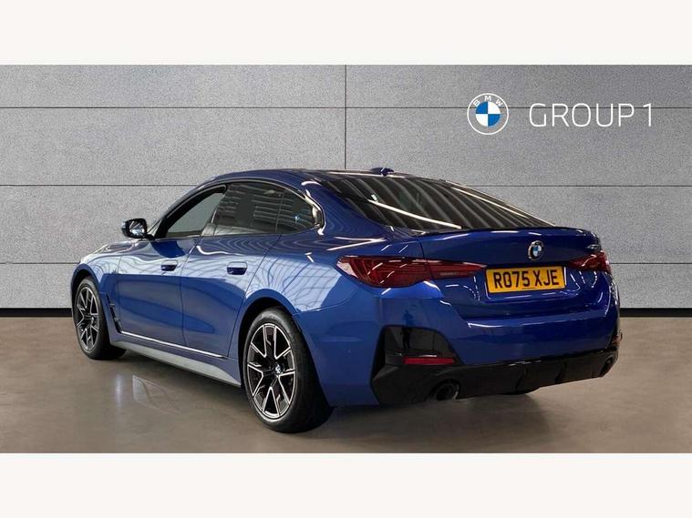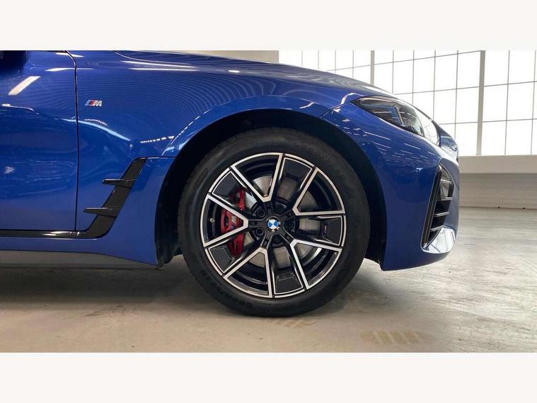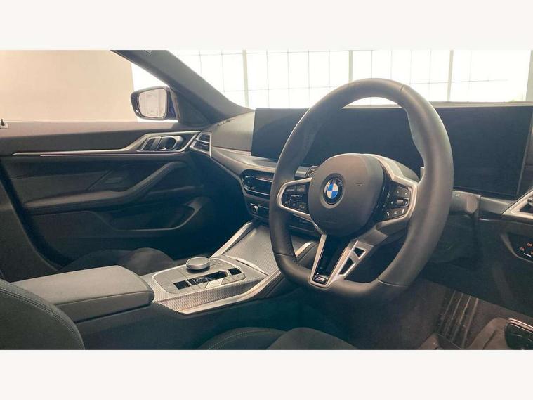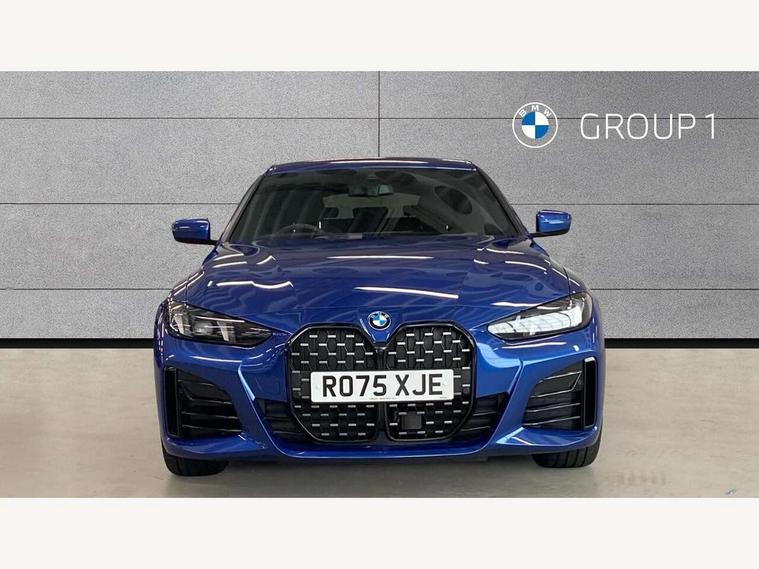 Active guard plus, Attentiveness assist, Automatic start/stop function, BMW ConnectedDrive online services, BMW iDrive controller on centre console, BMW service history, BMW Teleservices, Brake pad wear indicator in front and rear, Check Control warning system for monitoring of lights and door/luggage compartment open warning, Condition based service, Electric bootlid, Electric power steering with Servotronic steering optimised at all speed ranges, Instrument cluster with speedometer with mph readout, tachometer, fuel gauge and oil temperature gauge, Integrated owners handbook, Language version English, Oil sensor for level and grade, On board computer - average speed, fuel consumption, outside temp display with acoustic warning, clock/date, service interval, odometer/trip meter, Run flat indicator, Shifting point display, Start/stop button in black, Variable sport steering, 8 speed automatic steptronic transmission with gearshift paddles, Balanced 50/50 weight distribution, Double joint spring strut front axle, Drive experience mode switch - Comfort mode, ECO PRO mode and SPORT mode, Electronic differential lock control (EDLC), Low centre of gravity, Petrol Particulate Filter, Stroke dependent dampers, DAB tuner, Personal eSim, Acoustic glazing, Automatic headlight beam throw control with load dependent regulating reaction, dynamic compensation of braking dive and acceleration squat, Automatic windscreen wipers and automatic headlight, BMW radiator grille with mesh grille, end face of the nuggets in aluminium matt and frame in chrome matt, Body colour fuel filler flap, Body colour roof fin, Bonnet and tailgate badge, Electric folding wing mirrors - Driver side electrochromic, auto anti dazzle function & front passenger side auto parking function without anti dazzle, Electric windows - front and rear, with open/close fingertip control, anti trap facility and comfort closing function all round, Follow me home headlights, Front and rear bumper system, Front apron plastic in body colour, Green tinted heat protection glazing, Illuminated bow type door handles in body colour drivers side with door lock, Interior rear view electrochromatic mirror with automatic anti dazzle function, LED 3rd brake light, LED daytime running lights, LED front fog lights, LED front indicators, Licence plate panel integrated into front bumper and tailgate, Low and high beam headlights in Bi-LED, M designation on front side panels, left and right, M Sport entry door sill strips, One piece front bumper cover including towing eye cover in body colour, Preparation for high beam assistant, Rear side wing doors, Rear wiper, Reversing light, Side frame trim strip black matt, Two part LED tailights in L-shape with components in smoked glass, brake light, LED turn indicator and rear fog light, Visible exhaust tailpipe finisher, Visible VIN plate, Welcome lights in interior and door handle area, Widened track and increased camber values for max transverse dynamics, agility and steering precision, Windscreen washer jets concealed underneath bonnet, 12V power socket in front centre console, 2 front cupholder in centre console with clamping elements and matt black inlay, 3 rear headrests, 3 seat bench in 2nd row, 3 spoke flat bottom M sport leather multifunction steering wheel, 3 zone automatic air conditioning, 4 pieces lashing eyelets in luggage compartment, 40:20:40 split folding rear seat, folding head restraint of centre seat and rear centre armrest with two cupholders, Anthracite headlining, Armrest integrated in front and rear door trim + front centre console armrest, Battery in luggage compartment, BMW ID, Extended storage - 2x Dual USB Type C 3A charging function in the rear centre console for the rear, Extended storage - Luggage compartment partition net on left side trim panel, Bag hook on both sides of the luggage compartment, Extended storage - Multifunction hook, Extended storage - Trailer tow hitch button in black (extendable trailer tow hitch) on the right hand side, Four grab handles integrated in roof lining, Front and rear door pockets, Front footwell lights, Heated driver and front passenger seats, Height adjustable front headrests, Illuminated armrest storage compartment, Illuminated glove compartment with separate small compartment, Interior light and front reading light, Luggage compartment light, Single front passenger seat, Steering column adjustment - Infinitely variable in height and length, Sunvisors with illuminated vanity mirrors and ticket pocket, Through load system, Toolkit located in luggage compartment, Velour front floor mats, Ambient lighting pack - 4 Series, BMW Live Cockpit Plus pack - 4 Series, Connected professional package - 4 Series, M High gloss shadowline exterior trim pack - 4 Series, M sport exterior styling pack - 4 Series, Park assist pack - 4 Series, 3 point seatbelts on all seats, BMW emergency call, Brake energy regeneration, Braking pre-tensioning, Child locks, Child seat ISOFIX attachment for the two outer rear seats, Crash sensor activating of airbags, Unlocking doors, hazard warning lights, interior light, safety battery terminal, Driver and front passenger side airbags, integrated in the door side seat backrest bolsters for all seat variants, Driver/Front Passenger airbags, Dry braking, Dynamic brake control, Dynamic stability control + (DSC+) - Anti-lock Braking System (ABS) with brake assist and cornering brake control + Automatic Stability Control (ASC), Dynamic Traction Control - DTC, Electric parking brake including automatic hold function and automatic release of the parking brake when driving off, Front and rear ventilated brake disc, Front passenger manual airbag deactivation, Head airbags for all 4 outer seats, Hill start assistant, Seat belt security check for driver and front passenger, Seat belt with belt stopper, pyrotechnic belt tensioners and belt force limiters, Seat occupancy detection for driver and passenger side, Side impact protection, Tyre pressure 