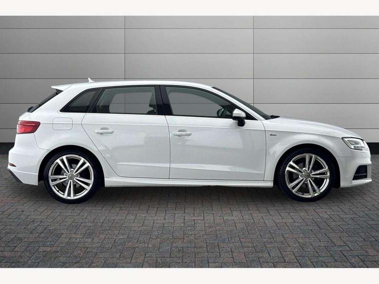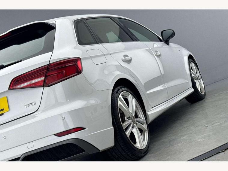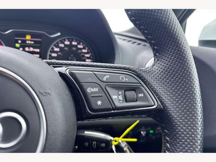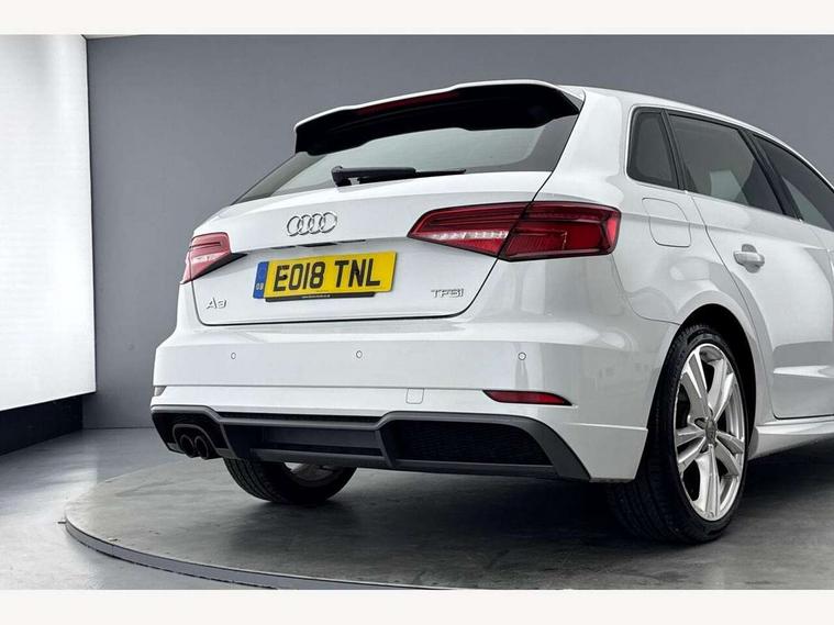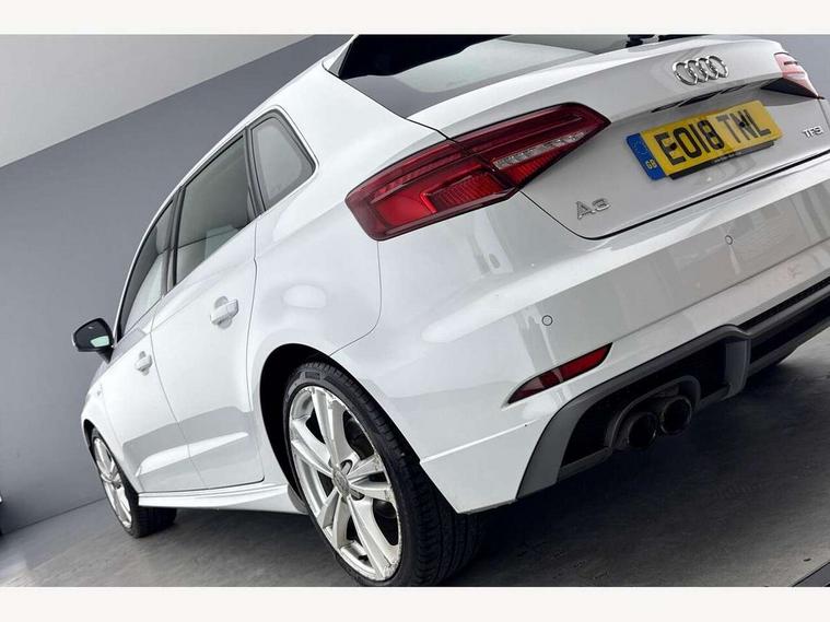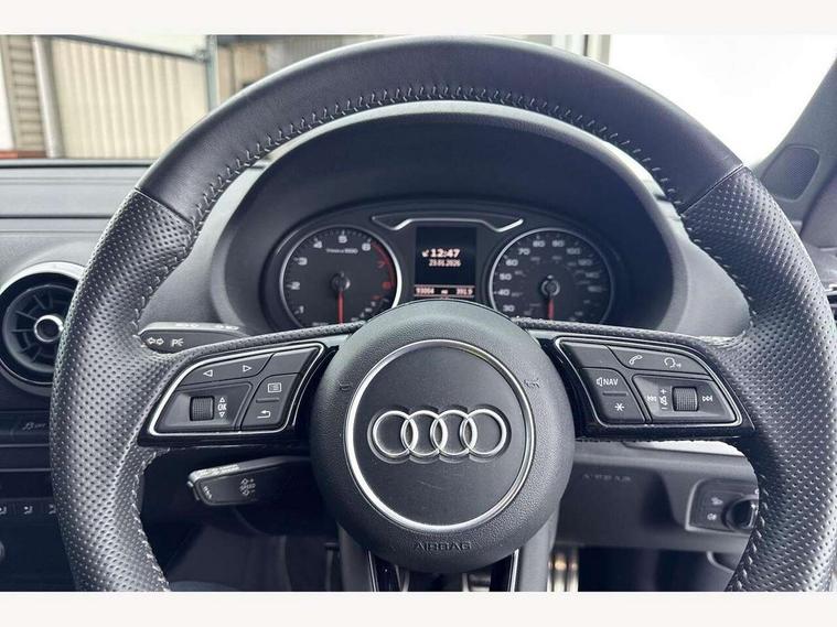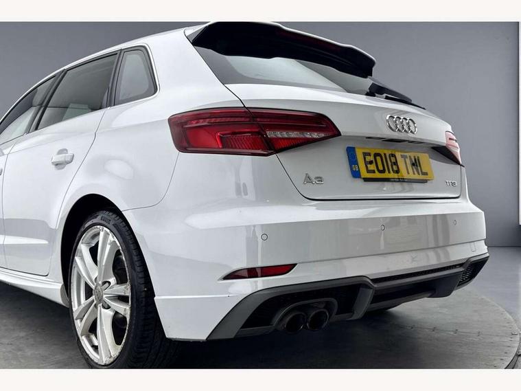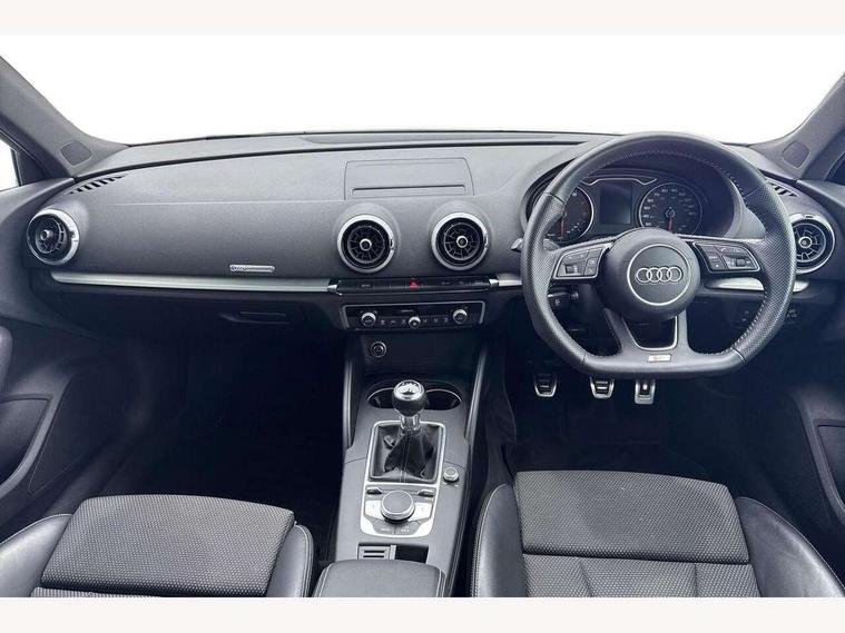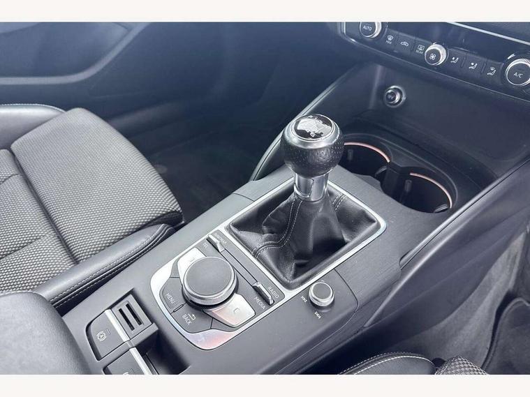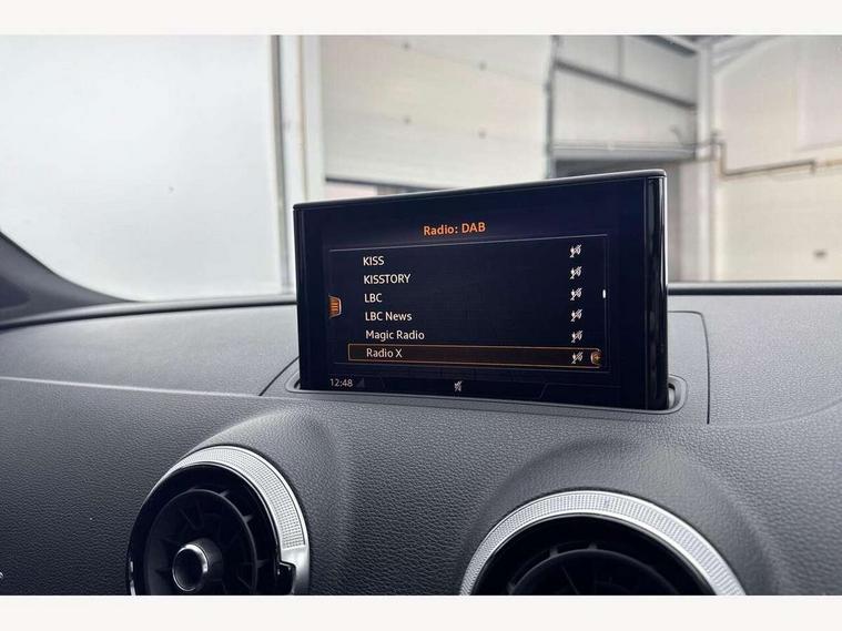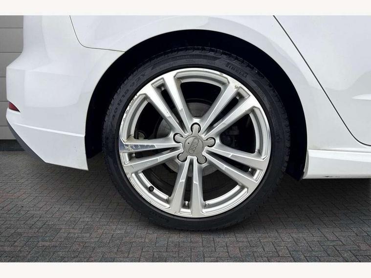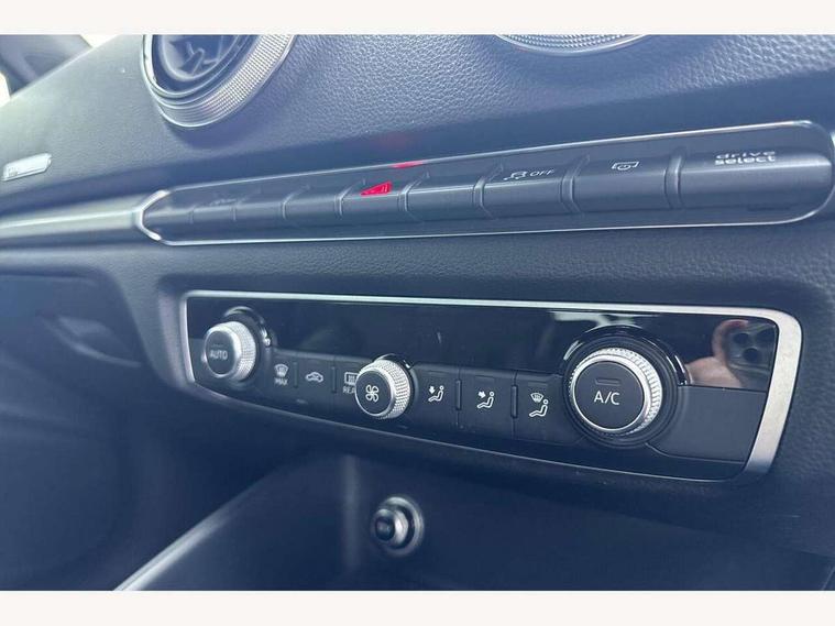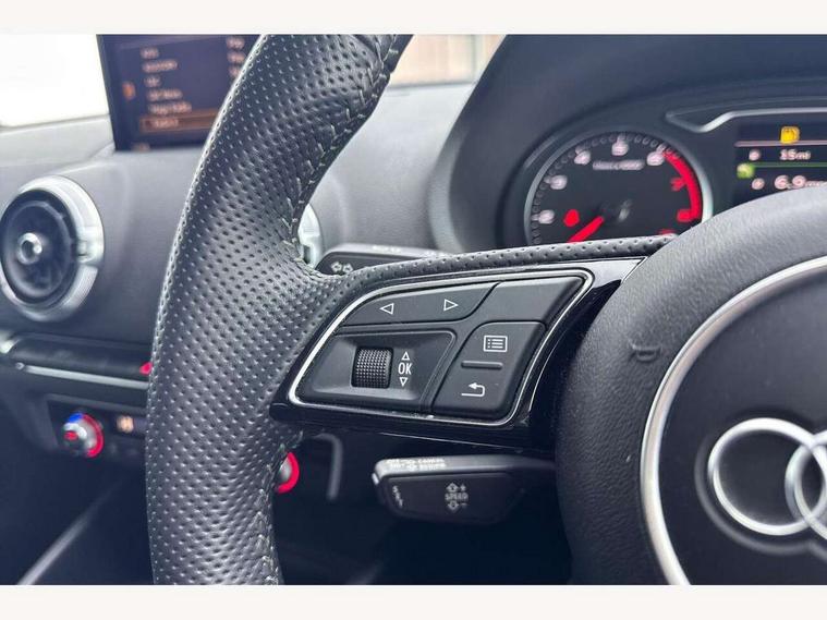 Audi connect, Audi drive select, Audi smartphone interface, Colour driver's information system display, Electro-mechanical PAS, HDD satellite navigation system radio single CD/DVD player MMI control system, Mobile telephone preparation - bluetooth interface, Service interval indicator, Speed limit display, Voice control system, 2 USB ports, Audi music interface, Auxiliary input socket, CD player, DAB Digital radio, MMI radio plus with 7" colour MMI screen and MMI controller, Aluminium window trim, Auto dimming rear view mirror with light and rain sensors, Body colour bumpers, Body colour door mirrors with integral indicators, Body colour roof spoiler, Chrome exhaust tailpipes, Electric front windows, Electric operated/heated door mirrors, Electric rear windows, Heated windscreen washer jets, LED daytime running lights, Matt black radiator grille, Rear wiper, S Line body styling, Sport specific side air inlet grille and diffuser insert, 3 adjustable rear headrests, 3 spoke flat bottomed multi-function leather steering wheel, 4 lashing points to secure luggage, Adjustable front armrest, Black cloth headlining, Dual zone electronic climate control, Front and rear interior lights with delay, Front passenger seat isofix location point, Front sports seats, Front/rear floor mats, Height/depth adjustable steering column, Illuminated glovebox, ISOFIX child seat preparation+airbag deactivation, Jack and tool kit, Stainless steel pedals, Storage compartment in centre console, Storage compartment under front seats, Storage compartments in doors, LED interior light pack - A3/RS3, Non smoking pack - A3, Storage and luggage pack - A3/RS3, 3 point seatbelts on all seats, ABS/EBD, Active bonnet, Active front headrests, ASR, Curtain airbags, Driver and passenger side airbags, Driver/Front Passenger airbags, Drivers knee airbag, EDL, Electromechanical parking brake, ESC - Electronic Stability Control + traction control, Front passenger airbag deactivation, Manual rear child locks, Multi-Collision braking, Seatbelt warning, Tyre pressure warning, Warning triangle and first aid kit, Anti theft alarm, Anti-theft wheel bolts, Remote control central locking, Thatcham category 1 alarm + immobiliser, Aluminium air vent surrounds, Aluminium trim elements, Matt brushed aluminium inlays, Space saver spare wheel,