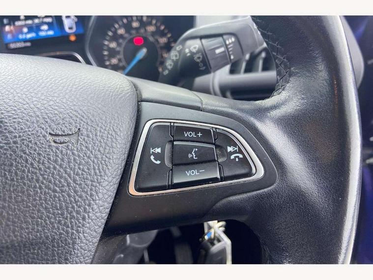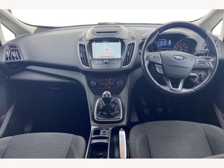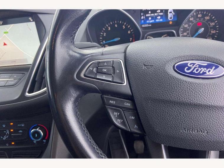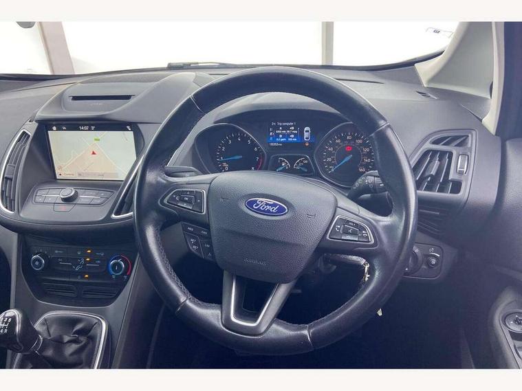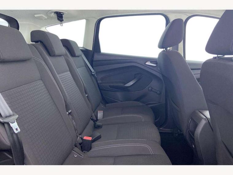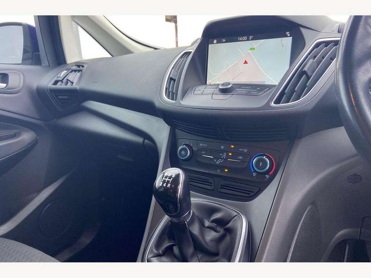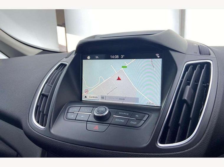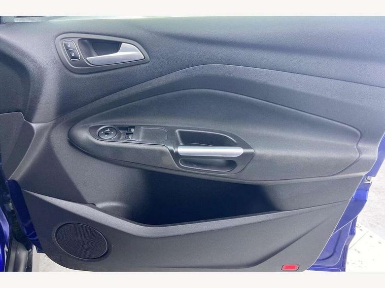 Cruise control + speed limiter, Driver's information system, Easy fuel capless refuelling system, Electric power steering, Ford SYNC Bluetooth connection with voice control and USB port, Multi function display colour screen, SYNC Emergency Assistance, Trip computer, DAB radio/CD player, Steering wheel mounted audio controls, Body colour bumpers with black rubbing strip, Body colour door handles, Body colour door mirrors with integral indicators, Chrome beltline trim, Chrome finish on upper door line, Electric front windows + drivers one touch, Electric heated door mirrors, Front fog lamps, Intermittent rear wash/wipe, Quickclear heated windscreen, 12V accessory sockets - front and rear, Air conditioning, Auxiliary power socket, Centre armrest with storage box, Cloth upholstery, Courtesy light in luggage compartment, Driver seat lumbar adjustment, Driver's seat manual height adjust, Front floor mats, Front/rear courtesy lights, Fully adjustable front headrests, Isofix child seat attachment, Leather gearknob, Premium centre console, Rake/reach adjustable steering wheel, Rear parcel shelf, Satin chrome interior door handles, Sports style front seats, Three height adjustable rear head restraints, Versatile split folding rear seat - 40/20/40, 3x3 point rear seatbelts, ABS + traction control, Driver and passenger airbags, Driver and passenger side airbags, Electronic brake force distribution, Emergency brake assist, ESP, Fasten seatbelt reminder, Front and rear curtain airbags, Height adjustable front seatbelts, Hill start assist, Intelligent Protection System (IPS), Tyre pressure monitoring system, Anti-theft immobiliser, Locking wheel nuts, MyKey system, Remote central double locking, Thatcham 1 volume sensing alarm, Satin black trim, 16" 5x2 spoke alloy wheels, Mini steel spare wheel,