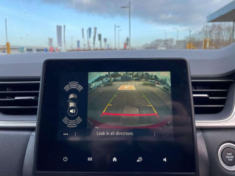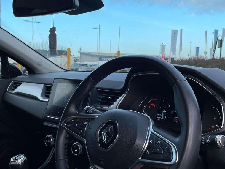 7" TFT Driver information display, Cruise control + speed limiter, eCall emergency call system, Eco mode, Front and rear parking sensors with rear view camera, Gear change indicator, Lane departure warning system, Lane keep assist, Multisense with 3 driving modes + 8 ambient lighting colours, Traffic sign recognition with over speed prevention, Trip computer, Variable assistance power steering, EasyLink 7" touchscreen with navigation, bluetooth, DAB radio, USB ports, compatible with Apple carplay/Android auto, Auto dimming rear view mirror, Automatic front wipers with rain sensors, Automatic headlights, Automatic high beam - AHB, Black side door protection with chrome effect, Body colour door handles, Body coloured bumpers, C Shaped LED front and rear lighting signatures with 3D effect on the rear lights, Chrome around front air deflectors, on front wing deco element and window lining, Drivers one touch window with anti-pinch feature, Electric adjustable/heated/folding door mirrors, Electric rear windows, Extra tinted glass in rear windows and tailgate, Front grille with chrome upper trim, Full LED headlights, Gloss black side door protection with chrome effect, Grey front and rear skid plate, LED front fog lights, LED rear fog light, Longitudinal roof bars, Rear wiper, Variable speed on front windscreen wipers, 12V Accessory socket, 3 rear headrests, 60/40 split and fixed base rear seat bench, Automatic climate control with one touch demist function, Centre console storage tray, Front head restraints, Glovebox, Heating system with pollen filter, Height adjustable driver's seat, Height adjustable passenger seat, Height/reach adjust steering wheel, ISOFIX child seat fixing points on rear outermost seats, LED front roof lights, Middle console with armrest and storage, Rear air vents, Sliding rear bench, Synthetic leather steering wheel, Synthetic leather/cloth upholstery, 3 rear seatbelts, ABS+EBA, AEBS, Distance warning alert, Driver and front passenger, side, head and curtain airbags, Driver height adjustable seat belt, Electric parking brake with auto hold function, Electronic stability control, Front and rear no seatbelt warning sound, Front dash warning indicator in case of heavy braking, Front driver and passenger side airbag deactivation, Hill start assist, Rear door and window child locking function for rear door, Tyre pressure warning light, Anti drill door locks and locking fuel cap, Central door locking, Deadlocking system, Hands free keycard with push button and start/stop function, RAID (Renault Anti-Intruder Device) automatic door locking, Black soft touch dashboard, 18" Pasadena diamond cut alloy wheels with grey inserts,