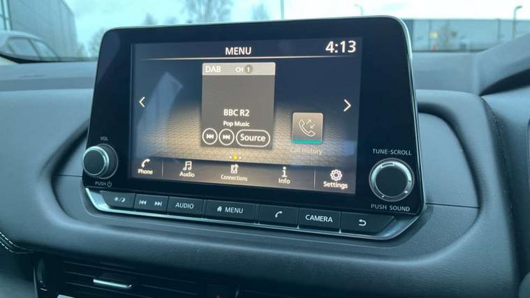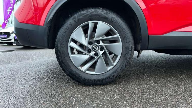 7" High definition full colour TFT screen combimeter, Android auto/Apple CarPlay (Wired), Blind spot warning, Drive modes (sport, normal, eco), Electric speed sensitive power steering, Emergency and breakdown call, Idle stop/start system, Intelligent Cruise control (ICC), Intelligent driver alert system, Intelligent forward collision warning, Intelligent lane intervention, Lane departure prevention, Lane departure warning system, Maximum speed limiter, Nissan connect 8" touchscreen infotainment system, Push button starter, Rear cross traffic alert, Rear parking sensors, Rear view camera, Traffic sign recognition with legal speed adjustment, Trip computer, 6 speakers, AM/FM audio system with DAB, Bluetooth audio streaming, Front USB connections (Type-A and Type-C), Auto dimming rear view mirror, Auto rear wiper when reversing, Automatic hazard signal with emergency stop signal, Body colour mirror caps, Body coloured door handles, Bodyside mouldings, Chrome side window finisher, Door handle with button, Electric auto folding door mirrors, Electrically adjustable and heated door mirrors with LED turn indicator, Follow me home headlights, High beam assist, Intelligent auto headlights, LED daytime running lights, LED Headlights, LED rear lights, One touch front and rear electric windows with remote opening and closing, Partially body coloured bumpers, Rear reversing light (bulb lighting), Rear roof spoiler, Rear side wing doors, Shark fin antenna, Splash free rain sensing wipers, Three blink turn signal, 12v power socket in dashboard and luggage, 2x Rear coat hooks, 3 bench rear seats in 2nd row, 3 rear headrests, 4 folding assist grip, 6-way manually adjustable driver's seat, 60/40 split folding rear seat bench, Centre console storage tray, Chrome interior door handles, Cloth monoform upholstery, Driver and front passenger sunvisors with illuminated vanity mirrors, Driver seat back pocket, Dual zone automatic climate control with pollen filter, Electrically adjustable lumbar support for driver, Front and rear door storage, Front centre console and armrest, Front cupholders x 2, Front door with bottle holders, Glovebox with light, Hard trunk cover, Height adjustable driver's seat, Height adjustable front headrests, Height adjustable passenger seat, Leather steering wheel, Luggage space lighting, Manually adjustable passenger (slide recline + lifter), Multifunction steering wheel, Passenger seat back pocket, Rear armrest with 2 cupholders, Rear door bottle holders, Single front passenger seat, Steering wheel gearshift paddles, Steering wheel switches, Sunglasses holder, Tilt/telescopic adjustable steering wheel, Two rear isofix child seat anchorage points with top tether, 3x3 point rear seatbelt pretensioners + load limiters, ABS with EBD and brake assist, Active brake limited slip, Auto hold function, Child locks on rear doors, Curtain and front side, far side airbags, Driver and passenger airbags, Driver, passenger and 2nd row rear seat belt reminder, Electronic parking brake, Front seatbelt pretensioners + load limiters, Height adjustable front seatbelts, Hill start assist, Intelligent blind spot intervention, Intelligent front emergency braking with pedestrian, cyclist recognition and junction assist, Intelligent rear automatic braking, Tyre pressure monitoring system, Vehicle dynamic control, Capless fuel filler, Engine immobiliser, Intelligent Key, Remote central door locking with deadlocking, Thatcham Cat.1 alarm, Interior instrumental panel A finisher, 17" Alloy wheels, Tyre puncture repair kit,