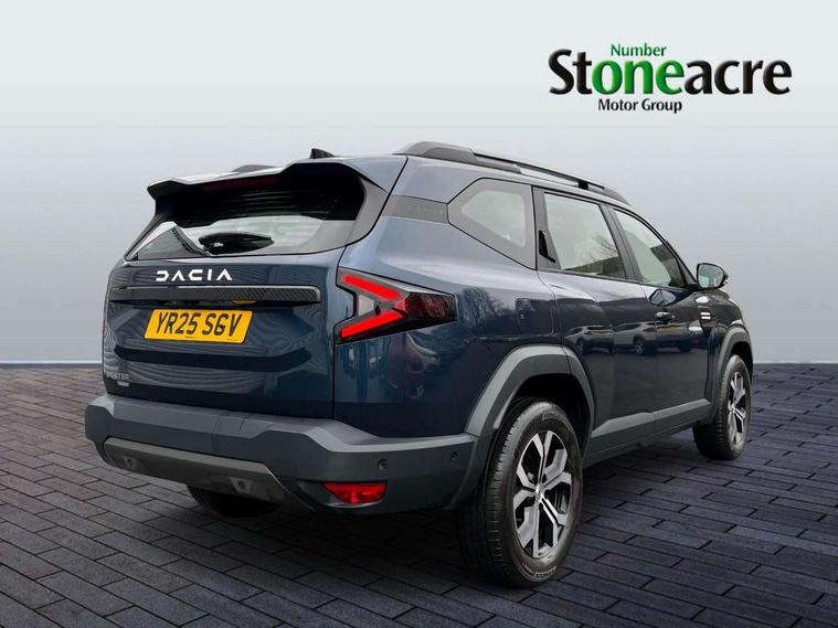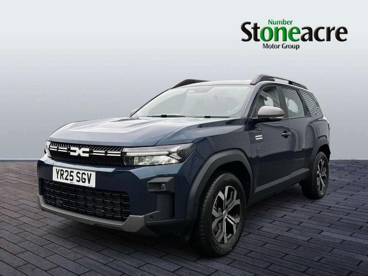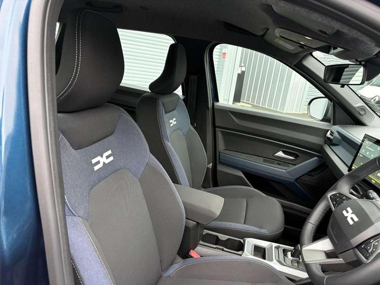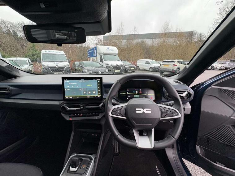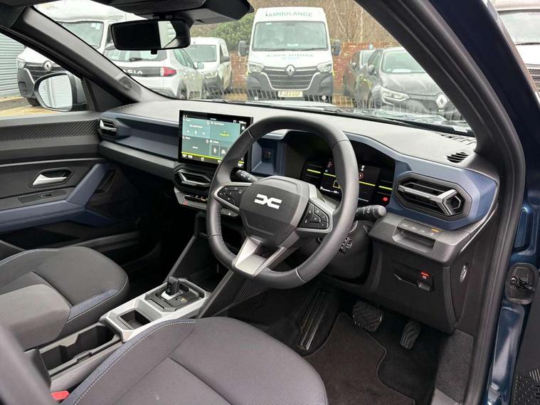 4 Native youclip fixation points, 7" digital driver display, ADAS Disconnect (advance driving systems disconnect) - My Safety, Apple CarPlay and Android Auto, Blind spot warning, Cruise control and speed limiter, Driver attention warning, E Save, eCall emergency system, Eco mode, Electric power assisted steering, Emergency Stop Signal (ESS), Energy smart management, Event data recoder, Forward collision warning, Front and rear parking sensors, Lane departure warning with lane keep assist, Multi view camera, Rescue code, Stop/start system, Traffic sign recognition with speed alert/Intelligent speed assist (ISA), 10.1" media display with DAB, smartphone replication, bluetooth, connected services, 4 speakers, plus access to apps vis app store, Auto lighting system, Automatic folding mirrors, Automatic wipers, Black with white trim radiator grille, Body coloured door handles, Body coloured roof, ECO LED Front foglights, Electric adjustable/heated door mirrors, Electric front windows with driver's one touch operation, Electric rear windows, Front and rear body coloured bumpers, Grey longitudinal roof bars, Grey tinted exterior side mirrors, Grey Y-Shaped air vents inserts, Heated rear windows with wash wipe, High level third rear brake light, LED automatic daytime running lights, Rain sensor, Rear side wing doors, Shark fin antenna, Side protection, Tinted acoustic windshield, Tinted rear windows, Tinted windows, Turning signal integrated in door mirrors, Wheel arch protection and snorkel in starkle, White rear Dacia lettering, Y-shaped LED lighting signature, 12 V socket + 2 USB Type c with blacklight front + rear, 3 rear height adjustable headrests, 3 seat bench in 2nd row, 4 way adjustable front passenger seat, 40/20/40 rear bench with an easy fold function, 6 way adjustable driver seat, Dual zone automatic air conditioning, Fabric upholstery, False floor, Front head restraints, Gear shift indicator, Grey gear lever deco part, Height adjustable front headrests, Height and depth adjustable steering wheel, Isofix points for child seats in both outer rear seats, Mid centre console micro cloud with soft feel armrest, Rear 12v plug in boot, Removable parcel shelf, Single front passenger seat, Sunvisor for driver and passenger with mirror/ticket holder and light, Synthetic leather steering wheel, White steering wheel logo, 3x3 point rear seatbelts, 6 airbags - front and side driver and passengers including curtain airbags, ABS and Emergency brake assist, Advanced emergency braking system, Alcohol imoboliser predisposal, Child locks on rear doors, Door open visual and audible warning, Driver and passenger seatbelt warning, Electric parking brake, Front seatbelt pretensioners, Height adjustable front seatbelts, Hill start assist, Protective rear brake disc, Side impact protection, Tyre pressure monitor, Vehicle dynamic control, Automatic central locking, Central door locking, Engine immobiliser, Keyless entry, Cast forming denim dashboard decopart, Cast forming denim door deco part, 17" Diamond cut tergan alloy wheels,
