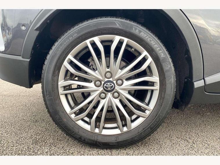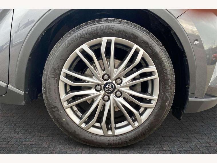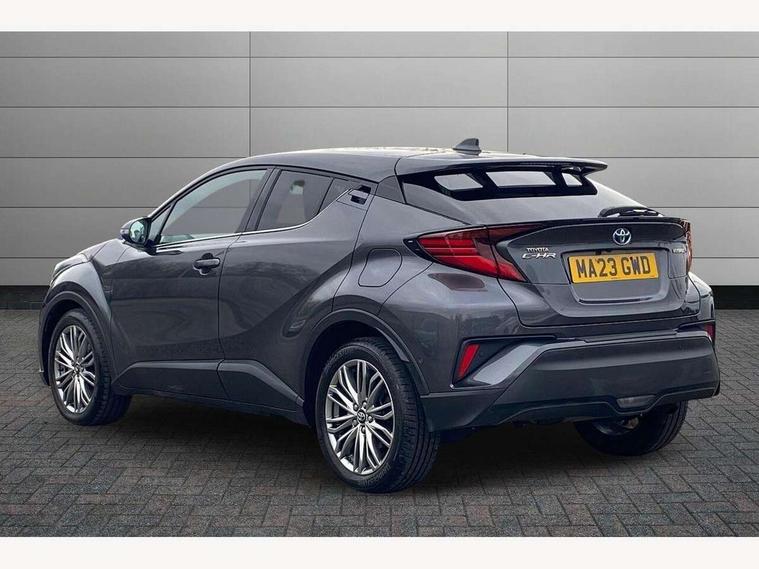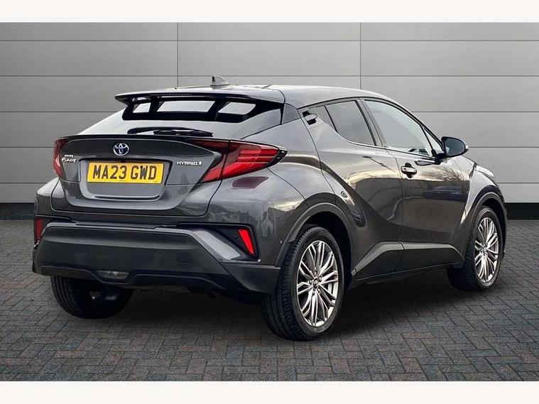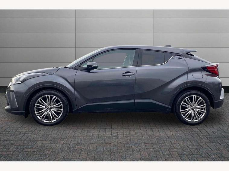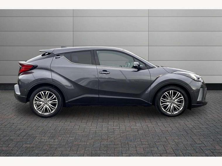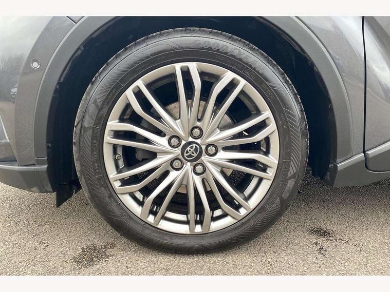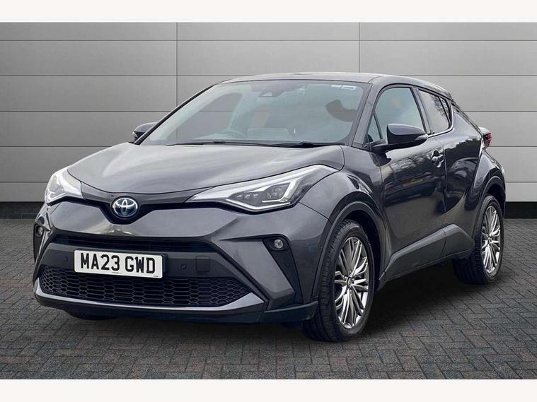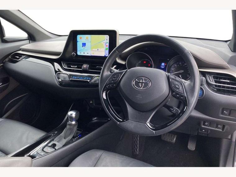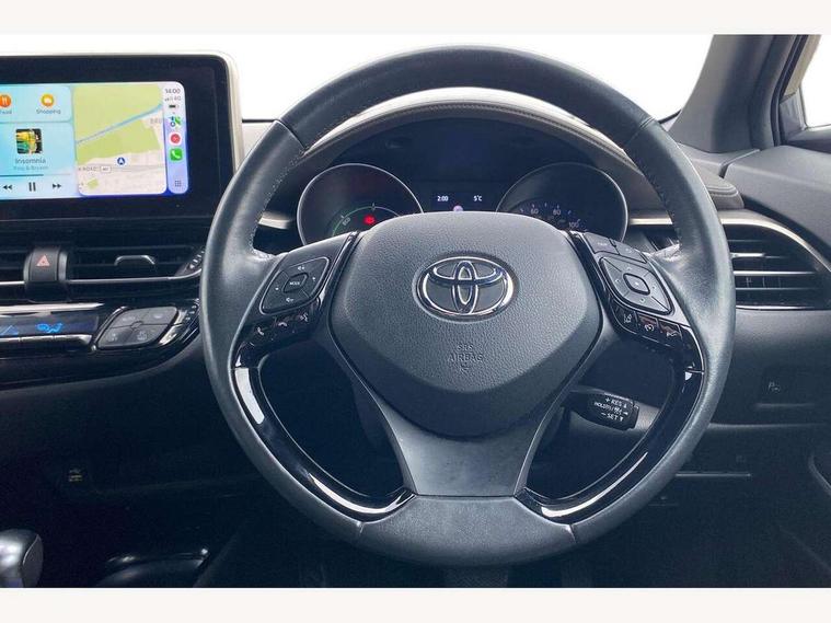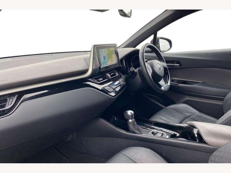 4.2" coloured TFT screen for multi-information display, Adaptive cruise control, Apple car play and Android auto, Bluetooth connectivity, E-call, Electric power steering, Hybrid system indicator, Lane departure alert with steering control, Lane trace assist, Push button tailgate release, Remote boot door release in cabin, Remote boot door release in key, Reversing camera, Road sign assist - RSA, Simple Intelligent parking assist, Smart voice assist, Touch 2 Go navigation system, Trip computer, Voice recognition, Wireless smartphone integration, Vehicle Stability Control (VSC), 6 speakers, AM/FM radio, DAB Radio (Digital Audio Broadcasting), Toyota touch 2 multimedia system with 8" display, USB connector, Wi-fi connectivity, Adaptive front light system, Adaptive LED Headlights, Anti-jam protection on power windows, Auto high beam, Auto up and down function on all power windows, Automatic headlight levelling, Automatic headlights, Automatic headlights cut-off, Black and body coloured rear bumper, Black lower front grille, Black upper front grille, Body colour door handles, Body colour door mirrors, Body colour front spoiler lip, Body coloured front bumper, Boot door release with push button, Electric heated door mirrors, Follow me home headlights, Front and rear power windows, Headlight cut off reminder, Honeycomb lower front grille, LED daytime running lights, LED fog lights, LED front light guide, LED High mounted stop light, LED rear brake lights, LED rear combination lights, Noise reduction layer on front windows and windscreen, Power adjustable door mirrors, Privacy glass, Rain sensor, Rear sequential indicators, Rear side wing doors, Rear spoiler, Rear tailgate, Rear window defogger, Rear window wiper, Shark fin antenna, UV-filter on driver and passenger windows, UV-filter on rear windows, Variable front intermittent wipers, 12v power outlet - front, 3 rear headrests, 3 seat bench in 2nd row, 3 spoke leather steering wheel, 60/40 split folding 2nd row rear seats, Adjustable rear headrests, Adjustable speed limiter switch on steering wheel, Assist grips front and centre pillar, Audio and telephone switches on steering wheel, Black front door assist grips, Blue ambient lighting on front cup holders, Blue ambient lighting on front doors, Boot light, Chrome interior door handles, Driver and front passenger personal light, Driver and front passenger Whiplash Injury Lessening seats, Driver and passenger seatback pockets, Dual zone automatic air conditioning, Floor mats, Front cupholders, Front head restraints, Front sports seats, Glovebox with internal light, Hard tonneau cover, Heated driver and front passenger seats, Heated steering wheel, Hooks for luggage holding net, Humidifying Nanoe air purifier, Illuminated entry system, Isofix attachments on outer rear seats, Leather gearshift, Light on driver sun visor, Light on passenger sun visor, Manual telescopic steering wheel, Manual tilt steering wheel, Microphone on front personal light, Mirror on driver sun visor, Mirror on passenger sun visor, Multimedia switches on steering wheel, Pollen filter, Power adjustable lumbar support on driver seat, Power tilting cushion on driver seat, Shopping bag hooks, Single front passenger seat, Slow opening on lower glovebox, Voice recognition switch on steering wheel, Leather pack - C-HR, Tech with parking sensor pack - C-HR, 16 Disk front wheel brake, 3x3 point rear seatbelts, ABS+EBD+Brake assist, Electronic parking brake, Front and rear seatbelt reminder, Front passenger airbag on/off switch, Hill start assist control (HAC), Pre collision system with pedestrian detection, Pre-tensioners and force limiters, Rear door child safety locks, SRS Airbags - Driver + Front passenger, front side, front and rear curtain and driver's knee airbags, Toyota safety sense, Tyre pressure monitoring system, Tyre pressure warning system, Acoustic vehicle alert system (AVAS), Glass-breaking alarm sensors, Immobiliser, Intrusion alarm, Intrusion sensor, Motion sensor alarm, Power door locks, Power passenger window lock, Remote central locking, Black lower dashboard, Dark brown upper dashboard, Piano black console, Silver deco line on upper dashboard, Tyre repair kit,