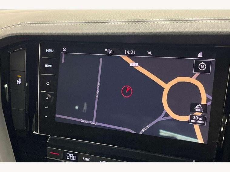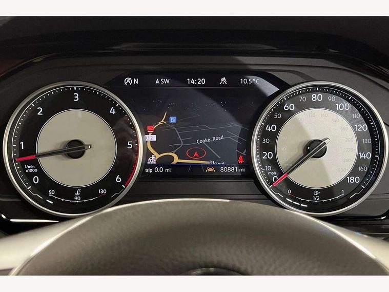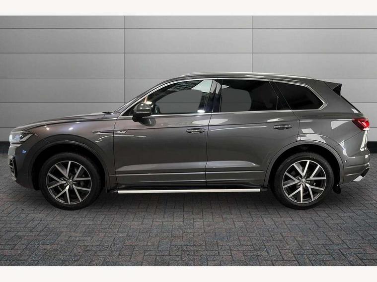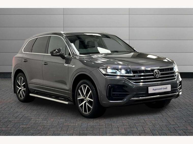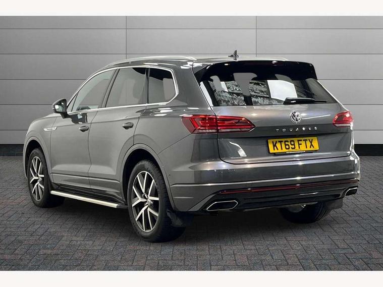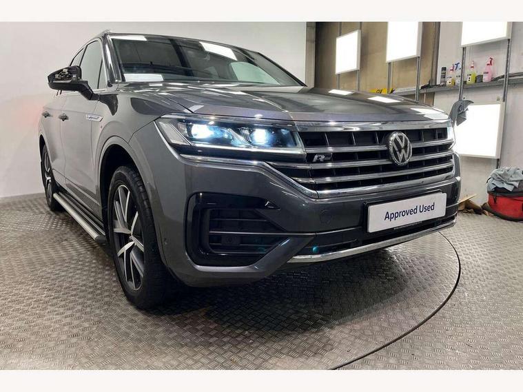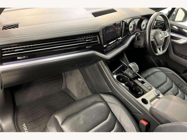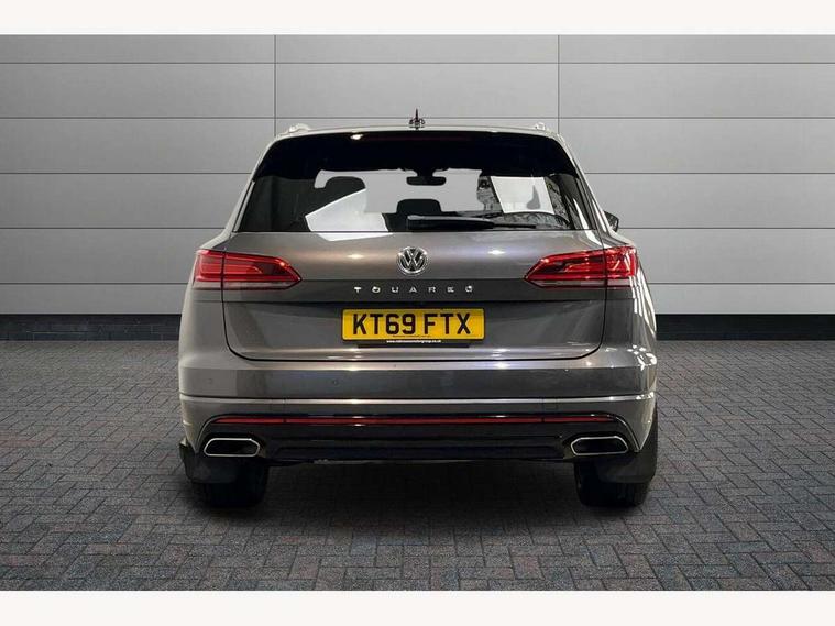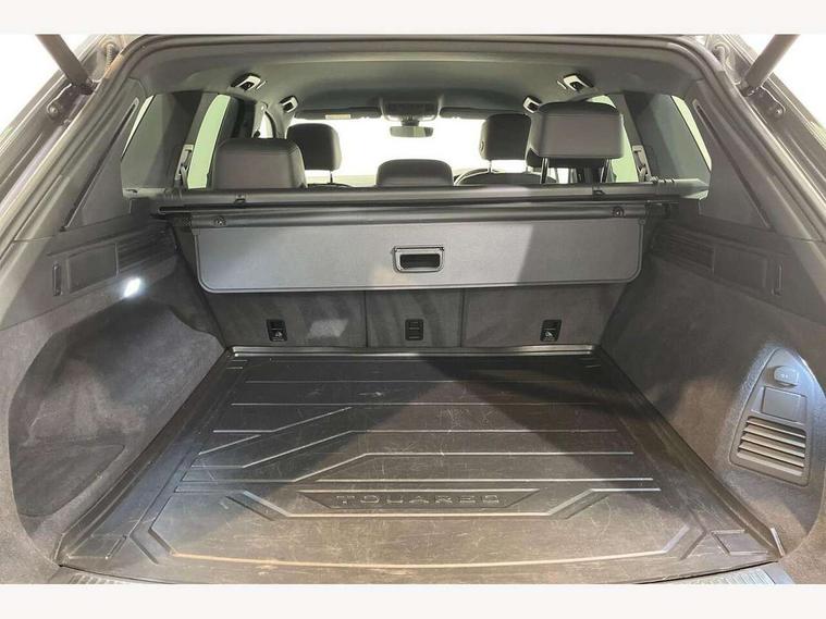 2D/3D map view, ACC - Adaptive cruise control with front assist, forward collision warning, distance monitoring, city emergency brake and speed limiter, Apple car play/Android Auto, Audible and visual fatigue detection system, Bluetooth hands free telephone connection, Car information display, Drive select with Damper control, Driver alert system, Dusk sensor, Dynamic road sign display camera controlled system with visual warning for traffic and road signs, eCall emergency system, Instrument cluster, MirrorLink, Multifunction camera with lane assist, Multifunction computer premium with 7" colour display, One touch indicators with repeat function, Park assist with rear view camera, Service interval indicator, Speed sensitive power steering, Start/stop system with regenerative braking, Tailgate power latch, Think blue trainer driver tips and journey analysis, Traffic sign recognition, Voice control system, Wireless Smartphone charger, Torsen limited slip differential, 4 USB ports, DAB Digital radio, Dynamic navigation based on TMC+, Gesture control for infotainment system, Multi device interface (MDI) with USB connection, Music playback - MP3, WMA and AAC files, SD card slot, Simultaneous pairing of 2 compatible mobile devices, SMS functionality - read, compose and send SMS messages using touch-screen display, Title and cover art display, Volkswagen media control, Adaptive low beam for urban and motorway use, Auto dimming rear view mirror, Automatic coming/leaving home lighting function, Automatic headlights, Body colour door handles, Body colour door mirrors with integral indicators, Body coloured wheel arches, C signature gloss black front air intake, Chrome trimmed radiator grille and air intake, Chrome trimmed side windows, Chromed tailpipe on the left and right integrated in the bumper with trapezoid design, Dynamic headlight range control, Electrically power adjustable, heated, folding, auto dimming, front passenger exterior door mirror lowering function, Front and rear electric windows, Galvanised body, Gloss black finish B pillar, Gloss black rear diffuser, Heat insulating glass in side and rear windows, Heated windscreen washer jets, LED rear fog light, LED rear number plate lights, Plastic scuff plates in door apertures, Poor weather light, Puddle lights, Rain sensor, Rear wiper, Stainless steel door sill protectors with R-line logo, 12V socket in front and rear centre console and boot, 2 Coat hooks on B pillar, 2 way lumbar support for front seats and manual adjustable in front seat backrests, 3 rear head restraints, 3 spoke heated leather multi-function steering wheel including paddle shift, 4 zone climate control, 40:20:40 split folding slide/recline rear seat, B pillar vents, Branded points of interest, Double sun visor for drivier and passenger with LED illuminated vanity mirrors, Driver/front passenger seat height adjustment, Electric luggage compartment cover, Folding rear centre armrest with 2 cupholders, Front + rear carpet mats, Front centre armrest with storage box, Front headrests, Gear shift indicator, Height/reach adjust steering wheel, Illuminated air conditioned glovebox, Isofix preparation for 2 rear child seats, Jack and tool kit, Leather trimmed gear knob with gloss black inlay/aluminum trim, Leatherette door trim, LED luggage compartment lighting, Load through provision, Luggage compartment with load lashing rings, Plastic loading edge protection, R Line badge, Rear seat remote release levers, Soul black headlining, Stainless steel pedals, R line styling pack - Touareg, 2 way adjustable driver and front passenger safety optimised head restraints, 3 point front seatbelts with pre-tensioners, ABS, Active bonnet, Automatic post collision braking system, Curtain airbags, Driver/Front Passenger airbags, EBD + Brake Assist, EDL, Electronic parking brake with auto hold, ESC with ASR, Front seat side impact airbags, Hill descent control, Hill start assist, Passenger airbag deactivate switch, Seatbelt warning lamp and buzzer, Three 3 point rear seatbelts, Two tone horn, Volkswagen roadside assistance, Warning triangle and first aid kit, Alarm with interior monitoring in cab, backup horn and towing protection, Child security locks for front and rear doors, Electronic engine immobiliser, Remote central locking, High gloss black centre console, Silver wave design aluminium decorative inlays, Temporary space saver steel spare wheel,