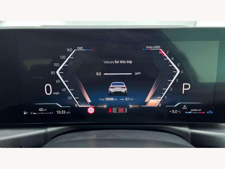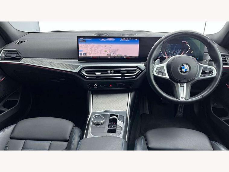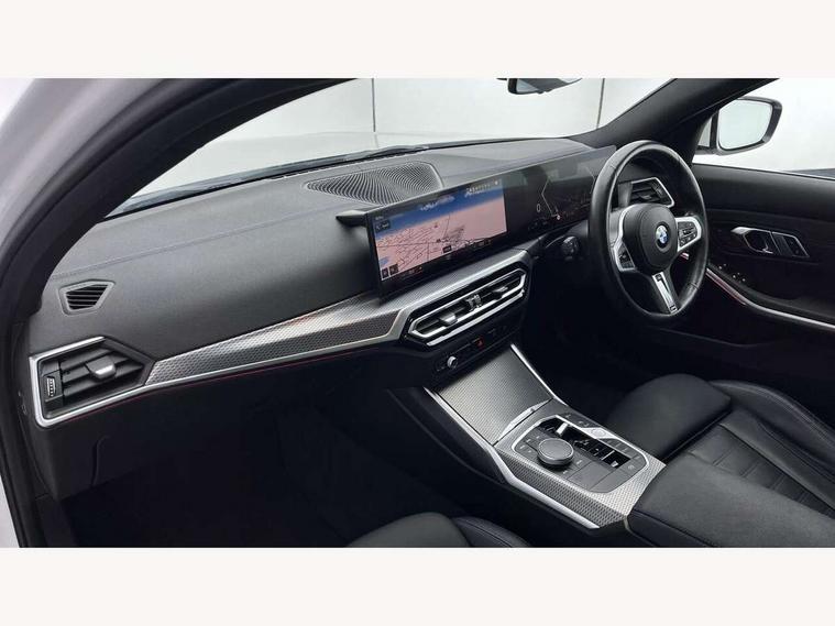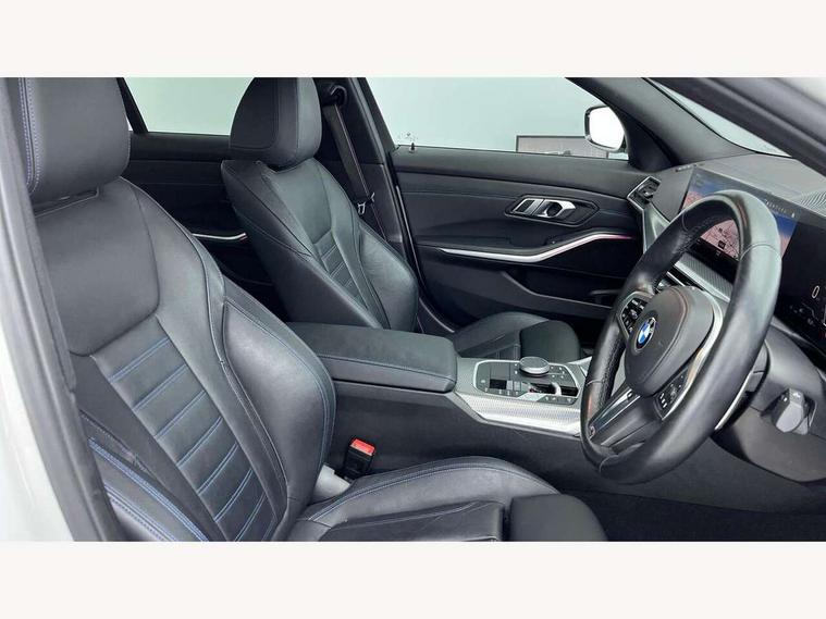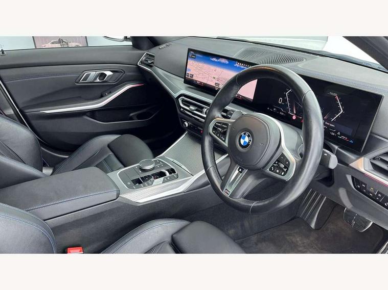 Active guard plus, Attentiveness assist, Automatic Start/stop button, BMW iDrive, BMW Teleservices, Condition based service, ConnectedDrive Services, Driving experience switch, Live cockpit plus with Navigation + 12.3" instrument display + 14.9" display, Intelligent voice assist, 2 USB, 4G LTE connect, Oil sensor for level and grade, Preparation for driver assistance, Shifting point display, Variable sport steering, Double joint spring strut front axle, Fuel tank breather system, M sport suspension, Sport automatic transmission with steering-wheel mounted gearshift paddles and launch control, DAB tuner, 3rd brake light, Acoustic glazing, Automatic headlight beam throw control with load dependent regulating reaction, dynamic compensation of braking dive and acceleration squat, BMW emblem, engine compartment lid and tailgate, Body colour roof fin, Door sill strips, Electric windows - front and rear, with open/close fingertip control, anti-trap facility and comfort closing, Follow me home headlight function, Front and rear bumper system with replaceable deformation elements, Front apron plastic in body colour, Fuel filler flap - right rear in body colour, Heated washer jets, High gloss shadow line exterior trim, Illuminated bow type door handles in body colour drivers side with door lock, Interior rear view electrochromatic mirror with automatic anti dazzle function, LED headlights with LED daytime running lights and LED turn indicator, LED rear lights, Licence plate panel integrated into front bumper and tailgate, Matt black B-pillar finsher, Matt black window recess cover, Model designation on right side of tailgate, One piece front bumper cover including towing eye cover in body colour, Rain sensor with automatic headlight activation, Rear boot, Rear side wing doors, Reversing lights, Side frame decorative moulding black matt, Visible exhaust tailpipe finisher, Welcome lights in interior and door handle area, 12V power socket in front storage compartment, 2 front cupholder in centre console with clamping elements and matt black inlay, 3 seat bench in 2nd row, 3 zone automatic air conditioning, 40:20:40 split folding rear seat with loading system, Ambient inside door handle light, Ambient light design projected onto the left and right entering and exiting area, Ambient lighting front and rear with 9 selectable colours, Ambient storage compartment lighting in the centre console, Anthracite headlining, Armrest integrated in front and rear door trim + front centre console armrest, BMW ID, Contour lighting in instrument panel and door trim panel, Cruise control operation in steering wheel, Driver backrest width adjustment, Folding rear centre armrest with 2 cupholders, Front and rear ambient footwell lighting, Front and rear door exit lighting (left / right), Front and rear headrests, Front and rear reading lights, Front and rear velour floor mats, Front sport seats, Heated front seats, Height adjustable mechanically and infinitely variable steering column, Illuminated armrest storage compartment, Illuminated glove compartment, Illuminated luggage compartment, Lashing eyelets in luggage compartment, M Sport multifunction leather steering wheel, Make-up mirror lights, Single front passenger seat, Standard seat for driver and passenger with manual adjustment, Sunvisors with vanity mirrors and ticket pocket, Toolkit located in luggage compartment, Connected pack professional - 3 Series Saloon/Touring, Interior and exterior mirror pack - 3 Series Touring/Saloon, M Aerodynamics package - 3 Series Saloon/Touring, M sport exterior styling pack - 3 Series Saloon/Touring, Storage compartment pack - 3 Series Saloon/Touring, 3x3 point rear seatbelts, BMW emergency call, Child locks on rear doors, Crash sensor activating of airbags, Unlocking doors, hazard warning lights, interior light, safety battery terminal, Driver and front passenger with seat occupancy detection for driver's and passenger side, Driver and passenger side airbags, body protection at side and airbags deploy from seat backrests, Dynamic brake control, Dynamic stability control + (DSC+) - Anti-lock Braking System (ABS) with brake assist and cornering brake control + Automatic Stability Control (ASC), Dynamic Traction Control - DTC, Electric parking brake including automatic hold function and automatic release of the parking brake when driving off, Electronic differential lock control (EDLC), Head airbags in 1st and 2nd row, head protection at side, curtain airbags open from headliner above 1st and 2nd row, Plastic fuel tank, Side impact protection, Tyre pressure monitoring with three level warning strategy, Ventilated front and rear disc brakes, Warning triangle and first aid kit, Alarm system, Centre lock switch, Closing system with central locking, Electronic vehicle immobiliser,
