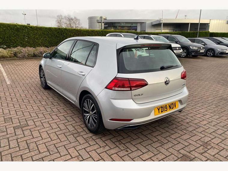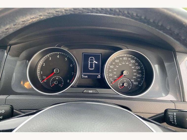 'Lights On' Reminder warning buzzer, 8" colour touch screen, ACC - Adaptive cruise control with front assist, forward collision warning, distance monitoring, city emergency brake and speed limiter, App-Connect, Bluetooth telephone and audio connection for compatible devices, Brake pad wear indicator warning light, Drive mode selector, Driver alert system, Driver profile selection, Front assist, radar sensor controlled distance monitor, city emergency braking + predictive pedestrian protection, Front assistant collision mitigation, Instrument cluster in white, Multifunction computer with visual gear change recommendation for fuel consumption, Power assisted speed sensitive electro-mechanical steering, Speedo, rev counter, electronic odometer, trip, service interval display, exterior temperature and fuel gauge, Stop/start system, Ultrasonic front and rear optical and audible parking sensors, Warning buzzer and light for front seatbelts unfastened, Battery regeneration during braking, XDS electronic differential lock, 8 Speakers, Composition media system, DAB Digital radio receiver, MP3/WMA compatability, SMS Functionality, USB and SD card connectivity, Aerodynamic black radiator grille with chrome trimmed insert, Automatic coming/leaving home lighting function, Automatic dimming rear view mirror/rain sensor, Black rear diffuser, Body colour bumpers, Body colour door handles, Body colour door mirrors with integrated indicators, Electric front windows, Electric rear windows, Electrically adjustable and heated door mirrors, Glavanised body, Heated rear windscreen, High level 3rd brake light incorporating LED Technology, Range adjustable headlights via infotainment system with LED daytime running lights, Rear number plate lights incorporating LED technology, Rear window aerial, Rear window wash/wipe with intermittent wipe, Reflectors in all doors, Remote electrically foldable door mirrors, door mirror puddle lights and reverse activated kerb-view adjustment on passengers door mirror, Tailgate with integrated rear roof spoiler, Windscreen wipers/ intermittent wipe + 4 position delay, 12V socket in luggage compartment, 3 rear headrests, 4 load lashing points in luggage compartment, 60/40 split folding rear seat backrest, Bag hook in luggage compartment x 2, Cooled glovebox, Dust/pollen filter, Front and rear reading lights incorporating LED technology, Front centre armrest with storage compartment and two rear air vents, Front seat back storage pockets, Grab handles front x 2, rear x 2 with integrated coat hooks, Height and reach adjustable steering wheel, Illuminated vanity mirrors, Instrument lighting white adjustable panel illumination, Interior light delay, Isofix preparation for 2 rear child seats, Load through provision with rear centre armrest and cupholders x2, Luggage compartment light, Multifunction leather steering wheel with leather trimmed gear knob, Overhead storage box, Pearl grey headlining, Storage box in luggage compartment, Storage compartment in roof console with cover, Storage compartments in front doors, Storage compartments in rear doors, Stowable luggage compartment cover, Sun visors, Three spoke multi-function leather trimmed steering wheel and gearknob, Variable boot floor, height adjustable and removable, Mirror pack - Golf, 3 rear three point seatbelts, Airbags - Driver's and front passenger's, curtain airbag, Driver's knee, front side impact and passenger's airbag deactivation switch, Anti-lock Braking System (ABS) with Hydraulic Brake Assist (HBA), Automatic post collision braking system, Child locks on rear doors, Driver/Passenger optimised head restraints, Electronic parking brake with auto hold, Electronic stability control (ESC) including Electronic differential lock (EDL) and ASR (Traction control) with deactivation via infotainment system, Pre crash preventive occupant protection, Three point height adjustable front seatbelts with tensioners, Tyre pressure loss indicator, Alarm with interior protection, Electronic engine immobiliser, Remote central locking with 2 remote folding keys, Brushed dark silver decorative inserts in dash and door panels, Chrome plated air vent surround, Chrome-plated light switch surround, Polar night black centre console, Steel space saver spare wheel,