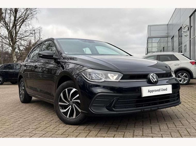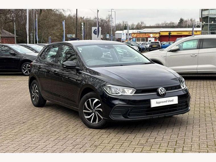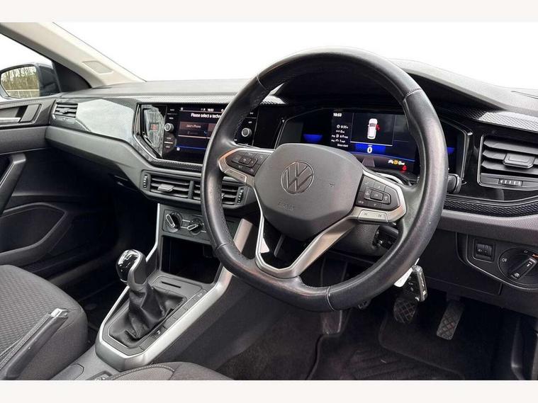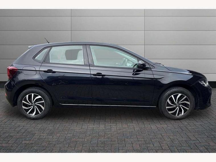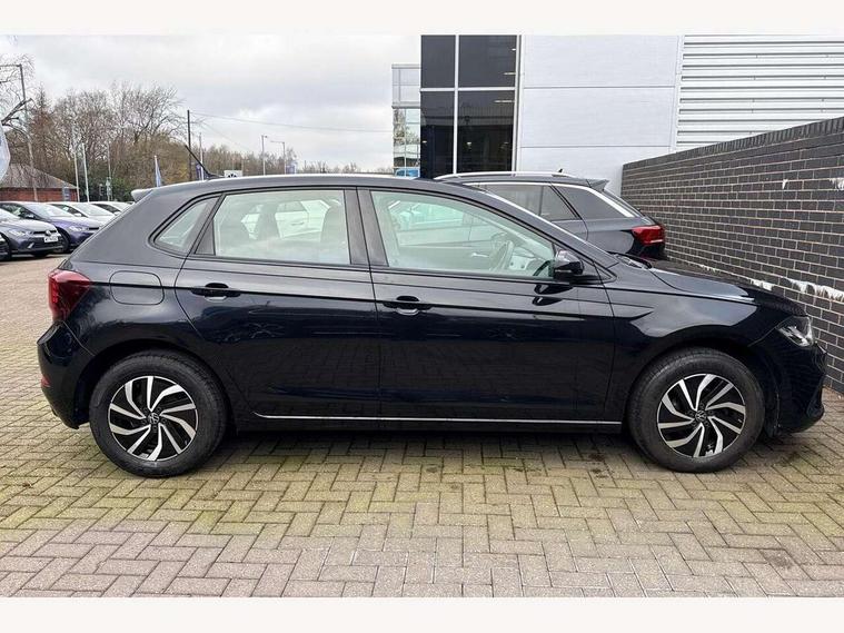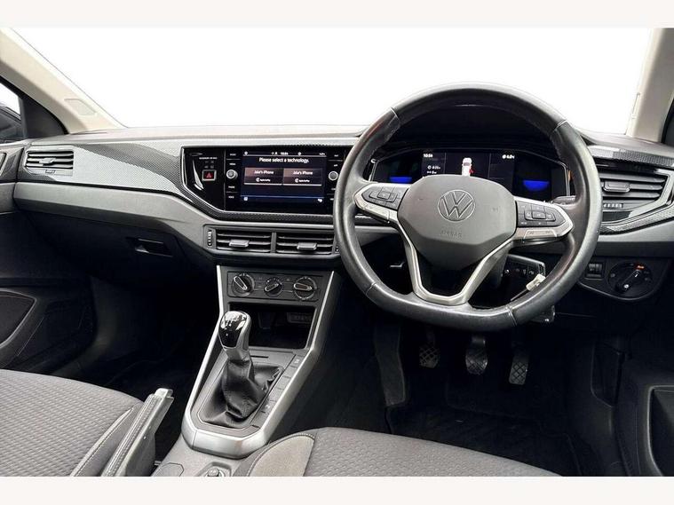 Adaptive cruise control without follow-to-stop and speed limiter, Bluetooth mobile phone interface, Driver alert system, Emergency call service, Front assist system, Power assisted speed sensitive steering, Preparation for We connect and We connect plus, Speedo and rev counter, electronic odometer, trip, service interval display and fuel gauge, Standard rear axle, Travel Assist - Lane keeping system and traffic jam assist, Travel assist including emergency assist, Trip computer, Warning signal and warning light for front and rear seatbelts not fastened, Washer fluid level indicator, Wireless app connect, Front wheel drive, Rear shock absorpion, Start-stop system with battery regeneration (recuperation - energy recovery during braking), DAB Digital radio, Diversity antenna for FM reception, Front and rear 6 speakers, Automatic dimming interior rear view mirror, Body colour bumpers, Body colour door handles, Body colour door mirrors, Electric front windows, Heat insulating darkened glass in side and rear windows, Heat insulating glass windscreen, Power folding adjustable/heated exterior mirrors and front passenger exterior mirror lowering function, Rain sensor, Rear electric windows, Rear fog light, Rear side wing doors, Rear windscreen washer and wiper with interval delay, Third brake light, 12V power socket in centre console, 2 front and 2 rear reading lights, 2 USB-C ports in the front, 2 USB-C charging sockets on the center console in the rear, 3 rear head restraints, 60/40 split folding rear seat and rear seat bench not split, Ceramique headliner, Chrome plated radiator grille inserts, air vent surrounds and light switch surrounds, Door and side trim panel, Driver and front passenger seat height adjustment, Driver/passenger sunvisors with illuminated vanity mirrors, Front centre armrest, Front seat backrest storage pockets, Front standard seats, Handbrake lever handle in leather, Hartley/Thomas cloth upholstery, Isofix child seat preparation easy-fit (for two outer rear seats, and front passenger seat) compatible with I-size, Leather trimmed gear knob, Luggage compartment cover, Luggage compartment floor, Luggage compartment lighting, Multifunction steering wheel, Single front passenger seat, Standard pedal cluster, Light and vision pack - Polo, 3 point height adj front seatbelts + pretensioners, 3x3 point rear seatbelts, ABS, Driver and front passenger airbag with front passenger airbag deactivation, Drivers and front passengers safety optimised head restraints, ESC (Electronic stability control) + EDL (Electronic Differntial lock) and ASR (Traction control), Extended and predictive pedestrian/ cyclist protection, Front curtain and side airbags with center airbag, Front disc brakes, Hill hold control, Manual child lock in rear doors, Rear drum brakes, Single tone horn, Tyre pressure loss indicator, Alarm with interior protection, Anti-theft alarm system with interior monitoring, backup horn, and towing protection, Anti-theft wheel bolts, Electronic engine immobiliser, Lava stone black gloss/matt decorative inserts in dash and front door panels, Low rolling resistance tyres,