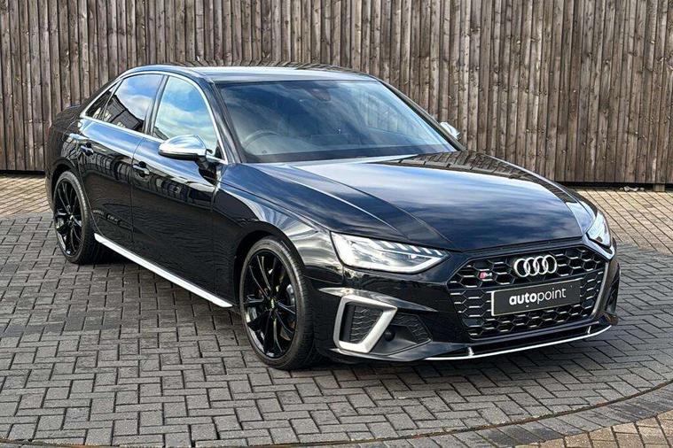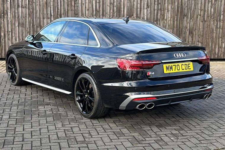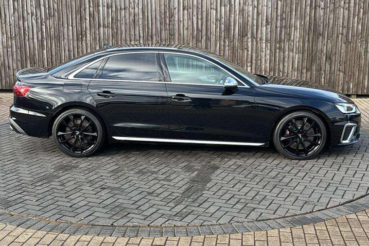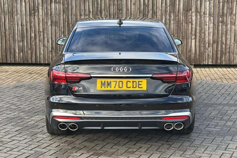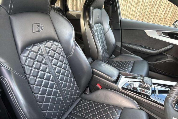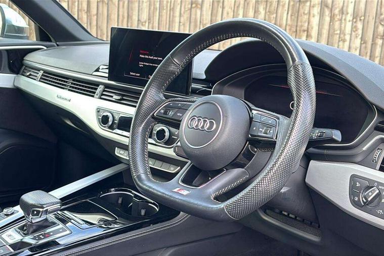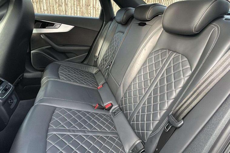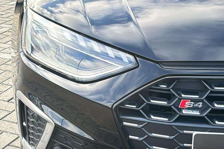 Audi connect safety and service (e-call), Audi drive select, Audi parking system plus with front and rear sensors, Audi phone box with wireless charging, Audi smartphone interface, Audi virtual cockpit, Automatic start-stop system with coasting functionality and efficiency programme, Bluetooth interface, Electric boot lid release, Electromechanical power steering, MMI Navigation plus with MMI touch includes 10.1" high resolution colour MMI display, 3D map, Rear view camera, S instrument dials, Voice control system, 58 Litre fuel tank, S sports suspension, 2 USB charging ports, Audi sound system with 10 loudspeakers, DAB digital radio reception, Aluminium effect door mirror housings, Audi Beam uses LEDs to project the Audi logo, Auto dimming rear view mirror, Body colour door handles, Body colour front spoiler lip, Body colour side sill trim, Electrically folding auto dimming/adjustable/heated door mirrors with LED side indicators and kerb view function for passenger side, High beam assistant, LED headlights with LED rear lights + dynamic rear indicators + headlight adjustment and high beam, turning light + LED daytime running lights, Rain and light sensors, S line front and rear bumpers with side skirts, S radiator grille in twilight grey matt with dual struts in aluminium and S4 logo, S rear diffuser in twilight grey matt and honeycomb grille in black, S specific dual branch chrome tailpipes with twin oval pipes on left and right, S specific side air inlets in titan black with chrome inlays in unique S design, S Style rear spoiler, Windscreen with acoustic glazing, 40/20/40 split folding 3 rear seat bench in 3 parts with rear centre armrest, Black cloth headlining, Black leather gear lever knob, Contrast stitching on seats, steering wheel and gear lever gaiter, Deluxe 3 zone electronic climate control, Door sill trims with aluminium inlay, Fine nappa leather upholstery with S embossed logo + super sports seats, Front and rear head restraints, Front centre armrest, Gear lever with diamond S badge, Heated front seats, Illuminated door sill trims with S logo, ISOFIX child seat mounting and top tether, Key with S4 logo, Pneumatically adjustable lumbar support with massage function, Stainless steel pedals and foot rest, Extended leather pack - A4/S4, High gloss package - A4, LED Interior light pack - A4/S4, 3 rear seatbelts, 6 airbags - Driver, front passenger, curtain and side windows, Electronic Stabilisation Control (ESC) including ABS, ASR and EDL, Front brake calipers painted in black with S4 logo, Hill hold assist, Multi collision brake assist, Pop-up bonnet for pedestrian protection, Pre sense city, S model enhanced braking system, Seatbelt monitoring, Warning triangle and first aid kit, Anti theft alarm, Anti theft wheel bolts, Keyless Go, Matt brushed aluminium inlays, 19" 5 spoke V design contrasting grey partly polished alloy wheel, Tool kit, Tyre repair kit,