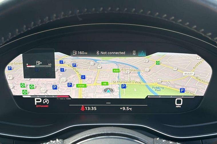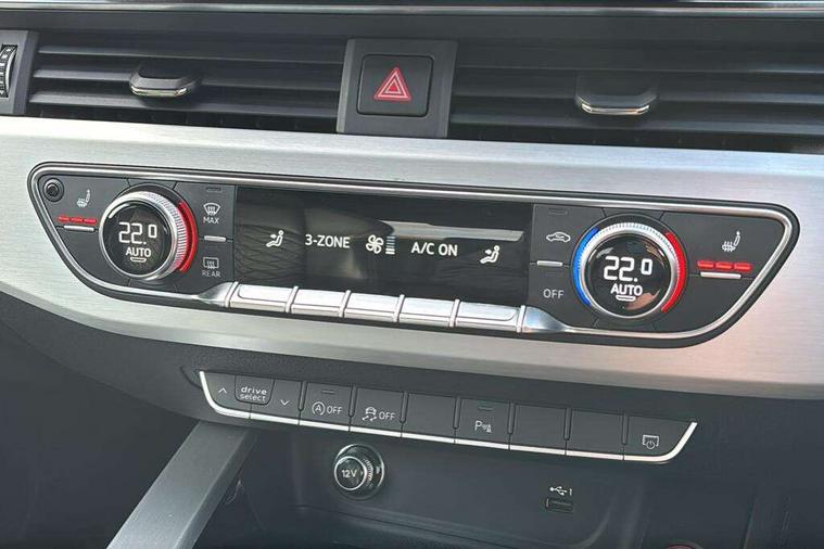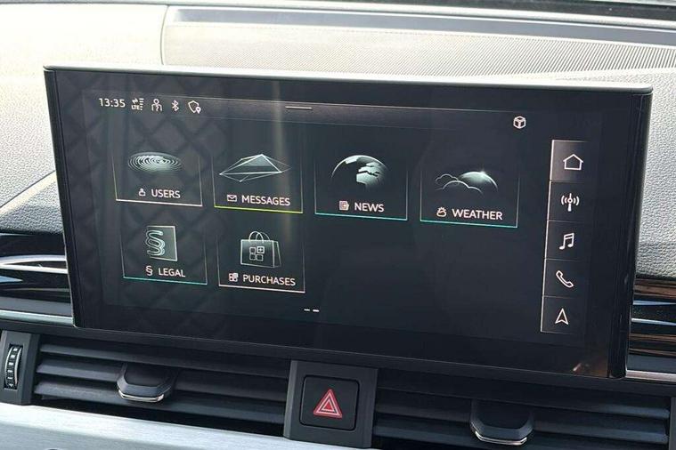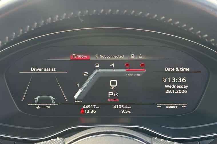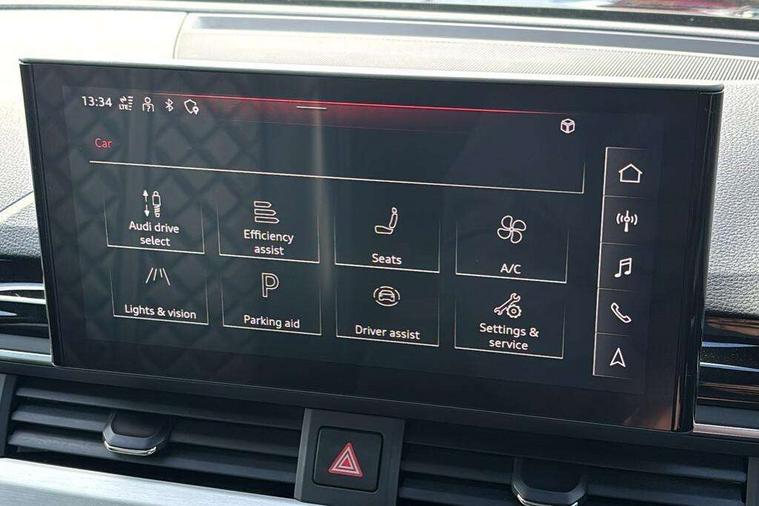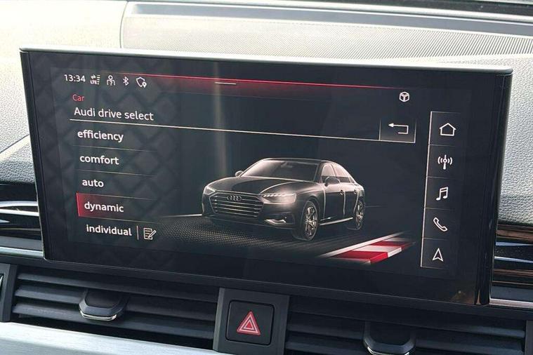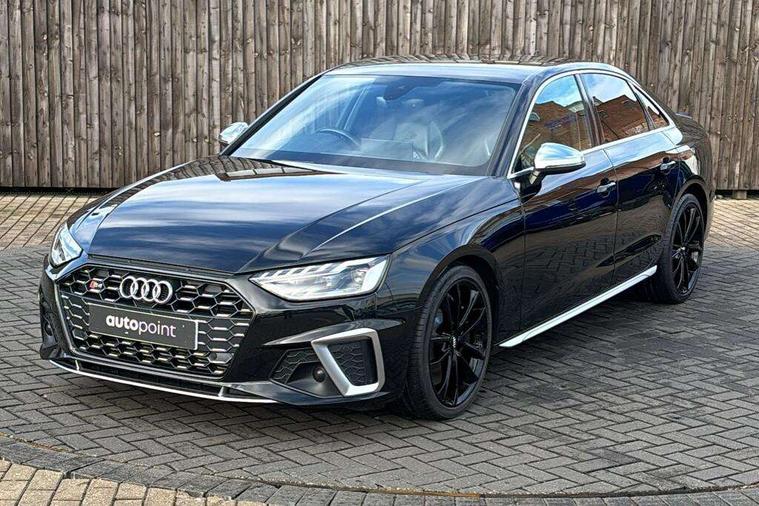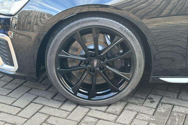 Audi connect safety and service (e-call), Audi drive select, Audi parking system plus with front and rear sensors, Audi phone box with wireless charging, Audi smartphone interface, Audi virtual cockpit, Automatic start-stop system with coasting functionality and efficiency programme, Bluetooth interface, Electric boot lid release, Electromechanical power steering, MMI Navigation plus with MMI touch includes 10.1" high resolution colour MMI display, 3D map, Rear view camera, S instrument dials, Voice control system, 58 Litre fuel tank, S sports suspension, 2 USB charging ports, Audi sound system with 10 loudspeakers, DAB digital radio reception, Aluminium effect door mirror housings, Audi Beam uses LEDs to project the Audi logo, Auto dimming rear view mirror, Body colour door handles, Body colour front spoiler lip, Body colour side sill trim, Electrically folding auto dimming/adjustable/heated door mirrors with LED side indicators and kerb view function for passenger side, High beam assistant, LED headlights with LED rear lights + dynamic rear indicators + headlight adjustment and high beam, turning light + LED daytime running lights, Rain and light sensors, S line front and rear bumpers with side skirts, S radiator grille in twilight grey matt with dual struts in aluminium and S4 logo, S rear diffuser in twilight grey matt and honeycomb grille in black, S specific dual branch chrome tailpipes with twin oval pipes on left and right, S specific side air inlets in titan black with chrome inlays in unique S design, S Style rear spoiler, Windscreen with acoustic glazing, 40/20/40 split folding 3 rear seat bench in 3 parts with rear centre armrest, Black cloth headlining, Black leather gear lever knob, Contrast stitching on seats, steering wheel and gear lever gaiter, Deluxe 3 zone electronic climate control, Door sill trims with aluminium inlay, Fine nappa leather upholstery with S embossed logo + super sports seats, Front and rear head restraints, Front centre armrest, Gear lever with diamond S badge, Heated front seats, Illuminated door sill trims with S logo, ISOFIX child seat mounting and top tether, Key with S4 logo, Pneumatically adjustable lumbar support with massage function, Stainless steel pedals and foot rest, Extended leather pack - A4/S4, High gloss package - A4, LED Interior light pack - A4/S4, 3 rear seatbelts, 6 airbags - Driver, front passenger, curtain and side windows, Electronic Stabilisation Control (ESC) including ABS, ASR and EDL, Front brake calipers painted in black with S4 logo, Hill hold assist, Multi collision brake assist, Pop-up bonnet for pedestrian protection, Pre sense city, S model enhanced braking system, Seatbelt monitoring, Warning triangle and first aid kit, Anti theft alarm, Anti theft wheel bolts, Keyless Go, Matt brushed aluminium inlays, 19" 5 spoke V design contrasting grey partly polished alloy wheel, Tool kit, Tyre repair kit,