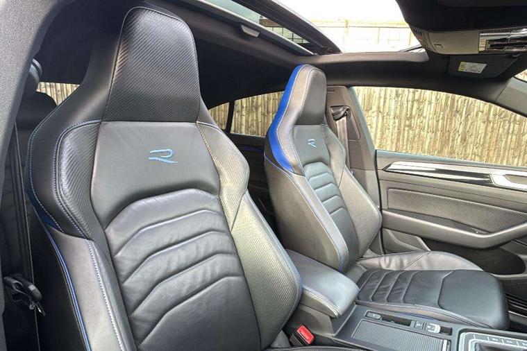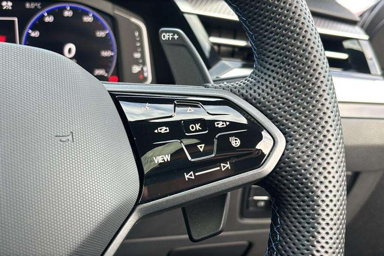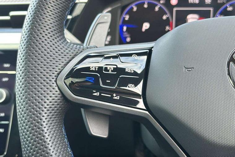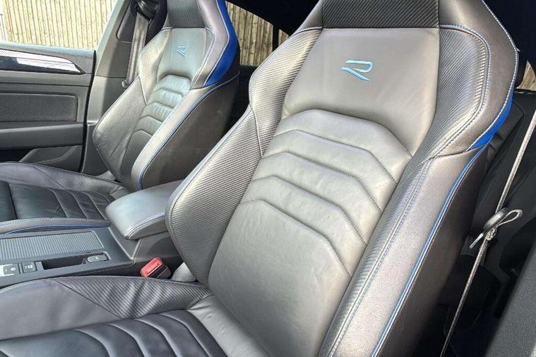 Adaptive cruise control (ACC) with speed limiter, front assist (reacting vehicles pedestrian and cyclists) and follow to stop, App connect including wireless Apple CarPlay, Camera for warning system, Digital cockpit with 10.25" high resolution TFT display screen with customisable menus and information, Driver alert system with fatigue detection, Driver profile selection including ECO function, Dynamic road sign display, eCall - Emergency call service for SOS calls to emergency response, Emergency assist, Hands free boot opening, Press and drive key, Progressive steering, R driving mode button on steering wheel, Side scan lane change assist including rear cross traffic alert, Speedo and rev counter, electronic odometer, trip, service interval display and exterior temperature gauge, Tailgate, Travel assist - Lane keeping assist and traffic jam assist, Voice activation for telephone and navigation, All wheel drive - 4Motion, Start/stop function with battery regeneration, XDS electronic differential lock, Premium USB cable in choice of either Apple or Android smartphone compatibility, Auto dimming interior rear view mirror, Automatic headlights, Body colour door handles, Body colour side skirt, Body coloured top and matt black lower door mirrors with integrated indicators, Chrome side window surrounds, Dynamic headlight range control, Electric folding door mirror, adjustable, heated with front passenger exterior mirror lowering function, External USB-C data socket with increased charging performance in front, Front and rear electric windows, Front and rear stainless steel door sill protection, Front windscreen washers and wipers with 4x interval delay, Heat insulating side and rear windows, Heated rear windscreen, Heated windscreen washer jets, LED 3rd brake light, LED rear combination lamp with dynamic indicators, LED rear number plate lights, Left and right chrome effect twin trapezoid exhaust tailpipe surrounds, Panoramic sunroof with tilting and sliding including integrated roller blind, R Line design body coloured bumpers, R logo light projection, R logo on radiator grille, side panels and rear, R specific radiator grille, R specific rear bumper and R specific diffusor in black, Rain sensor, Rear boot spoiler, Rear fog lamp on one side and reversing lamp on both sides, Rear side wing doors, Rear tinted glass from B pillar backwards, approx 65% tinted, Rear wash/wipe, 12V socket in front centre console, 12V socket on rear of front centre armrest, 14way electric adj front seats with lumbar + ergoComfort driver seat with memory/massage, comfort entry, integrated front headrest + door mirror memory, 3 rear head restraints, 3 seat bench in 2nd row, 30 colours interior ambient lighting, 60:40 split folding rear seat backrests with centre armrest, Air care climatronic 3 Zone electronic air conditioning with automatic air recirculation, Black roof lining, Chrome trim on upper and lower air vents extending across cockpit, Driver and front passenger sunvisor with vanity mirror, Front cupholders x 2, Front footwell illumination, Glovebox, Heated front seats, Height/reach adjust steering wheel, Isofix child seat preparation easy fit for two outer rear seats, Luggage compartment lighting, Nappa leather upholstery with side bolster and headrest, Pedals and footrest in stainless steel, Premium sports seats with R-logo, R performance leather wrapped heated multi-function sports steering wheel with touch controls and larger shifting paddles, blue stitching and R-logo, R specific floor mats with R-logo and stitching, Removable luggage compartment cover, Single front passenger seat, Split folding front seat backrest with front centre armrest, Two LED front reading light, 18" performance brakes, 3 rear three point seatbelts, ABS+EBD+Brake assist, Child locks on rear doors, Driver airbag and front passenger airbags with deactivation switch including driver knee airbags, Electronic parking brake, Electronic stability control (ESC) and Electromechanical brake booster, Front disc brakes, Front side airbags with curtain airbags, Hill start assist, Pro active occupant protection to detect critical situations with elevated accident potential from the front, R performance torque vectoring, R specific blue brake calipers, Rear disc brakes, Three point height adjust front seatbelts + pretensioners, Two tone horn, Tyre pressure loss indicator, Tyre pressure monitor, Warning buzzer for seatbelts if unfastened, Warning triangle, Alarm with interior protection with deactivation via infotainment system, Electronic engine immobiliser, Keyless entry system including start/stop button on centre console, Remote central locking, Aluminium decorative inserts, Chrome trim on lower doors in front and rear, Leatherette insert on door and side trim panel in foam film, Piano black decorative inserts in centre console, R specific decor inlay aluminium black carbon,