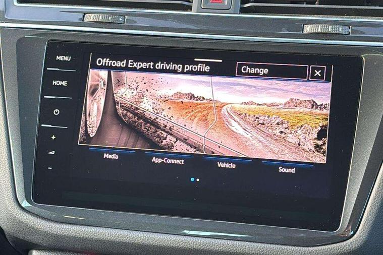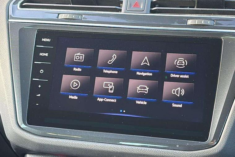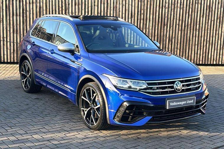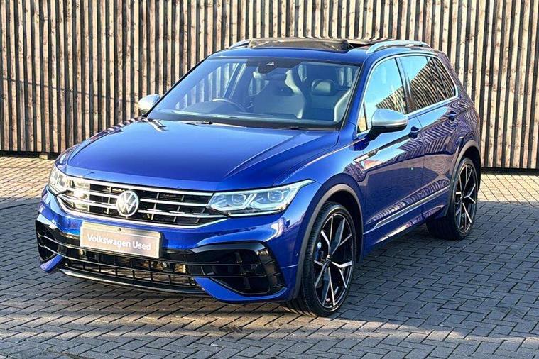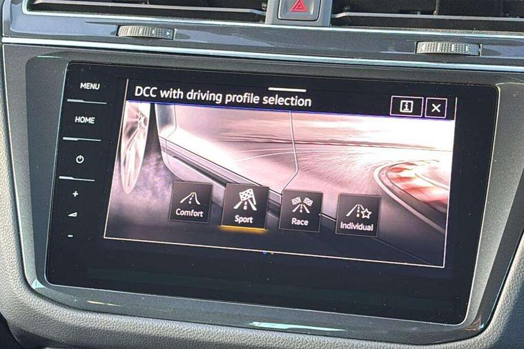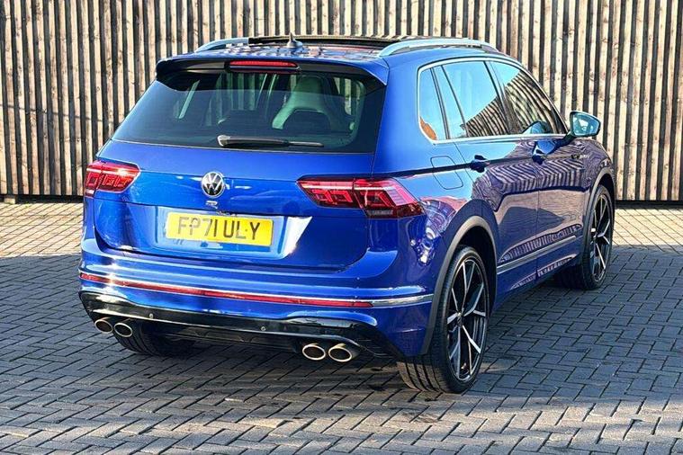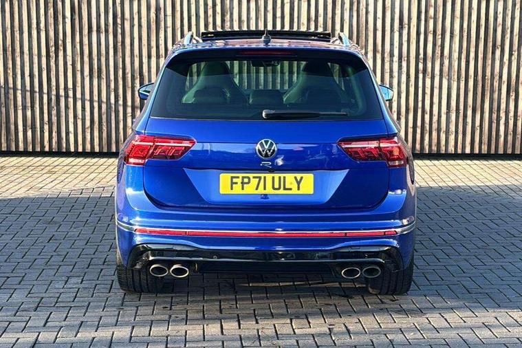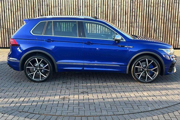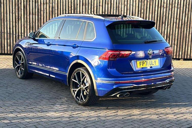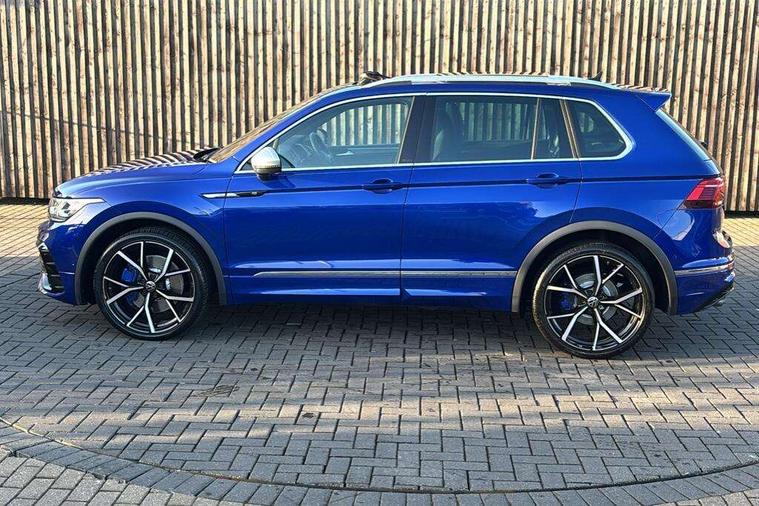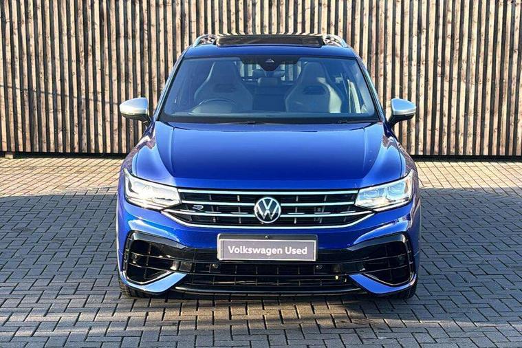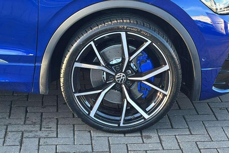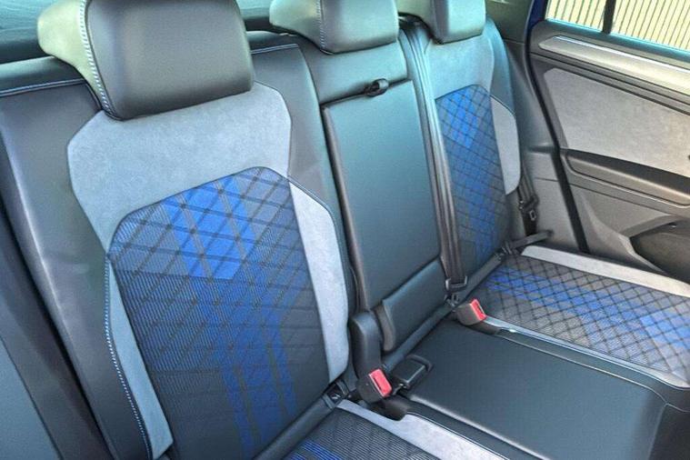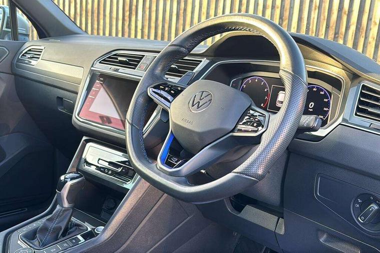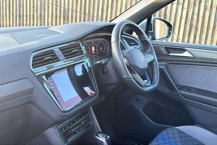 Easy open and close pack with safelock - Tiguan, Park assist pack - Tiguan, 21" Estorial black with diamond turned surface superlight alloy wheels with Airstop tyres, Tyre mobility kit Includes 12V compressor and tyre sealant, Anti theft alarm system with interior monitoring, backup horn and towing protection, Anti theft wheel bolts, Central locking system with safelock radio remote control and 2 remote control folding keys, Electronic engine immobiliser, 2 USB-C ports in the front, 1 USB-C charging socket on the center console in the rear, Diversity antenna for FM reception, Radio, SD card slot, Simultaneous pairing of 2 compatible mobile devices, SMS functionality - read, compose and send SMS messages using touch-screen display, Title and cover art display, 3 point seat belt for centre rear seats, 3 point seat belts with seat belt pretensioners for the outer rear seats, Active bonnet, Curtain airbags for front and rear passengers, Driver/Front Passenger airbags, Drivers knee airbag, Electronic parking brake with auto hold, Electronic Stability Control with driver steering recommendation, ABS, ASR, EDL, EDTC and trailer stabilization, Front assist with autonomous emergency braking (for Adaptive Cruise Control ACC up to 130 mph), Front disc brakes, Front passenger airbag deactivation, Front side airbags, Height adjustable front 3 point seatbelts + pretensioners, Hill hold control, Manual child proof rear door locks, Pedestrian monitoring system, Power assisted brakes, Proactive passenger protection system in combination with front assist, Rear disc brakes, Rigid safety cell with front and rear crumple zones, Two tone horn, Tyre pressure monitoring system, Warning sound and light for front seat belts if unfastened, Auto dimming interior rear view mirror, Automatic headlight control system, Body colour door handles, Body coloured door mirrors with integrated indicators, Chrome matt mirror covers, Chrome moldings on the side windows, Coming/leaving home lighting function, Dynamic headlight range control, Front and rear electric windows, Front illuminated door sills with R logo, Heated rear window, High level 3rd brake light, IQ light-Adv high beam, Dynamic light assist for LED matrix headlamp+LED separate DRL+DCL, dark red rear LED tech, Poor weather light+ cornering light, Laminated safety glass windshield, heat and sound insulating, LED rear number plate lights, License plate carrier in front and rear, Poor weather light and cornering light, Privacy glass for rear side windows and rear window, R-Logo light projection, R-Logo on radiator grille with side panels and rear, R-specific diffuser, painted black with cut out for trailer hitch, R-Specific front and rear bumpers, Rain sensor windscreen wipers, Rear fog lamp, Rear side wing doors, Rear spoiler in R style, Rear windscreen washer and wiper with interval delay, Side and rear windows in heat insulating glass, Silver anodised roof rails, Trailer Stability Programme, Windscreen wipers/ intermittent wipe + 4 position delay, 12V outlet in center console rear and in luggage compartment, 12V outlet in front and tray, 2 cup holders in front, 2 LED front reading lights, 2 LED rear reading lights, 3 rear headrests, 4 load lashing points, 40:20:40 split folding rear seats, Air Care Climatronic 3 zone automatic climate control with enhanced air filter and controls in the rear, Backrest release for left front seat, Black headlining, Climate control unit rear with touch function, Door and side trim panel in foam film, insert in leatherette, Floor mats with R-Logo and stitching, Front centre armrest, Front footwell illumination, Front seats head restraints (x-adjustment), Height adjustable front seats, Height/reach adjust steering wheel, Instrument lighting white adjustable panel illumination, Interior light with delay, Isofix Preparation 2 Rear child seats, Leather gear knob, Lighting door sill trim at front with R Logo, Lockable cooled glovebox, Luggage compartment lighting, Luggage net, Pedals and footrest in stainless steel, R Performance steering wheel with R button, larger paddle shifters, blue stiching and blue steering wheel clip, R Specific key caps, R-specific sport skin with R Logo in active Info dsiplay, R-taster (direct selection of race mode/ flap control), Rear bench seat asymetrically split folding, longitudinally movable and folding with load-through hatch and center armrest, Remote unlocking for rear seat backrest, Removable luggage cover, Removable rear headrests, Safety optimised front head restraints, Single front passenger seat, Sliding/reclining rear seats, Standard rear seat release, Storage compartment in driver's door, Storage compartment in passenger's door, Storage compartment in rear doors, Storage compartments in luggage area left and right, Storage tray on dashboard, Sun visors with illuminated vanity mirrors, Tool kit, Top sports seats integrated headrest, blue R-Logo in front seats, seat centre panels and outer rear seats in fabric inner side bolster art Velors, Variable boot floor, height adjustable and removable, Adaptive cruise control ACC stop and go including speed limiter, App-Connect incl. App-Connect Wireless for Apple CarPlay and Android Auto, Bluetooth phone integration system, Distance control assist, Driver alert system, Driver profile selection, Dynamic road sign display, eCall emergency call system, Electromechanical speed sensitive power steering, Engine start/stop button, Instrument cluster mph speedometer Great Britain, Lane keeping system Lane Assist, Lights on warning, Motorised electric tailgate operated via key fob, drivers door and foot movement under tailgate, Multifunction front facing camera, Outside temperature display, Premium multifunction display with multi colour display, Remote control boot opening, Rev counter, Revision / skills operating concept travel assistant, Service interval indicator, Speed limit display, Start/stop system with regenerative braking, Tailgate/trunk lid unlocking f