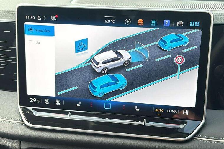 Adaptive cruise control (ACC), Advanced driver attention and drowsiness monitor, Bluetooth mobile phone interface, Car2X technology, Comfort drive travel assist, lane keeping system, lane assist and emergency assist, Digital Cockpit Pro - 10.25" high resolution dash display screen with customisable menus and information, Dynamic road sign display, E-Sim card for online connectivity, eCall emergency call service, Front Assist - Autonomous emergency braking with pedestrian and cyclist monitoring, Lane change system, Side assist, Rear traffic alert and Exit warning system, Multifunction front facing camera, Oncoming vehicle braking when turning including swerve support, Park assist pro with park distance control (Remote park assist), Power assisted steering with speed sensitive, Start/stop system with regenerative braking, Warning signal and warning light for front and rear seatbelts not fastened, Wireless App-Connect, Front wheel drive, Digital radio reception (DAB), Diversity antenna for FM reception, Air intake with Chrome trim, Ambient lighting with logo projection, Auto dimming interior rear view mirror, Automatic headlight control system, Body colored bumpers in R-Line style, Body coloured door handles, Body-coloured exterior mirror housings, Chrome moldings on the side windows, Coming/leaving home lighting function, Heat insulating glass in side and rear windows, Heated rear window, Heated windscreen washer jets, High level 3rd brake light, Illuminated door handle recesses, Illuminated lightline between headlamps, Laminated safety glass from B-pillar backwards 90% tinted, Laminated safety glass windshield, LED Day time running light, Rain sensor windscreen wipers, Rear fog light on one side, reversing light on both sides, Rear side wing doors, Rear wiper, Silver roof rails, 12V outlet in center console rear and in luggage compartment, 12V socket in centre console, 3 bench rear seats in 2nd row, Air care climatronic 3 zone air conditioning system with rear air conditioning control panel, Carpet mats, front and rear, Centre console with illuminated storage compartment with sliding cover and two drinks holders, Ceramique headlining, Chrome elements on the mirror switch and power window switches and door pulls, Door and side trim panel with leatherette insert, Door sill protectors, Front centre armrest, Interior ambient lighting with 30 colour options, ISOFIX anchors for child seats on outer rear seats and front passenger seat compatible with i-Size, Mechanical rear seat release, Power adjustable lumbar support in front, Rear bench seat, split folding, longitudinally movable and folding with load-through hatch and centre armrest, Safety optimised front head restraints, Single front passenger seat, Sports comfort seats in front, Sun visors with illuminated vanity mirrors, Three rear head restraints, Variable luggage compartment floor, Comfort package with park assist plus and Safelock - Tiguan, Driver assistance package - Tiguan, 3 point seat belt for centre rear seats, 3 Point seat belts in front with pretensioners, 3 point seatbelts in outer rear with ECE label, Driver and front passenger airbag with front passenger airbag deactivation, Electronic parking brake with auto hold, Front and rear curtain airbags, Front and rear side airbags, Front centre airbag, Front disc brakes, Hill start assist, Manual child proof rear door locks, Rear disc brakes, Two tone horn, Warning triangle, Decorative inserts Cross in dash and front door panels, Interior door handle in matte chrome, Soul instrument panel,