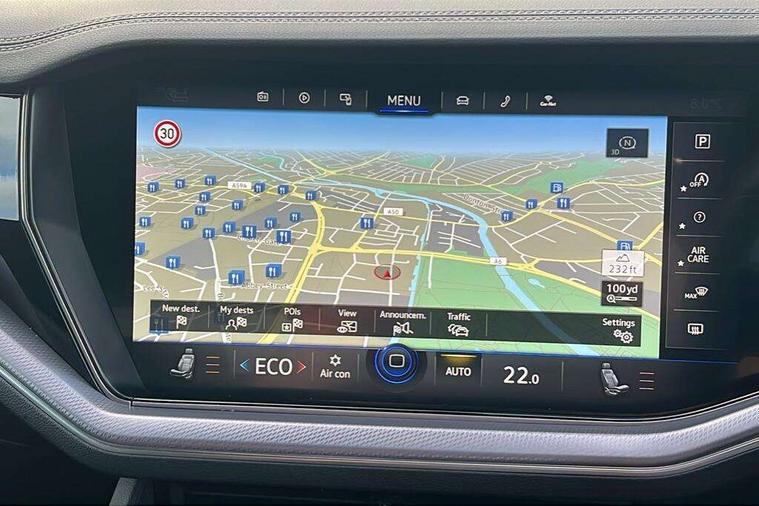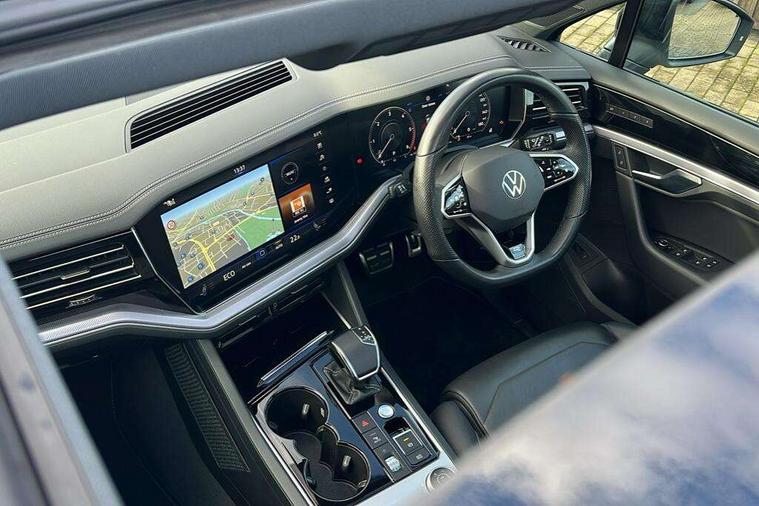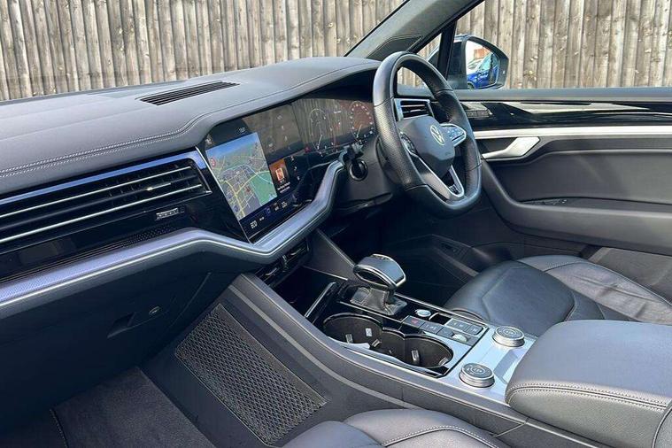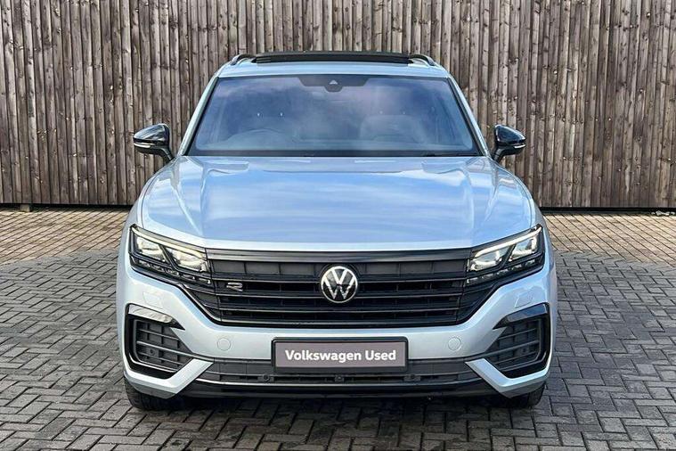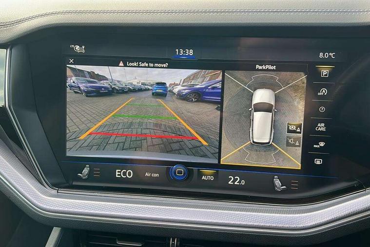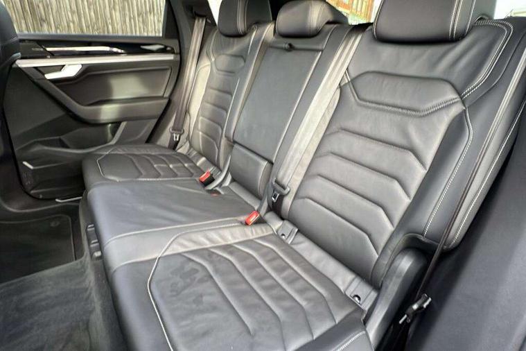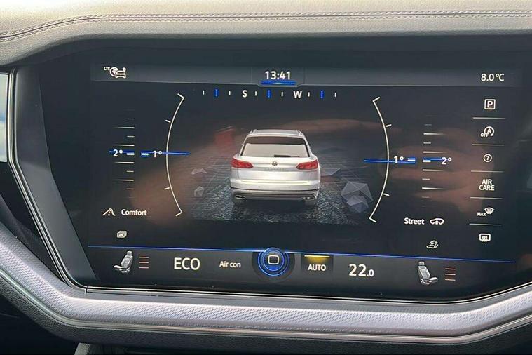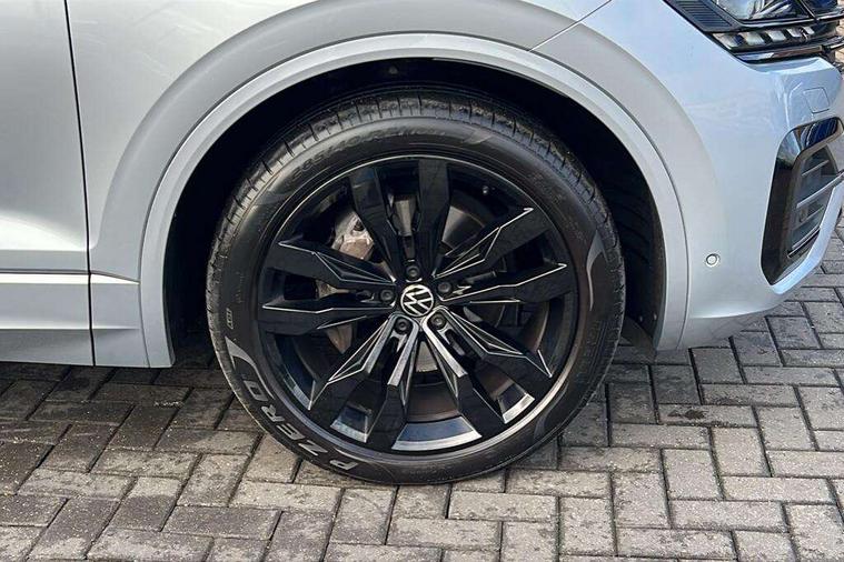 2D/3D map view, ACC - Adaptive cruise control with front assist, forward collision warning, distance monitoring, city emergency brake and speed limiter, Apple car play/Android Auto, Audible and visual fatigue detection system, Bluetooth hands free telephone connection, Car information display, Drive select with Damper control, Driver alert system, Driver profile selection, Dynamic road sign display camera controlled system with visual warning for traffic and road signs, eCall emergency system, Fully electric tailgate + keyless entry and start, Instrument cluster, MirrorLink, Multifunction camera, Multifunction computer premium with 7" colour display, One touch indicators with repeat function, Service interval indicator, Speed sensitive power steering, Start/stop system with regenerative braking, Tailgate power latch, Think blue trainer driver tips and journey analysis, Traffic sign recognition, Voice control system, Wireless Smartphone charger, 24 litre AdBlue tank, Torsen limited slip differential, DAB Digital radio, Dynamic navigation based on TMC+, Gesture control for infotainment system, Multi device interface (MDI) with illuminated USB-C connection, Music playback - MP3, WMA and AAC files, SD card slot, Simultaneous pairing of 2 compatible mobile devices, SMS functionality - read, compose and send SMS messages using touch-screen display, Title and cover art display, Volkswagen media control, Adaptive low beam for urban and motorway use, Auto dimming rear view mirror, Automatic coming/leaving home lighting function, Automatic headlights, Black anodised roof rails, Black door mirrors, Black rear diffuser, Black side window surrounds, Black upper and lower grille louvres extending into headlights and radiator grille, Body colour door handles, Body coloured wheel arches, C signature gloss black front air intake, Chromed tailpipe on the left and right integrated in the bumper with trapezoid design, Dusk sensor, Dynamic headlight range control, Electric front tilt/slide panoramic sunroof and fixed rear sunroof, Electrically power adjustable, heated, folding, auto dimming, front passenger exterior door mirror lowering function, Front and rear electric windows, Galvanised body, Gloss black finish B pillar, Gloss black rear diffuser, Headlight washers, Heat insulating darkened glass in side and rear windows, Heated windscreen washer jets, IQ.Light-LED matrix headlight, daytime running light with dynamic cornering light and indicator, LED 3rd brake light, LED rear fog light, LED rear number plate lights, Plastic scuff plates in door apertures, Poor weather light, Puddle lights, Rain sensor, Rear side wing doors, Rear wiper, 12V socket in front and rear centre console and boot, 2 Coat hooks on B pillar, 3 rear head restraints, 3 seat bench in 2nd row, 3 spoke sport heated leather multi-function sports steering wheel with gear shift paddles - generation 2, 4 way adjustable front head restraints, 4 way electric lumbar support for driver and front passenger, 4 zone climate control, 40:20:40 split folding slide/recline rear seat, B pillar vents, Black lower edge of door extending sills, Branded points of interest, Double sun visor for drivier and passenger with LED illuminated vanity mirrors, Electric luggage compartment cover, Folding rear centre armrest with 2 cupholders, Front + rear carpet mats, Front centre armrest with storage box, Gear shift indicator, Height/reach adjust steering wheel, Illuminated air conditioned glovebox, Isofix preparation for 2 rear child seats, Jack and tool kit, Leather trimmed gear knob with gloss black inlay/aluminum trim, Leatherette door trim, LED luggage compartment lighting, Load through provision, Luggage compartment with load lashing rings, Plastic loading edge protection, Rear seat remote release levers, Single front passenger seat, Soul black headlining, Stainless steel pedals, Innovision cockpit pack - Touareg, 3 point front seatbelts with pre-tensioners, ABS, Active bonnet, Automatic post collision braking system, Curtain airbags, Driver/Front Passenger airbags, EBD + Brake Assist, EDL, Electronic parking brake with auto hold, ESC with ASR, Front seat side impact airbags, Hill descent control, Hill start assist, Passenger airbag deactivate switch, Seatbelt warning lamp and buzzer, Three 3 point rear seatbelts, Two tone horn, Volkswagen roadside assistance, Warning triangle and first aid kit, Alarm with interior monitoring in cab, backup horn and towing protection, Child security locks for front and rear doors, Electronic engine immobiliser, Remote central locking, Black decorative trims on the side windows, High gloss black centre console,