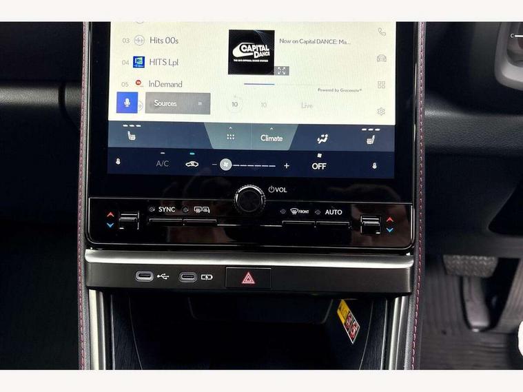 12.3" Digital instrument binnacle, Active Noise Control, Bluetooth connectivity, Cloud navigation, e-Call (emergency call), Electric power steering, Extended Lexus safety system+ 3 includes blind spot monitor, safe exit assist, camera washer and rear cross traffic alert, Front and rear parking sensors with intelligent clearance sensor, Front and rear smart entry, Head up Display, Lane change flasher function, Lexus link connected services, Lexus safety systems+ 3 includes dynamic radar cruise control, pre collision system day and night, lane tracing assist, road sign assist, Pre-collision system with driver monitor, Push button start, Rear view camera, Tailgate, Wireless Apple CarPlay and wired Android Auto, Wireless Smartphone charger, Vehicle dynamic integrated management (VDIM), 1 USB (Type-C) charging ports in bottom of the instrument panel, 1 USB (Type-C) multimedia communication ports in bottom of the instrument panel, 1 USB (Type-C) ports inside front console box, 2 USB (Type-C) ports for charging in rear, 6 speaker audio system, AM/FM and DAB radio, Lexus Link Connect with 9.8" Touchscreen, Rear side monitor, Auto dimming interior rear view mirror, Auto headlights, Black wheel arches, Electric adjustable/heated/auto folding door mirrors, Front and rear electric windows, Full body colour bumpers, LED 3rd brake light, LED daytime running lights, LED rear lights, Power back door without kick function, Privacy UV glass, rear doors and tailgate, Rain sensing wipers, Rear side wing doors, Rear wiper, Single bulb LED headlights with auto high beam, Wet arm wipers, 12V accessory connector in front console box, 3 bench rear seats in 2nd row, 3 rear headrests, 6 way manually adjustable front seats, 60/40 split folding rear seat, Aluminium scuff plates, Armrest with sliding cup holder, Centre armrest with storage, Cup holder in centre console, Driver and passenger door pocket, Driver's lumbar support, Dual zone automatic air conditioning, Front headrests, Glovebox, Heated front seats, Illuminated entry system (cabin, footwell, console and door handles), Nanoe-X Technology, Single colour ambient lighting, Single passenger seat, Storage tray under audio panel and lower tray, Synthetic leather gear lever, Synthetic leather steering wheel, Touch Sensor Buttons on Steering Wheel, Tsuyasumi interior ornamentaion, Under deck storage, 2 x Isofix child rear seat restraints, 3 point ELR (Emergency Locking Retractor) front seat belt with pretensioners, 3x3 point rear seat belts, ABS, Adjustable seatbelt anchor points, Driver and front passenger side airbags, Driver and front passenger single stage airbags, Driver knee airbag, E-Latch electric door release, Electronic parking brake, ESP, Front and rear curtain shield airbags, Front centre airbag, Manual rear child locks, Passenger airbag cut-off switch, Tyre pressure monitoring system, Alarm/anti-theft (with siren and 2 sensors), Engine immobiliser, Thatcham approved locking wheel nuts, Two motion door lock with double lock, VIN etching, Tyre repair kit,