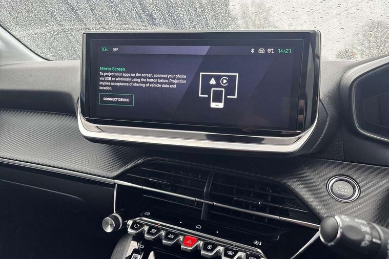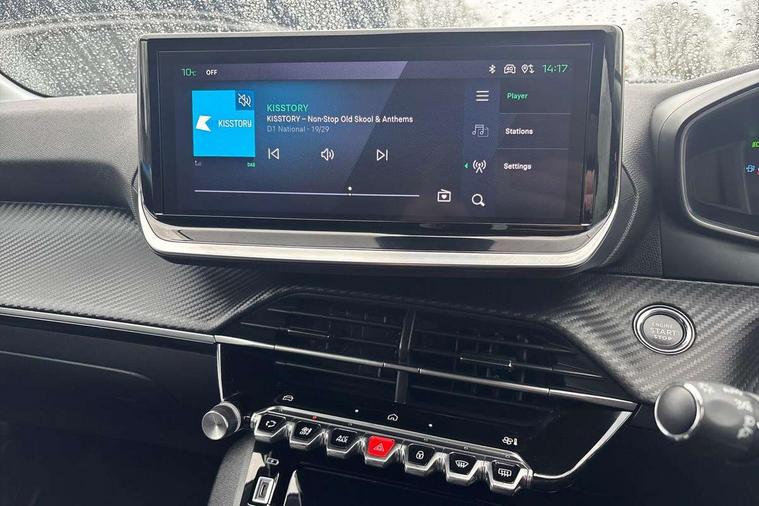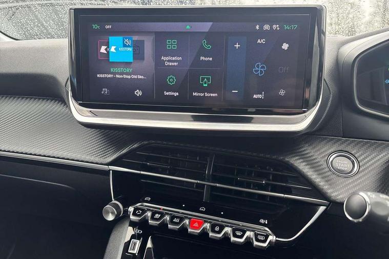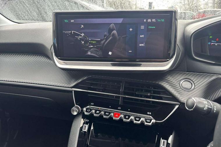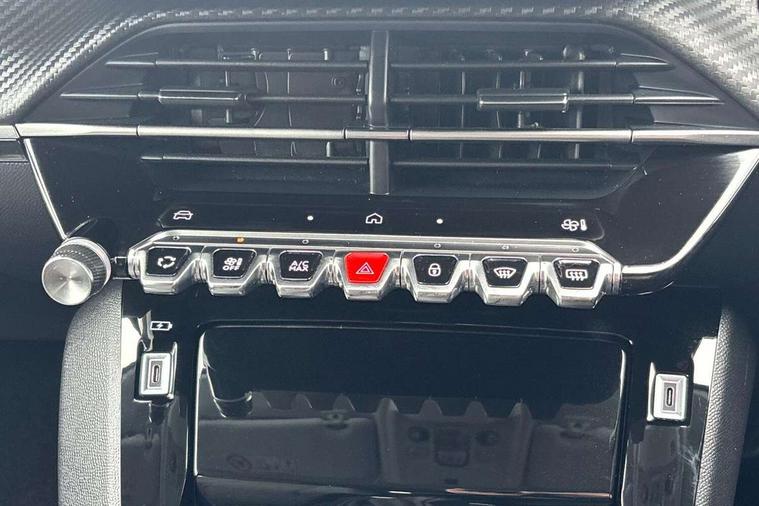 Bluetooth telephone facility, Drive mode selection(Eco/Normal), Driver attention warning, Emergency call service, Exterior temperature indicator with ice warning, Front and rear parking sensors, Multi function trip computer, PEUGEOT i-Cockpit with 10" configurable colour head up instrument panel, PEUGEOT i-Cockpit with 10" HD capacitive colour touchscreen, PEUGEOT i-Cockpit with compact steering wheel, PEUGEOT SOS and assistance, Push button start, Smart phone docking station, Speed limit recognition and recommendation, Start/stop system, Wireless mirror screen with apple carplay and android auto, 6 Speakers - 2 tweeters and 4 door speakers, DAB Digital radio, Peugeot i-connect infotainment system - 10in HD touchscreen, AM/FM/DAB digital radio, Wifi Mirroring, Bluetooth & 2 USB connection, USB-A socket (x1) and USB-C socket (x1) - rear, USB-C data and charge socket and USB-C charge socket in front, Voice recognition for radio, navigation and telephony features, 2 X Rear number plate lights, Acoustic windscreen, Antenna - Gloss Black 'fin' design, Automatic hazard light activation upon heavy brake application, Body coloured exterior door handles, Dark tinted rear side and tailgate windows, Diamond black rear spoiler (roof), Eco LED headlights with electric height adjustment, Electric heated and power folding door mirrors with courtesy floor lighting, Electrochrome rear view mirror, Gloss black B pillar, Gloss black door mirror shells, Gloss black front bumper grille with body colour accents, Gloss black rear cluster connecting strip, Headlights left on audible warning, LED 3 claw horizontal rear lighting signature with daylight function and LED brake lights, LED daytime running lights with distinctive 3 claw signature, LED Rear lighting with distinctive 3 claw horizontal signature with daylight function, LED third brake light, Model designation badges front and rear in basalt grey, One touch electric front/rear windows with pinch protection, Rear bumper with gloss black finish, Rear reversing lights, Rear side wing doors, Rear windscreen wiper triggered automatically in reverse gear, Roof spoiler, Tailgate with heated rear windscreen and wiper blade, Variable front intermittent wipers, 1/3 to 2/3 split folding rear seats, 12V socket, 3 seat bench in 2nd row, Automatic mono zone climate control air condition, Boot lighting, Driver and front passenger comfort seats, Driver and front passenger seat manual adjustment in longitudinal and back rest angle, Driver seat mechanical height adjustment, Electric power steering with reach and rake adjustable steering column, Front centre armrest with storage compartment, Front interior light with 2 reading spotlights, Gear shift indicator, High centre console with 2 cup holders, Map pockets on the backs of the front seats, Multifunction leather steering wheel, Piano keys gloss black plated toggle switches to access main functions of the vehicle, Quartz contrast stitching to front and rear door armrest, Rear centre headrest, Roof lining - light grey, Seatbelt unfastened on the move audible and visual alert for front and rear seats, Single front passenger seat, Tri material cloth/leather upholstery, Visibility pack - 208, 2x Isofix child seat fitting on outer rear seats, 3 rear 3 point seatbelts, ABS (Anti-lock Braking System) with EBD (Electronic Brakeforce Distribution) and EBA (Emergency Braking Assistance), Child locking functionality on rear doors, Driver and front passenger airbag with passenger airbag deactivation, Driver/front passenger side airbags, Electric parking brake, ESP with Hill Assist, Front and rear curtain airbags, Front and rear disc brakes, Front optimised safety headrests and 3 x rear retractable headrests with height adjustable, Front three point retractable seatbelts with force limiters, Remote plip(x2) for locking, unlocking, includes emergency key blade, Tyre pressure monitoring system, Acoustic vehicle alert system (AVAS), Alarm - Connected, volumetric , perimetric, anti lift sensor, Automatic door locking when moving off, Deadlock, Electronic code immobiliser, Remote central locking, Carbon effect Dashboard, front and rear door panel finish, 16" Noma two tone diamond cut alloy wheels, Tyre puncture repair kit,