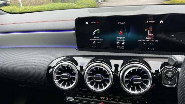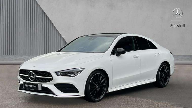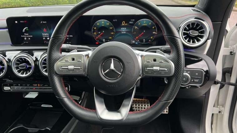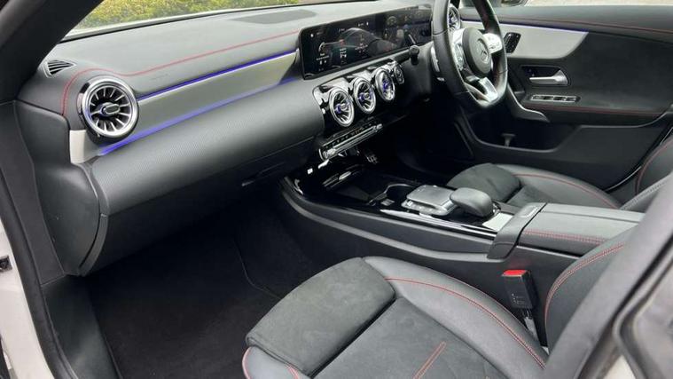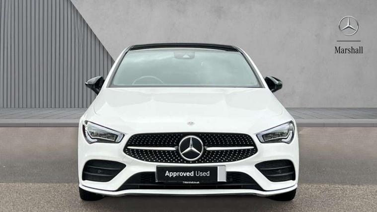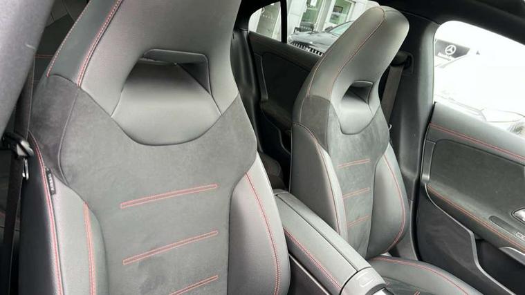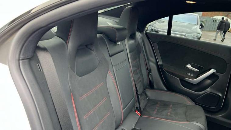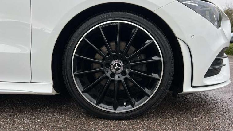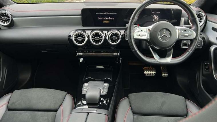 10.25 inch Instrument display with digital cockpit, 10.25 inch touchscreen central media display, Active lane keeping assist, Attention assist - Monitors steering behaviour and long journey fatigue, Blind spot assist, Bluetooth connection, Car wash mode, Cruise control with limiter, Direct steer system with speed sensitive power steering, DYNAMIC SELECT with a choice of driving modes (ECO, Comfort, Sport and Individual), ECO start/stop function, Fluid level warning indicator for fuel, oil, coolant and washer fluid, Hard-disk navigation, Hey Mercedes Voice activation, Lamp failure indicator, Mercedes me connect including emergency call system, accident recovery, breakdown and maintenance management, Mercedes me remote services, Outside temperature gauge, Owners manual and service booklet in English, Pre-installation of private car share, Preinstallation for Mercedes Benz link, Radio aerial integrated into front and rear windshields, Service indicator (ASSYST), Smartphone integration with Apple CarPlay and Android auto, Speed limit assist, Traffic sign assist, Trip computer in multifunction display with current consumption indicator, Lowered comfort suspension, Rear axle multi-link, DAB digital radio tuner, MBUX multimedia system, Mid-range sound system, USB (type C) ports (2) in stowage compartment and 1 in front of centre console, Adaptive brake lights, AMG body styling with AMG front apron and rear apron and visible exhaust tailpipe in chrome trim elements, AMG bodystyling side skirts, Body colour bumpers, Body colour door handles, Chrome beltline strips, Diamond radiator grille pins in chrome, Electric panoramic sunroof with automatic tilt and convenience closing fuinctions, rain sensor auto closing and electronic roller sunblind, Electric windows, Electrically adjustable and heated door mirrors with integrated LED indicators, Exhaust system with 2 Visible tailpipe trim elements and rear apron with trim in chrome, Headlamp assist automatic headlamp activation, Heated glass rear windscreen + timer control, High level LED third brake light, Integrated LED daytime running lights, Interior mirror with black reading lamps and frameless, LED tail lamp, Multibeam LED headlamps with adaptive highbeam assist plus, Privacy glass with dark tinting on rear side windows and rear window, Rain sensing windscreen wipers with two sensitivity settings, Rear boot, Rear fog lamp, Rear side wing doors, Variable front intermittent wipers, Window line trim strip in chrome, 3 seat bench in 2nd row, 3 spoke flattened bottom nappa leather multifunction steering wheel with perforated leather in grip area, 40:20:40 split folding rear seat backrests, Air conditioning - Two zone thermotronic luxury automatic climate control with display, Air vents with surround in silver chrome, Artico man-made leather upholstery, Automatic child seat recognition sensor, Black roof lining, Brushed stainless steel sports pedals with rubber studs, Electrically adjustable front memory seats including lumbar support, Floor mats with stitched AMG lettering, Front centre armrest with stowage, Galvanished gear shift paddles on steering wheel, Heated front seats, Illuminated front door sills with changeable cover, Illuminated glove compartment stowage, Interior lighting - 64 colour Ambient lighting, Luggage net on driver/front passenger seat backrest, Manually adjustable front seats, Manually height and reach adjustable steering column, Rear armrest with two integral cup holders for drinks, Rear head restraints, Single front passenger seat, Sport seats with fixed head restraints, Stowage compartment in centre console with retractable cover, Sunvisors with illuminated vanity mirrors, Touchpad on center console, Twin front cupholders, Two outer rear seat isofix and top tether child seat fixing points, Keyless go comfort pack - CLA, Light and sight pack - CLA, Mirror pack - CLA, Night package - CLA, Parking package - CLA, Active bonnet pedestrain safety measure which detects an impact and raises bonnet by 65mm, Active brake assist includes forward collision warning system with autonomous braking, Adaptive brake assist with hold function and hill start assist, Anti lock braking system (ABS) with brake assist, Black seat belts, Bonnet with power domes, Brake pad wear warning indicator, Childproof locks manually operated for rear doors and electrically operated for rear power windows, Crash responsive emergency lighting, Driver and front passenger head and sidebags, Driver and front passenger windowbags, Drivers knee airbag, Dual stage driver and front passenger airbags, Electric parking brake, Electronic stability programme with acceleration skid control, ESP curve dynamic assist, Exit warning, Front and rear seatbelt reminder, Front passenger seat occupancy sensor, Three point rear seat belts, Tyre pressure monitoring system, Warning triangle and first aid kit, Guard 360 degree guard vehicle protection system with immobiliser and interior protection, Remote central locking and crash sensor with emergency opening function, Light aluminium with longitudinal grain interior trim, 19" AMG multi-spoke black painted light alloy wheels with high sheen rim finish, Summer tyres, Tirefit tyre sealant kit,