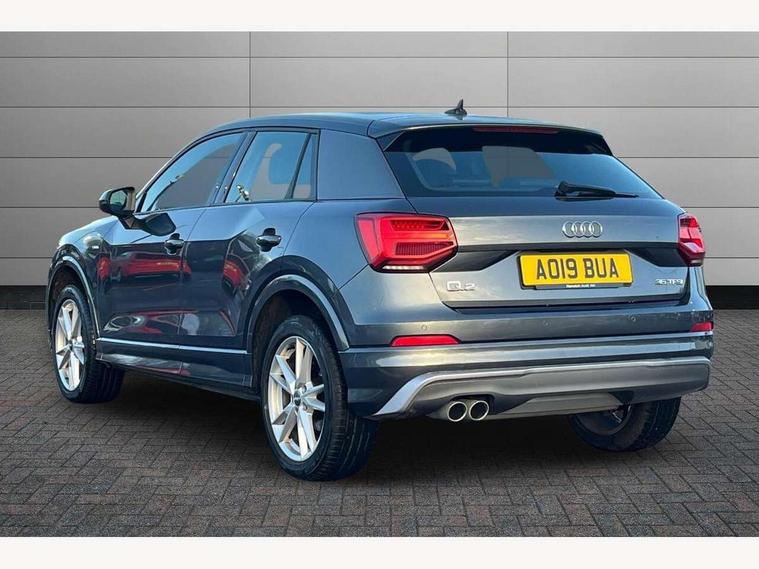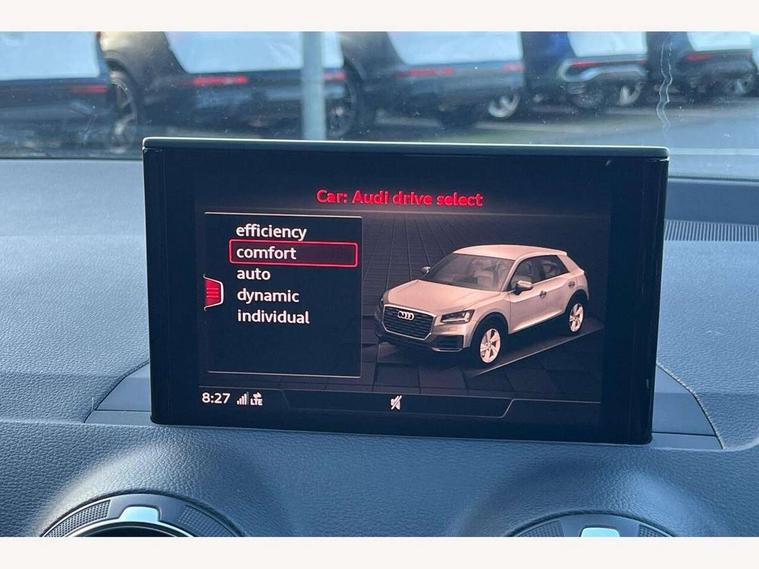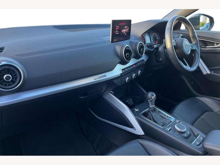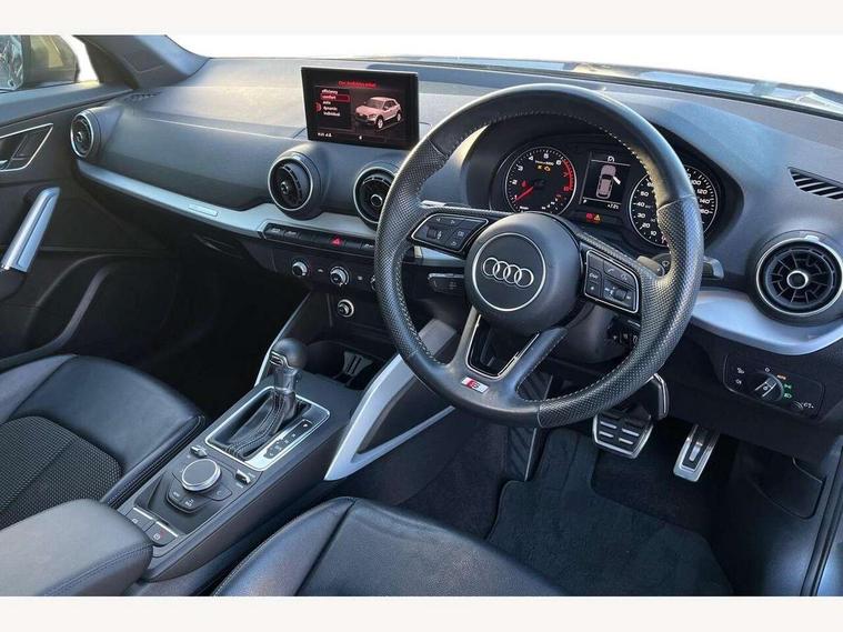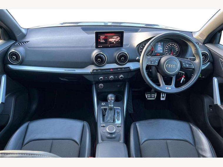 Audi drive select, Audi smartphone interface, Automatic start/stop system with recuperation, Bluetooth interface includes bluetooth audio streaming, MMI - Multi Media Interface control system, MMI SD card Navigation, Power operated tailgate, Progressive steering, Service interval indicator, Voice control system, Audi music interface - apple iPod, apple iPhone, USB storage media, compatible MP3 players, 2 x USB charging points and 1 x Aux-in, CD Drive, DAB digital radio reception, MMI radio plus with 7" colour MMI screen and MMI controller, Black window trims, Chrome exhaust tailpipe, Electrically adjustable and heated door mirrors with integrated LED side indicators, Front and rear electric windows, Front underbody guard and rear diffuser trim in selenite silver, Front windscreen with grey tinted sunband, Headlight washers, Interior mirror, LED headlights with LED rear lights + dynamic rear indicators, LED indicator lights, Rain and light sensors, Rear wiper, S Line badges on the front wings, S Line body styling - front and rear bumpers, side skirts, radiator grille, rear diffuser insert and front air intakes, Black cloth headlining, Floor mats with contrast stitching, Front centre armrest, Front headrests, Front sport seats with S embossed logo, Height/reach adjust steering wheel, Illuminated door sill trims with S logo, ISOFIX child seat mounting with top tether and electrically operated child lock, Manual seat adjustment including seat height adjustment for front seats, Stainless steel pedals, Storage compartments - Glovebox, cupholder compartment in centre console, storage compartment in rear centre console, front and rear door pockets, Three rear headrests, Connectivity pack - Q2, Non smoking pack - Q2, 3x3 point rear seatbelts, 6 airbags - Front, curtain and front side airbags, Electromechanical parking brake, Electronic stabilisation control including ABS, ASR and EDL, Extended and proactive pedestrian protection, Multi collision brake assist, Pre-sense front with pedestrian recognition, Seatbelt monitoring, Tyre pressure warning light, Warning triangle and first aid kit, Anti theft alarm, Anti theft wheel bolts, Central locking system with remote control key, Aluminium interior element, Matt brushed aluminium fascia and door trim inlays,