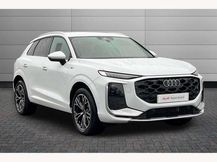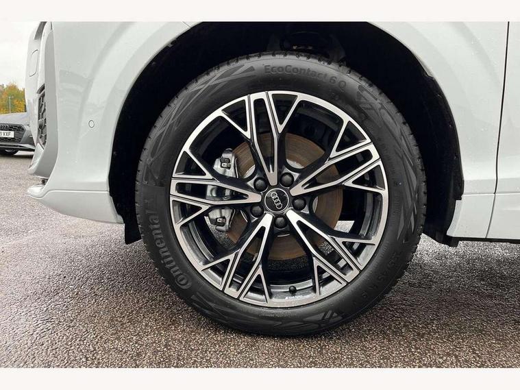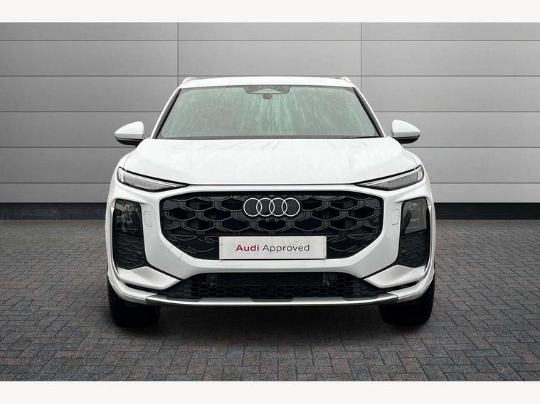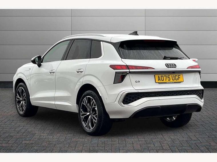 Adaptive cruise control, Audi connect emergency call and service, Audi connect remote and controls, Audi drive select (Balanced/Individual, effeciency, comfort and dynamic), Audi virtual cockpit plus - 11.9" display, Bluetooth interface, Camera based traffic sign recognition, Driver attention and fatigue monitor with driver monitoring, Front cross traffic assist, Lane departure warning with emergency assist, Panoramic curved display with 12.8" MMI navigation plus and MMI touch, Park assist plus with parking system and 360 display, Phonebox light with wireless charging, Reversing camera, Smartphone interface includes wireless Apple carplay/Android Auto, Start/stop system, Swerve assist and turn assist, Traffic sign based speed limiter, Voice control system with natural language interaction, 3 pin 10 amp domestic charging cable, Charging socket CCS type 2, Comfort suspension, Compact charging system, Industrial connector CEE 32A, 230V, Mode 3 charging cable for public charging, 22 KW (AC), Petrol Particulate Filter, 2 USB-C ports with charge and data functions, Audi sound system with 10 loudspeakers, subwoofer, 8 channel amplifier with 260 watts, DAB digital radio module, Acoustic glass for front door windows, Acoustic windscreen, Aluminium roof rails, Aluminium window trim, Audi Q3 lettering on the B-pillars, Auto dimming door mirrors, Auto dimming rear view mirror, Body colour door mirrors, Contrasting finish in volcano grey, Electrically folding, adjustable and heated door mirrors with integrated LED side indicators and kerb view function for passenger side, Full paint finish, Illuminated door sills with aluminium inserts at the front with S logo, LED daytime running lights, LED headlights plus with LED rear lights pro with continous light strip, illuminated Audi rings, rear, LED third brake light, Loading sill protector in stainless steel, Main beam assist, Privacy glass - dark tinted rear window, rear door and side windows, Projection light in the exterior mirrors - Projects a graphic element onto the ground, Q3 badging on the rear, Rain and light sensors, Rear side wing doors, Rear window, rear door windows and rear side windows in clear glass, Rear wiper, Sports bumpers, 3 seat bench in 2nd row, 3 spoke flat top and bottomed leather multi function sport steering wheel with gear shift paddles and "S" badging, 3-zone deluxe automatic air conditioning, 4 way lumbar support for the front seats - electric with horizontal and vertical adjustment in four directions, Black cloth headlining, Convenience auxiliary air conditioning, Front and rear floor mats, Front and rear headrests, Front centre armrest, Heated front seats, Height and reach adjustable steering wheel, Interior storage compartment, Leather/artificial leather upholstery combination with S emblem + front sports seats, Luggage compartment lid, electrically opening and closing, Manual front seats with height adjustment, Rear seat bench plus with split folded 40:20:40, Single front passenger seat, Stainless steel pedals, Steering wheel operating unit, gloss black, Storage compartment in front centre console, Ambient lighting package pro - Q3, S line exterior styling pack - Q3, 3x3 point rear seatbelts, Acoustic vehicle alerting system, Convenience key with safelock, Driver and front passenger airbag with passenger airbag deactivation, Electromechanical parking brake, Electronic stabilisation control including ABS, ASR and EDL, First aid kit with warning triangle and high visibility vests, Front emergency brake assist, Hill hold assist, i - Size child seat mounting on the front passenger side and i - Size and top tether on the outer rear seats, Power operated child locks, Seatbelt monitoring, Three point automatic belts with belt tensioner and height adjustment, Tyre pressure loss indicator, Anti theft wheel bolts, Remote central locking, Thatcham approved category 1 anti theft alarm, Dark aluminium divergence inlay, Interior elements in dinamica microfibre, Interior trims in aluminium look, Tool kit and Jack, Tyre repair kit,
