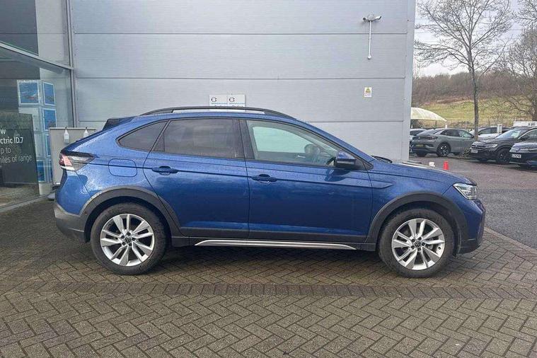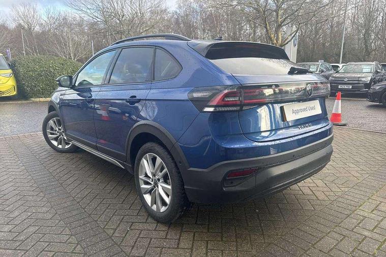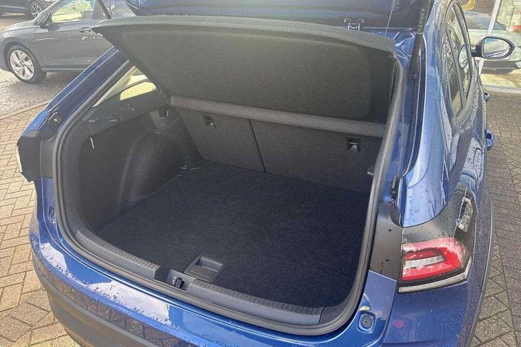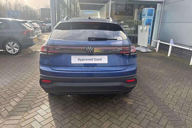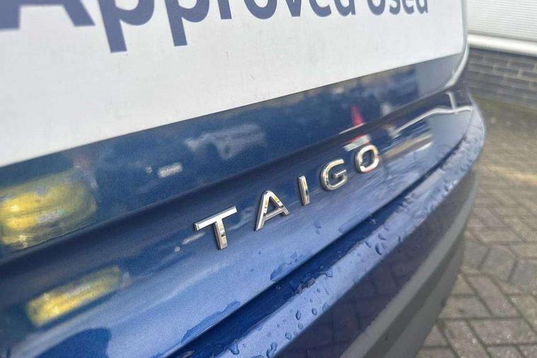 Adaptive cruise control, Advanced driver attention and drowsiness monitor, Dynamic road sign display, e-Call (emergency call), Power Steering, Rear view camera, Travel assist including emergency assist, Washer fluid level indicator, Wireless Charging including Bluetooth, Start-stop system with battery regeneration (recuperation - energy recovery during braking), WeConnect plus, Ambient lighting with logo projection, Aspherical driver's exterior mirror, Body coloured bumpers, Body coloured exterior mirror housings and door handles, Electric windows, External USB type C socket and charging sockets, Heat insulating glass windscreen, LED rear combination lamp, LED third brake light, Left convex exterior mirror, Power folding adjustable/heated exterior mirrors and front passenger exterior mirror lowering function, Rear fog light on one side, reversing light on both sides, Rear side wing doors, Rear wash/wipe with intermittent wipe setting, Side windows in heat-insulating glass, from B-pillar and rear window dark tinted, 'Slash/ Austin' Cloth upholstery, 12V socket in centre console, 2 front reading lights, 3 rear head restraints, 3 seat bench in 2nd row, Black carpets, Ceramique headliner, Child seat anchor for child seat system i-Size, 2x top tether and child seat anchor in front on front passenger side, Door and side trim panels in titan black, Driver and front passenger seat height adjustment, Front centre armrest, Handbrake lever handle in leather, Height and reach adjustable steering wheel, Leather trimmed gear knob, Leather wrapped multifunction steering wheel with paddle shift, Luggage compartment floor, Luggage compartment light, Lumbar support for driver's and front passengers seat, Seat covers in titanium black, Single front passenger seat, Split folding backrest with centre armrest and unsplit rear seat bench, Storage compartment under front seats, Sun visors with illuminated vanity mirrors, Titanium black instrument panel, Chrome Package - Taigo, Drivers assistance package - Taigo, Light and sight pack - Taigo, 2 x 3-point seatbelts/outer rear seats with ECE label, 3-point seat belts in front with pretensioner and height adjustment, 3-point seatbelt for centre rear seat, Driver and front passenger airbag with front passenger airbag deactivation, Driver and front passenger safety-optimised head restraints, Electronic stability control, Extended and predictive pedestrian/ cyclist protection, Front and rear disc brakes, Front curtain and side airbags with center airbag, Hill start assist, Manual rear child locks, Single tone horn, Tyre pressure loss indicator, Anti-theft alarm system with interior monitoring, backup horn, and towing protection, Keyless locking and starting system keyless access with safelock, Black (slush) Dashboard, Lava stone black gloss/matt decorative inserts in dash and front door panels, Low rolling resistance tyres,