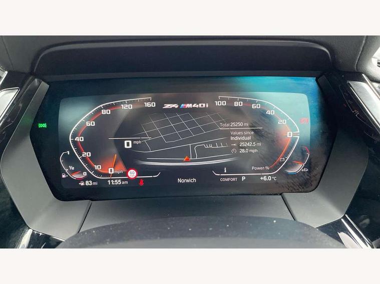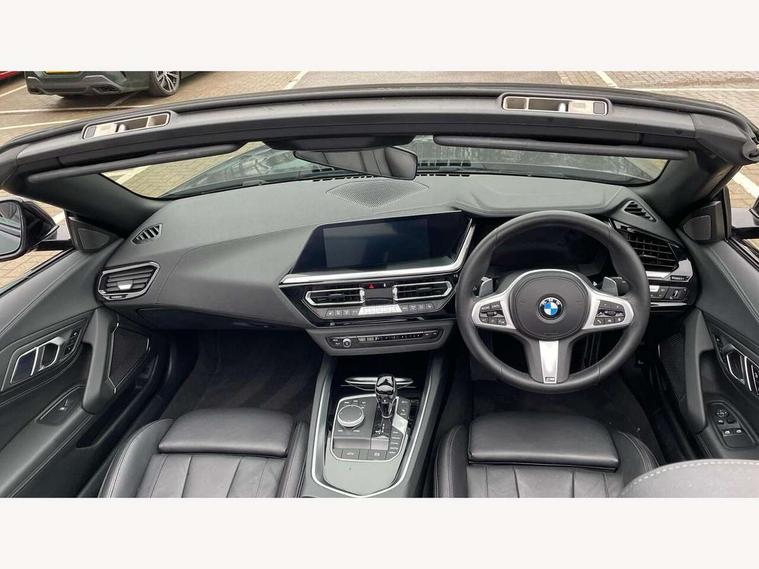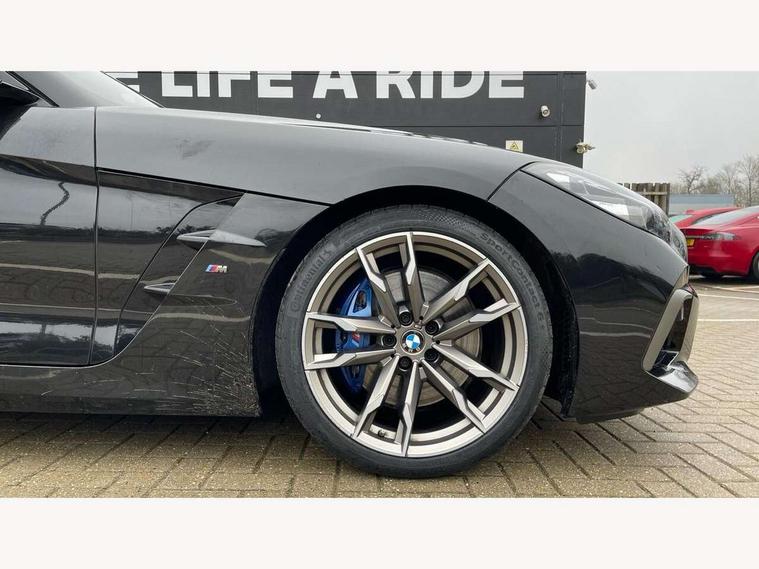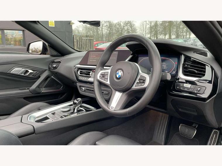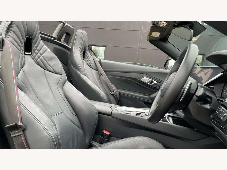 Active guard plus incl speed limit assist, lane departure warning with steering impulse and front collision warning with brake intervention, Auto start-stop, BMW ConnectedDrive online services, BMW Live Cockpit Professional with 10.25" high resolution instrument and control display, BMW Teleservices, Condition based service, Electric power steering, Fuel gauge, IDrive, Instrument cluster, Language version English, Oil sensor for level and grade, warning by check control system, Oil temperature gauge, Optimum shift indicator, Pull away assistant, Run flat indicator, Smartphone integration, Speed limiter, Speedometer with mph readout, Tachometer, Variable sport steering, Adaptive M suspension, Double joint spring, Double VANOS, Drive performance control with ECO PRO comfort + sport mode, Eight speed steptronic sport transmission, with gearshift paddles, Fuel tank breather system, High precision injection, M Sport differential, 2x USB Type C ports in front centre console for charging and data transfer, 2x USB Type C ports in rear centre console for charging, DAB tuner, USB connection, 3rd brake light, Automatic headlight beam throw control with load dependent regulating reaction, dynamic compensation of braking dive and acceleration squat, Cerium grey exterior mirror housing, Door sill finishers with M designation, Door sill strips, Dynamic braking lights comprising activated hazard warning flashers and third brake lights, Electric heated rear window, Exhaust tailpipe - split left and right, Exterior mirrors - electrically folding with anti-dazzle, Fingertip control / anti-trap function on electric window, Follow me home headlight function, Front and rear bumper system with replaceable deformation elements, Green tinted heat protection glazing, Heated windscreen washer jets, High gloss black window recess finisher, High gloss shadow line, Interior rear view electrochromatic mirror with automatic anti dazzle function, Kidney grille in mesh design, LED daytime driving lights, LED Indicators, LED rear lights, Lightweight engineering, Model logo, Rain sensor, Rear boot, Tailgate release handle, Two stage brake force display, Visible VIN plate, Welcome lighting, Windscreen wipers with adjustable interval, 12V power socket in front storage compartment, Activation of interior lighting, Additional storage compartment - 4 lashing eyes, strap and storage net, Ambient lighting, Battery in luggage compartment, BMW ID, Child seat ISOFIX attachments for passenger seat, Cupholder, Driver and front passenger heated seats, Driver and front passenger lumbar support, Electrically adjustable front driver and passenger seats with memory, Front and rear armrests integrated in door trim + centre console includes storage compartment and rear centre armrest includes 2 cupholders, Front and rear velour floor mats, Front headrests, Height adjustable mechanically and infinitely variable steering column, Illuminated glovebox, Luggage compartment light, M sport leather steering wheel, M Sport seats for driver and passenger, Microfilter and active carbon filter, Multifunction steering wheel, Single front passenger seat, Sunvisors with vanity mirrors and ticket pocket, Two zone automatic air conditioning, Vernasca leather upholstery, Connected package professional - Z4, 3 point front seat belts, Airbags - Front driver and passenger, front and side impact protection, Anti lock braking system (ABS) with brake assist, Automatic Stability Control (ASC), BMW emergency call, Brake energy regeneration, Braking readiness, Cornering brake control (CBC), Crash sensor activating central locking release, hazard warning lights, fuel cut off, interior lighting, safety battery terminal clamp and airbags, Deactivation of fuel pump in the event of a crash, Dry braking, Dynamic brake control, Dynamic stability control + (DSC+), Dynamic Traction Control - DTC, Electromechanical parking brake with automatic drive away release and auto hold function, Front and rear brake discs with interior ventilation, Head airbags, M Sport brakes with blue calipers M designation in front, M sport seatbelt, Plastic fuel tank, Pyrotechnic seat belt tensioners, Roll over protection, Seat belt force limiter, Seat belt stopper, Seat occupancy protection, Two tone horn, Tyre pressure monitoring with three level warning strategy, Warning triangle, Centre lock switch, Closing system with central locking, Electronic vehicle immobiliser, Start/stop button with Comfort Go keyless engine start and auto Start/stop deactivation button, Thatcham cat 1 remote alarm, Sensatec dashboard, 19" Double spoke M light alloy wheels in bicolour cerium grey - style 800M, Reduced rolling resistance tyres, Tool kit, Tyre repair kit,