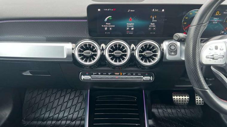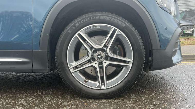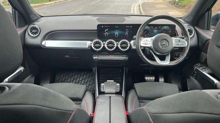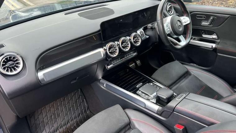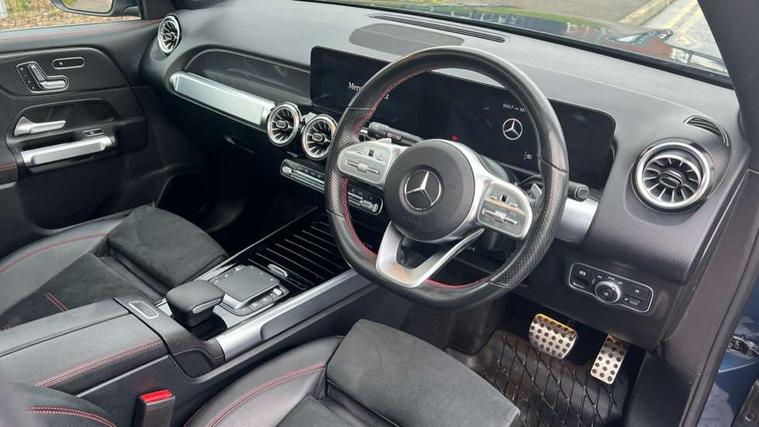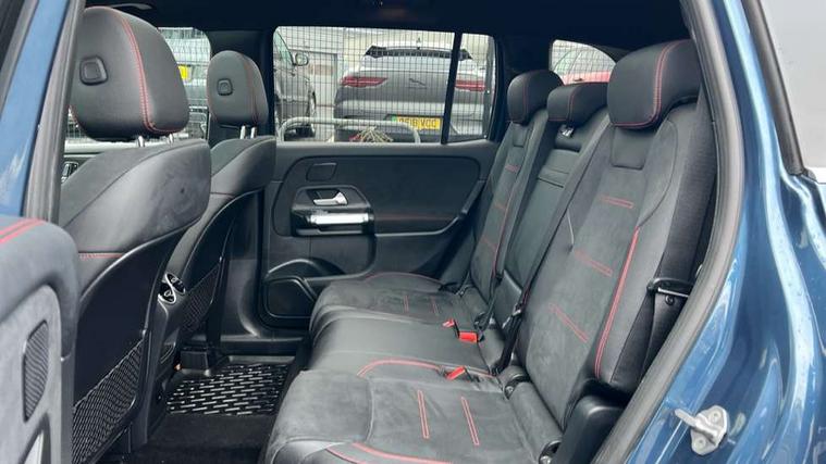10.25" Digital instrument cluster display screen, 10.25" Digital media screen display, Attention assist - Monitors steering behaviour and long journey fatigue, Brake pad wear indicator warning light, Car wash mode, DYNAMIC SELECT with a choice of driving modes (ECO, Comfort, Sport and Individual), ECO start/stop function, Fluid level warning indicator for fuel, oil, coolant and washer fluid, Hard disk navigation, Hey Mercedes Voice activation, Lamp failure indicator, Mercedes me connect including emergency call system, accident recovery, breakdown and maintenance management, Mercedes me remote services, Outside temperature gauge, Owners manual and service booklet in English, Parameter steering system, Pre-installation of private car share, Radio aerial integrated into front and rear windshields, Service indicator (ASSYST), Smartphone integration with Apple CarPlay and Android auto, Traffic sign assist, Trip computer in multifunction display with current consumption indicator, 23.8 litre AdBlue fuel tank, Comfort suspension, Rear axle multi-link, DAB digital radio tuner, MBUX multimedia system with DAB digital radio and touchpad including satellite navigation, Mercedes Benz sound system (225 W) with 10 speakers, 1 central speaker, speakers on doors, a tweeter on door, one sub woofer + boost amplifier, Pre installation for Mercedes Benz Link, USB (type C) port in front stowage compartment, USB (type C) ports (2) in stowage compartment, Adaptive brake lights, Aerial for GPS, AMG bodystyling door panels black grained with chrome plated inserts, AMG bodystyling front apron with chrome splitter, AMG bodystyling rear apron with diffuser optics and chrome trim element, AMG specific front and rear bumper including underride guard in high gloss chrome, Beltline strips and weather strip in chrome, Body coloured door handles with chrome insert for keyless entry, Body coloured door mirror caps, Electric adjustable and heated door mirrors with integrated LED side indicators, Electric panoramic glass sunroof, Exhaust system with dual flow exhaust pipes (non-functional), Front and rear electric windows, Headlamp assist automatic headlamp activation, Heated glass rear windscreen + timer control, High level LED third brake light, Interior mirror with black reading lamps and frameless, Multibeam LED headlamps and tail lamp with adaptive high beam assist, Polished aluminium roof rails, Pre-installation for trailer coupling, Privacy glass with dark tinting on rear side windows and rear window, Radiator grille with pins in chrome and single louvre with chrome insert, Rain sensor windscreen wipers, Rear fog lamp, Two visible tailpipe trim elements exhaust, 3 spoke multifunction sport steering wheel in nappa leather, Air conditioning - Two zone thermotronic luxury automatic climate control with display, AMG sports pedals with brushed stainless steel surfaces and black rubber studs, Artico man-made leather/Microfibre Dinamica upholstery with red contrast stitching, Automatic child seat recognition sensor, Black floor mats with AMG lettering, Black roof lining, Electrically adjustable front memory seats including lumbar support, Fore/aft adjustment rear seats, Freight packaging with tie-down hooks, Front centre armrest with stowage, Front door sills with illuminated changeable cover, Front passenger grab handle with brushed side silver chrome, Front sports seats with adjustable head restraints, Galvanished gear shift paddles on steering wheel, Heated front seats, Height/reach adjustable steering column, Interior lighting - 64 colour Ambient lighting, Luggage net on driver/front passenger seat backrest, Rear armrest with two integral cup holders for drinks, Stowage compartment in centre console, Stowage compartment with retractable cover, Third row of seats for two people on rear seat, Touchpad on center console, Twin front cup holders, Two outer rear seat isofix and top tether child seat fixing points, Interior lighting with light and sight pack - GLB, Mirror pack - GLB, Off-road engineering package - GLB, Parking pack - GLB, 3 rear 3 point seatbelts, Active bonnet pedestrain safety measure which detects an impact and raises bonnet by 65mm, Adaptive brake assist with hold function and hill start assist, Airbags - kneebag for driver, Anti-lock braking system (ABS) with brake assist, Childproof locks manually operated for rear doors and electrically operated for rear power windows, Crash responsive emergency lighting, Curve dynamic assist, Driver and front passenger head and sidebags, Driver and front passenger windowbags, Dual stage driver and front passenger airbags, Electronic parking brake, Electronic stability programme with acceleration skid control, Front and rear seatbelt reminder, Front brake callipers with Mercedes Benz lettering, Front passenger seat occupancy sensor, Perforated and ventilated front brake discs, Tyre pressure monitoring system, Warning triangle and first aid kit, Remote central locking and crash sensor with emergency opening function, Thatcham category 1 alarm system with immobiliser and interior protection, Urban guard vehicle protection - Anti theft alarm system, tow away protection with visual and acoustic warning and alarm siren, Vehicle key with decorative surround in chrome, Black air vents with chrome surround, Carbon structure trim, 19" AMG 5 twin spoke light alloy wheels painted in tantalite grey with high sheen finish, Summer tyres, Tirefit tyre sealant kit,