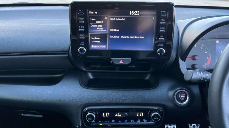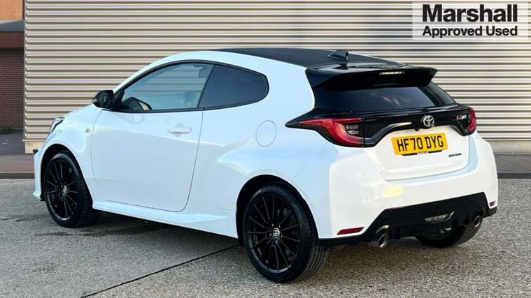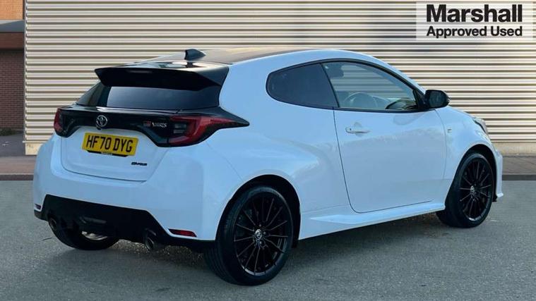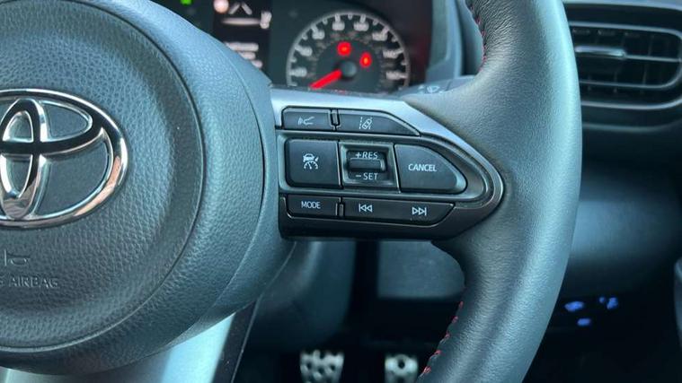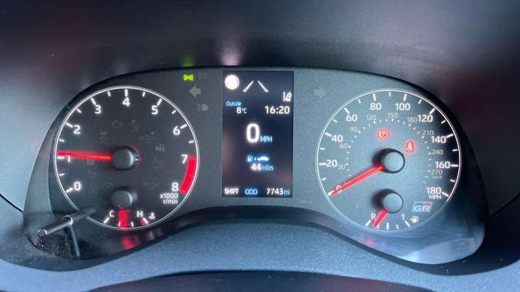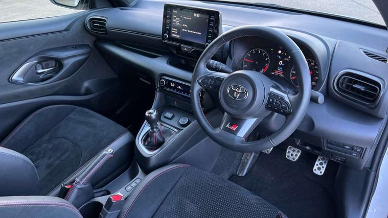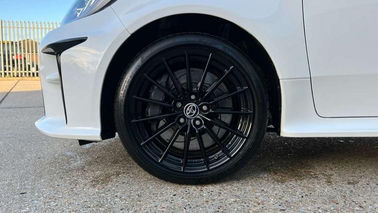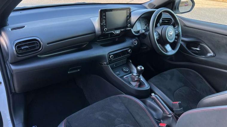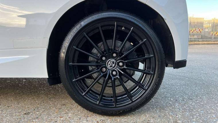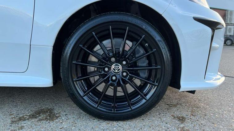 Apple car play/Android Auto, Coloured TFT multi informational display, eCall emergency system, Emergency steering assist, Intelligent adaptive cruise control, Lane Departure Alert (LDA) switch on steering wheel, Lane trace assist, Power Steering, Pre-collision system (PCS), Reversing camera, Road sign assist - RSA, Double wishbone rear suspension, GR-Four AWD switch, MacPherson front suspension, Vehicle Stability Control (VSC), 6 speakers, 8" Multimedia display touch screen, DAB Digital radio, Toyota touch 2 multimedia system, USB connection, Adaptive high beam assist, Adaptive LED Headlights, Air intakes for brake cooling, Auto dimming eletrochromatic rear view mirror, Auto windscreen wipers, Automatic headlights, Automatic headlights cut-off, Automatically retractable door mirrors, Black contrasting colour door mirrors, Black rear spoiler, Body coloured door handles, Body coloured rear bumper, Carbon fibre roof wrap, Chrome centre cap surrounds, Door scuff plates, Dual exhaust pipes, Electric adjustable heated door mirrors, Follow me home headlights, Front auto power windows with anti jam protection, Gloss black GR front bumper, GR badges 1 front, 1 rear and 2 sides, GR lower front grille, Integrated LED indicators in door mirrors, LED daytime running lights, LED fog lights, LED High mounted stop lamp, LED rear combination lights, Piano black side air vents, Privacy glass on rear and back windows, Rear auto power windows with anti jam protection, Rear window defogger, Shark fin antenna, 12V socket in front, 2 rear head restraints, 3 spoke leather sports steering wheel, 60/40 split folding rear seat, Aluminium pedals, Clean air filter, Driver and passenger headrests, Driver's sun visor with vanity mirror, Dual zone automatic air conditioning, Front bottle holders, Front cup holders, Front map light, Front sports seats, GR floor mats, GR logo on steering wheel, GR Ultrasuede leather upholstery, Height adjustable driver's seat, Isofix child rear seat restraints, Leather gearshift, Leather handbrake, Manual slide adjustable on driver's and passenger seats, Microphone on front personal light, Multimedia switch on steering wheel, Pollen filter, Red stitching on gearshift, Red stitching on handbrake lever, Satin chrome interior door handles, Soft tonneau cover, Ticket holder on driver's sun visor, Tilt/telescopic steering column, ABS with Brake Assist, Airbags - driver and front passenger, Driver and passenger side airbags, Emergency brake light system (EBS), Front passenger airbag on/off switch, Front seatbelt reminder, Hill start assist control (HAC), Open differential lock, Rear passenger airbag, Rear seat belt reminder, Start holding control, Tyre pressure warning system, Alarm/immobiliser, Keyless smart entry with push button start, 18" 15 spoke Dunlop SP sport black alloy wheels, Tyre repair kit,